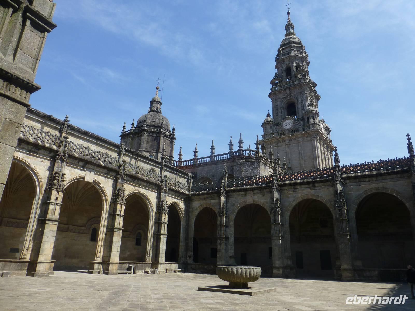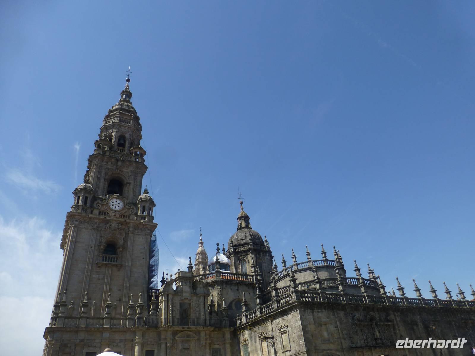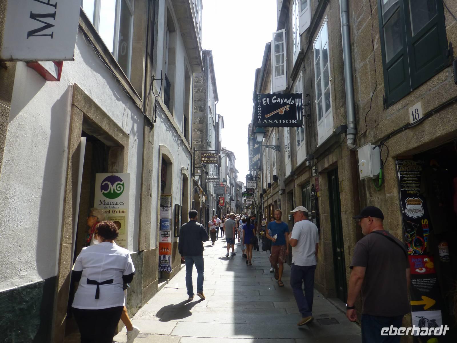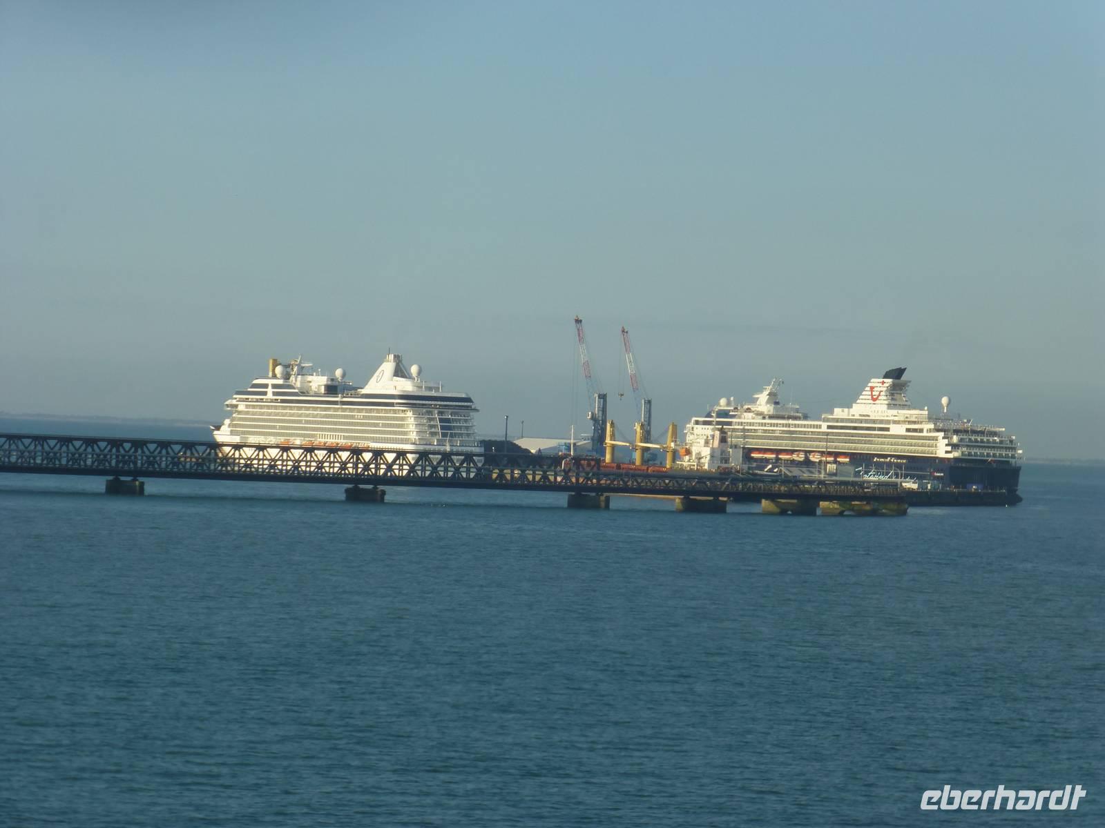 Heute legen wir an in La Coruna, die größte Stadt der Region A Coruna in Galicien. Es grüßt uns der älteste noch betriebene Leuchtturm der Welt! Erbaut von den Römern im 2.Jahrhundert ist der Herkulesturm mit seinen 68 Metern Höhe das Wahrzeichen der Stadt. Gleich nach dem Anlegen und der Freigabe gehen wir von Bord zu unserem zweiten gemeinsamen Eberhardt-Ausflug. Diesmal geht es zum berühmten Wallfahrtsort Santiago de Compostela. Unser Gästeführer Francisco, ein waschechter Galicier, berichtet uns humorvoll von bestimmten Eigenheiten der Galicier, die von den Kelten abstammen. Auch in der Musik sind diese Wurzeln zu bemerken, kommen doch Dudelsack, Drehleier und Harfe zu Einsatz. Bevor er uns jedoch mehr zu Landschaft, zu den Wäldern mit Eukalyptus und den Baias, den Fjorden, erzählen kann, haben er und unser Chauffeur eine große Aufgabe zu meistern. Die Milchbauern demonstrieren und blockieren mit ihren Traktoren die Zufahrtswege der Hauptstadt von Galicien. Ständig sind sie im Kontakt um den aktuellen Stand zu erfahren und uns bestmöglichst in die Stadt zu bringen, was ihnen auch wunderbar gelingt. Nach einem Fußmarsch durch den Park und durch die Gassen stehen wir auf dem Platz vor der berühmten Kathedrale, das Ziel der Pilger des Jakobsweges. Die barocke Fassade der Kathedrale ist übrigens auch auf den spanischen kupfernen Centmünzen (0,01 € bis 0,05 €) abgebildet. Für den Rundgang in der Kathedrale bekommen wir Kopfhörer, damit erleichtert sich in der Menschenmenge das Zuhören, Zusammenbleiben und doch individuelles Fotografieren deutlich. Francisco führt uns in und durch die Kathedrale, zeigt uns -natürlich- auch den Hauptaltar, der über dem Grab des Apostels Jakobus errichtet wurde. Pilger umarmen die Figur des heiligen Jakobus als Zeichen der Ehrerbietung. Nach dem Rundgang, den wir wieder draußen beenden, bleibt noch etwas Freizeit, sei es zur Mittagspause oder zum „Muschelsuchen". Vor dem Pilgerbüro stehen viele Menschen, manche sind zu Fuß, manche mit Rad oder auch mit Rollstuhl angekommen. Gemeinsam gehen wir wieder zum Bus, der uns nach La Coruna bringt. Francisco zeigt uns nun auch noch die Stadt auf der Halbinsel. Wir sehen die vielen kleinen Fenstern an den Galeriehäusern an der Uferpromenade und verstehen, woher die Bezeichnung Kristallstadt kommt. Der Herkulesturm versteckt sich zwar im Nebel, aber wir sehen die Festungsanlage, Museen und können uns von den Stränden ein Bild machen. Herzlichst verabschieden wir uns von den zwei Galiciern, und VIELLEICHT sehen wir uns wieder!