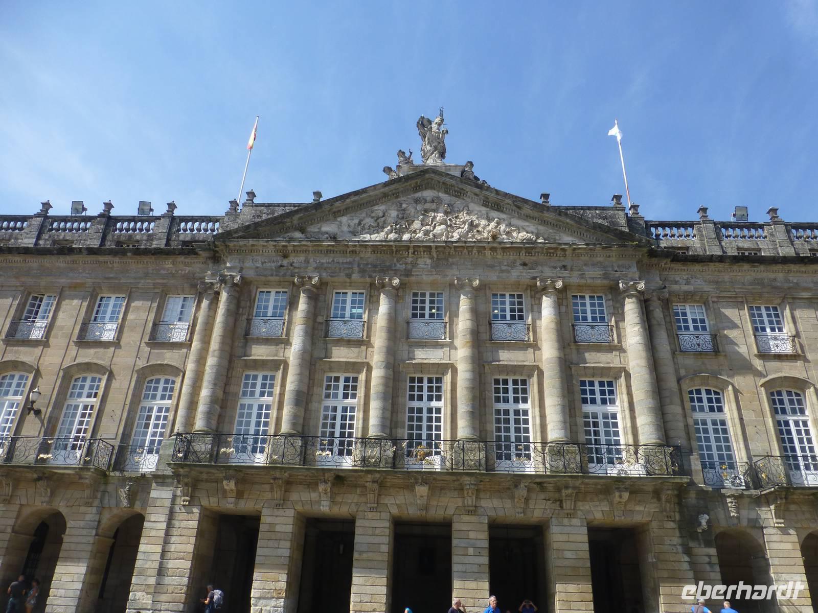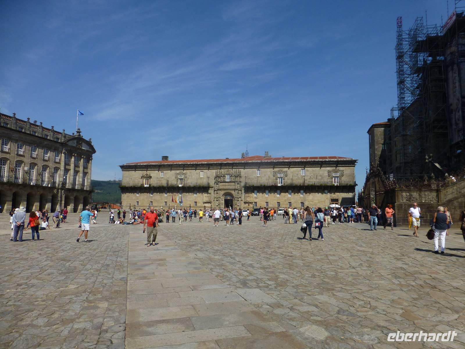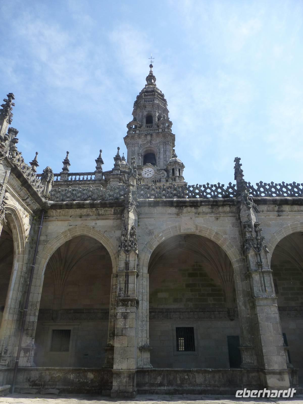 Heute legen wir an in La Coruna, die größte Stadt der Region A Coruna in Galicien. Es grüßt uns der älteste noch betriebene Leuchtturm der Welt! Erbaut von den Römern im 2.Jahrhundert ist der Herkulesturm mit seinen 68 Metern Höhe das Wahrzeichen der Stadt. Gleich nach dem Anlegen und der Freigabe gehen wir von Bord zu unserem zweiten gemeinsamen Eberhardt-Ausflug. Diesmal geht es zum berühmten Wallfahrtsort Santiago de Compostela. Unser Gästeführer Francisco, ein waschechter Galicier, berichtet uns humorvoll von bestimmten Eigenheiten der Galicier, die von den Kelten abstammen. Auch in der Musik sind diese Wurzeln zu bemerken, kommen doch Dudelsack, Drehleier und Harfe zu Einsatz. Bevor er uns jedoch mehr zu Landschaft, zu den Wäldern mit Eukalyptus und den Baias, den Fjorden, erzählen kann, haben er und unser Chauffeur eine große Aufgabe zu meistern. Die Milchbauern demonstrieren und blockieren mit ihren Traktoren die Zufahrtswege der Hauptstadt von Galicien. Ständig sind sie im Kontakt um den aktuellen Stand zu erfahren und uns bestmöglichst in die Stadt zu bringen, was ihnen auch wunderbar gelingt. Nach einem Fußmarsch durch den Park und durch die Gassen stehen wir auf dem Platz vor der berühmten Kathedrale, das Ziel der Pilger des Jakobsweges. Die barocke Fassade der Kathedrale ist übrigens auch auf den spanischen kupfernen Centmünzen (0,01 € bis 0,05 €) abgebildet. Für den Rundgang in der Kathedrale bekommen wir Kopfhörer, damit erleichtert sich in der Menschenmenge das Zuhören, Zusammenbleiben und doch individuelles Fotografieren deutlich. Francisco führt uns in und durch die Kathedrale, zeigt uns -natürlich- auch den Hauptaltar, der über dem Grab des Apostels Jakobus errichtet wurde. Pilger umarmen die Figur des heiligen Jakobus als Zeichen der Ehrerbietung. Nach dem Rundgang, den wir wieder draußen beenden, bleibt noch etwas Freizeit, sei es zur Mittagspause oder zum „Muschelsuchen". Vor dem Pilgerbüro stehen viele Menschen, manche sind zu Fuß, manche mit Rad oder auch mit Rollstuhl angekommen. Gemeinsam gehen wir wieder zum Bus, der uns nach La Coruna bringt. Francisco zeigt uns nun auch noch die Stadt auf der Halbinsel. Wir sehen die vielen kleinen Fenstern an den Galeriehäusern an der Uferpromenade und verstehen, woher die Bezeichnung Kristallstadt kommt. Der Herkulesturm versteckt sich zwar im Nebel, aber wir sehen die Festungsanlage, Museen und können uns von den Stränden ein Bild machen. Herzlichst verabschieden wir uns von den zwei Galiciern, und VIELLEICHT sehen wir uns wieder!