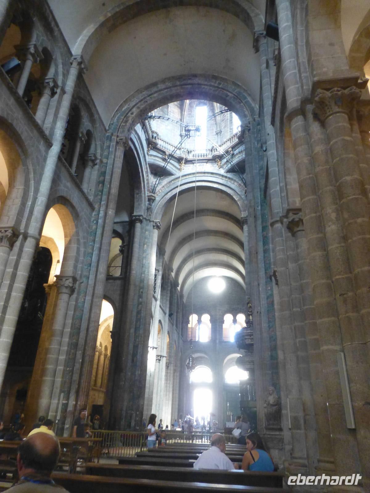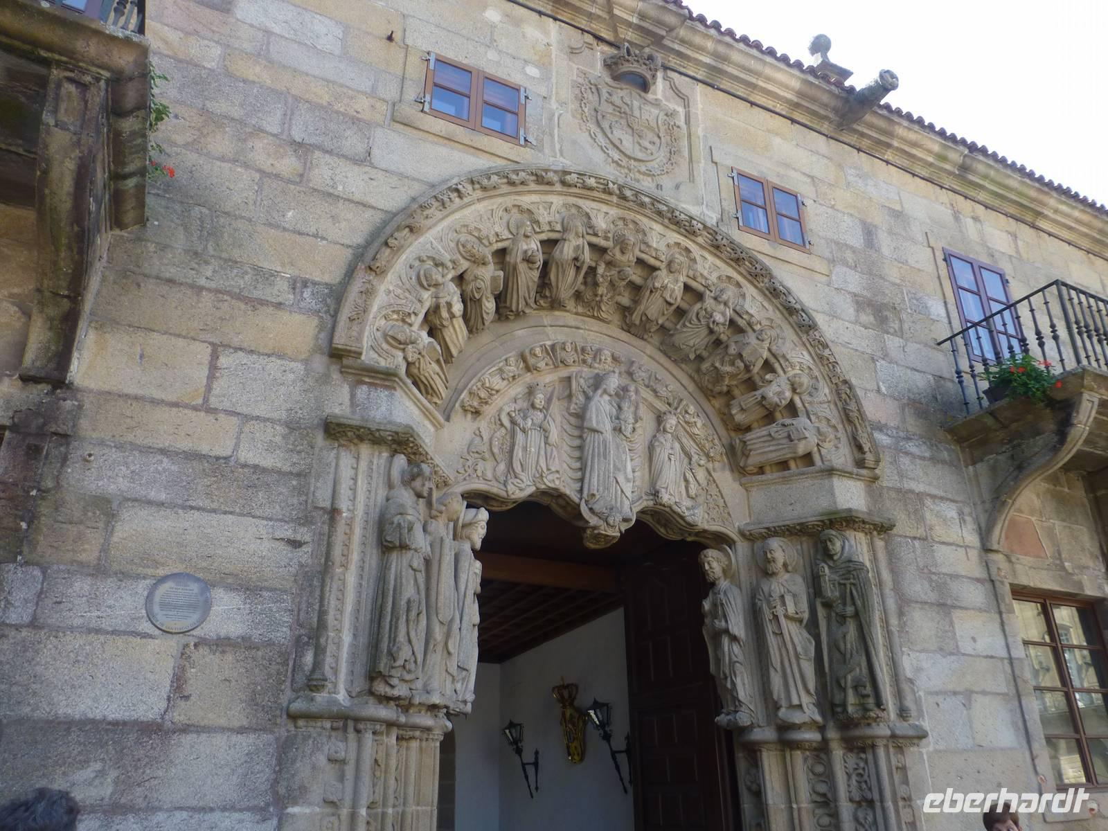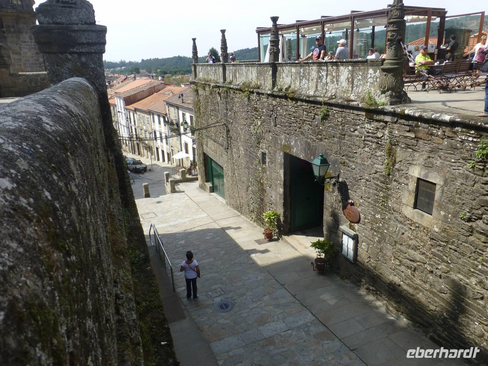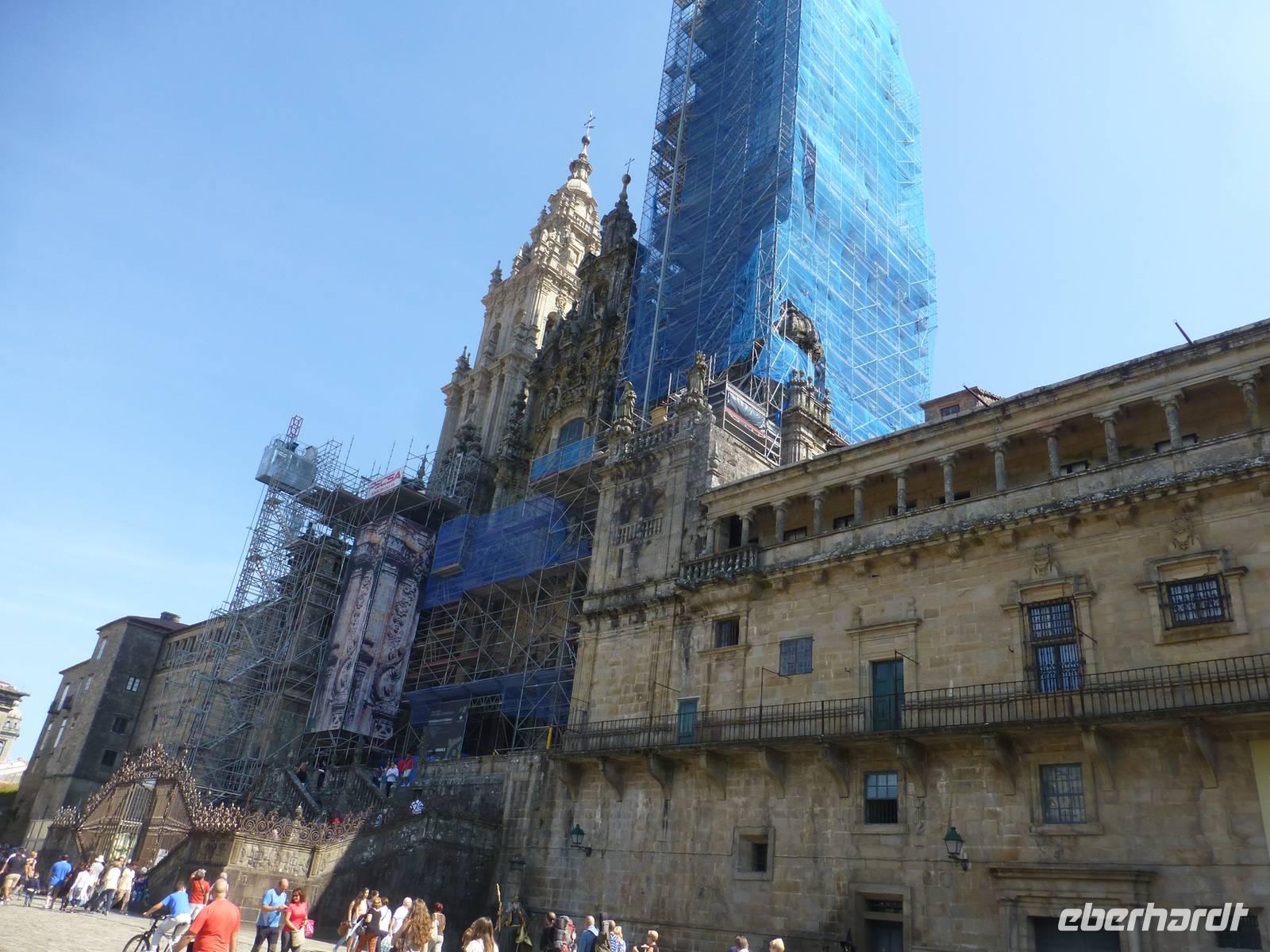 Heute legen wir an in La Coruna, die größte Stadt der Region A Coruna in Galicien. Es grüßt uns der älteste noch betriebene Leuchtturm der Welt! Erbaut von den Römern im 2.Jahrhundert ist der Herkulesturm mit seinen 68 Metern Höhe das Wahrzeichen der Stadt. Gleich nach dem Anlegen und der Freigabe gehen wir von Bord zu unserem zweiten gemeinsamen Eberhardt-Ausflug. Diesmal geht es zum berühmten Wallfahrtsort Santiago de Compostela. Unser Gästeführer Francisco, ein waschechter Galicier, berichtet uns humorvoll von bestimmten Eigenheiten der Galicier, die von den Kelten abstammen. Auch in der Musik sind diese Wurzeln zu bemerken, kommen doch Dudelsack, Drehleier und Harfe zu Einsatz. Bevor er uns jedoch mehr zu Landschaft, zu den Wäldern mit Eukalyptus und den Baias, den Fjorden, erzählen kann, haben er und unser Chauffeur eine große Aufgabe zu meistern. Die Milchbauern demonstrieren und blockieren mit ihren Traktoren die Zufahrtswege der Hauptstadt von Galicien. Ständig sind sie im Kontakt um den aktuellen Stand zu erfahren und uns bestmöglichst in die Stadt zu bringen, was ihnen auch wunderbar gelingt. Nach einem Fußmarsch durch den Park und durch die Gassen stehen wir auf dem Platz vor der berühmten Kathedrale, das Ziel der Pilger des Jakobsweges. Die barocke Fassade der Kathedrale ist übrigens auch auf den spanischen kupfernen Centmünzen (0,01 € bis 0,05 €) abgebildet. Für den Rundgang in der Kathedrale bekommen wir Kopfhörer, damit erleichtert sich in der Menschenmenge das Zuhören, Zusammenbleiben und doch individuelles Fotografieren deutlich. Francisco führt uns in und durch die Kathedrale, zeigt uns -natürlich- auch den Hauptaltar, der über dem Grab des Apostels Jakobus errichtet wurde. Pilger umarmen die Figur des heiligen Jakobus als Zeichen der Ehrerbietung. Nach dem Rundgang, den wir wieder draußen beenden, bleibt noch etwas Freizeit, sei es zur Mittagspause oder zum „Muschelsuchen". Vor dem Pilgerbüro stehen viele Menschen, manche sind zu Fuß, manche mit Rad oder auch mit Rollstuhl angekommen. Gemeinsam gehen wir wieder zum Bus, der uns nach La Coruna bringt. Francisco zeigt uns nun auch noch die Stadt auf der Halbinsel. Wir sehen die vielen kleinen Fenstern an den Galeriehäusern an der Uferpromenade und verstehen, woher die Bezeichnung Kristallstadt kommt. Der Herkulesturm versteckt sich zwar im Nebel, aber wir sehen die Festungsanlage, Museen und können uns von den Stränden ein Bild machen. Herzlichst verabschieden wir uns von den zwei Galiciern, und VIELLEICHT sehen wir uns wieder!