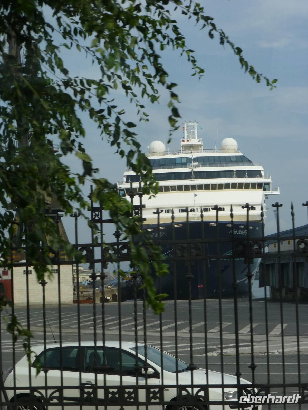 Das Schokoladen-Belgien erwartet uns heute. Im Hafen von Zeebrügge ist das noch nicht erkennbar, früh um 7 Uhr legen wir im größten Fischerei- und des einzigen direkt an der Küste liegenden Seehafen des Landes an. Hier entdecken wir Fischerboote, tolle Yachten und auch Militärschiffe. Wir unternehmen den halbtägigen Ausflug in das „Venedig des Nordens", die Stadt Brügge. Seit dem Jahre 2000 gehört die historische Altstadt zum UNESCO Weltkulturerbe. Nur eine kurze Fahrt von einer halben Stunde und schon können wir die die Innenstadt mit ihren zahlreichen Kanälen entdecken. Leider schüttet Petrus Wassermengen über uns aus, aber die Liebfrauenkirche, den Burgplatz, das Rathaus und die Heilig-Blut-Basilika konnten wir auch mit Regenschirm besichtigen. Das konnten wir bei der anschließenden Tour mit offenem Kanalboot nicht ganz so gut. Aber wir bekamen noch etwas Freizeit, um zum Beispiel die viel gelobte belgische Schokolade, die belgischen Waffeln und Pommes Frites zu verkosten. Andere Gäste haben den Ausflug nach Brügge und Gent oder die Tour nach Brüssel mitgemacht und schwärmten davon; sie wurden übrigens vom Wolkenbruch verschont. Vom Schiff aus wurde ein Shuttle in den nahen Küstenort Blankenberge zum Spazieren und Flanieren angeboten. Heute lief das Schiff bereits 17:00 Uhr aus. Schließlich erwartete uns am Abend ein Unterhaltungs-Höhepunkt: die A Cappella Comedy Show von Six Pack, das humorvoll gekonnte Konzert (über-)füllte das Theater.