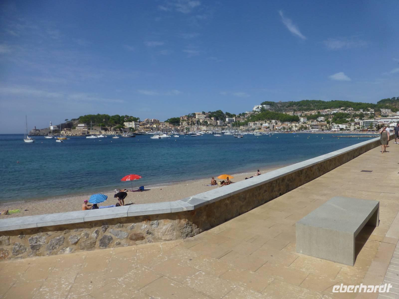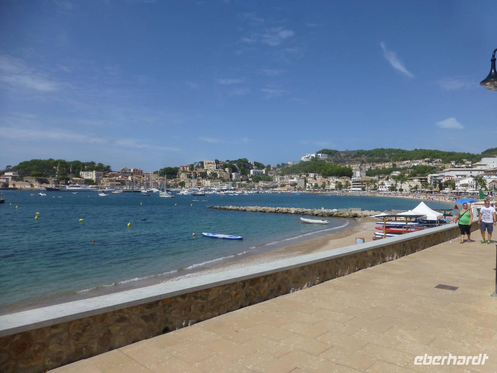 Nach einem kurzen Fotostopp mit dem Panorama der imposanten Kathedrale von Palma fahren wir zum Weingut „Taujana". Kurz nach uns kommt gerade eine frisch handgelesene Ladung Weintrauben auf den Hof, die wir als Erstes verkosten dürfen. Wir sehen beim Entladen mit neuester Technik zu, Stiele fliegen beiseite und der Saft verschwindet im Keller. Dem gehen wir jetzt nach und sehen die modernen Anlagen zum Keltern und Abfüllen sowie Edelstahltanks. Noch weiter unten im Fasskeller reifen die Weine in Eichenfässern dann heran. Diese probieren wir natürlich auch und freuen uns über die handfesten Leckereien mit Wurst und Käse. Eine sehr moderne Bodega mit gastfreundlichen Winzern; wirklich schade, dass der Platz im Koffer so knapp war... Nun fahren wir in das Tramuntana-Gebirge und besichtigen zuerst Valldemossa, wohl das berühmteste und meistbesuchte Städtchen auf Mallorca. Bekannt geworden ist es durch das Kloster und seinem bekannten Gast Frederic Chopin sowie seiner Liebe, der Schriftstellerin Georg Sand. Mit wunderschönen Ausblicken fahren wir weiter entlang der Nordwestküste, passieren das Künstlerdorf Deia und steigen in Soller aus. Nach einem kurzen Fußweg stehen wir auf dem zentralen Platz des Städtchens und können die beachtenswerte Kirche Sant Bartomeu betrachten. Nach einer Pause treffen wir uns am Bahnhof wieder, um mit der historischen Straßenbahn gemächlich zum Hafen Port de Soller zu ruckeln. Die ungefähren drei Kilometer legen wir in ca 20 Minuten zurück. Dann öffnet sich der Blick und wir fahren mit der Bahn an der Strandpromenade entlang. Der geschützte Hafen liegt an einer kreisrunden Bucht, die auch einen schönen Strand besitzt. Auch hier haben wir Zeit zum Bummeln, bevor wir zu unserem Bus laufen, der uns ins Hotel nach Illetas bringt. Auf der Rückfahrt nutzen wir die Schnellstraße mit Tunnel. Das Hotel liegt direkt am Meer, hat einen tollen Ausblick und wir entdecken sogar das MeinSchiff1. Auf der Restaurantterrasse lassen wir beim Abendessen die Reise ausklingen. Spätabends beginnt das Kreuzfahrtschiff eine neue Route und es scheint, es grüßt uns aus der Ferne...