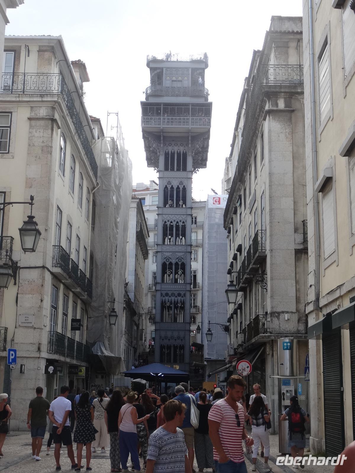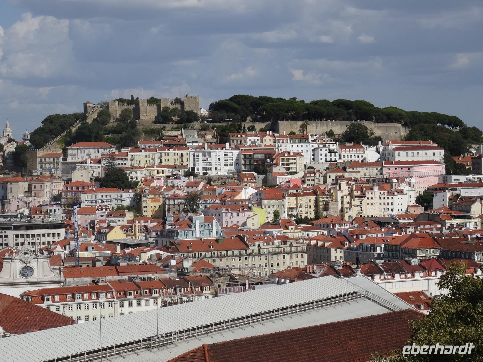 dem Elevador da Gloria hinauf zu einem wunderschönen Aussichtspunkt und wurden dafür mit einem tollen Blick auf die Burg von Sao Jorge belohnt. Danach bummelten sie vorbei am Rossio und dem Elevador de Santa Justa entlang des "Brodway's" von Lissabon - der Rua Augusta.
