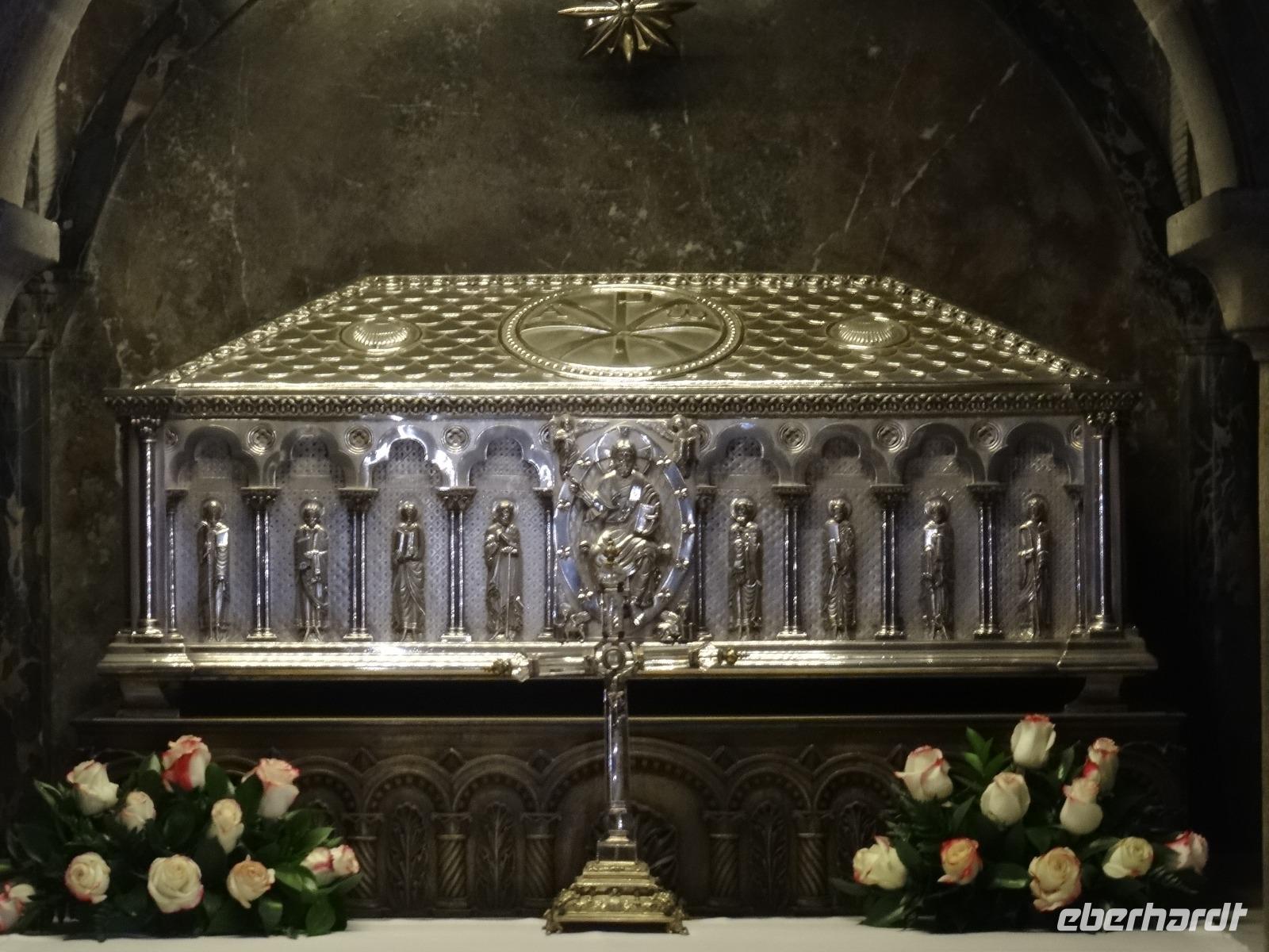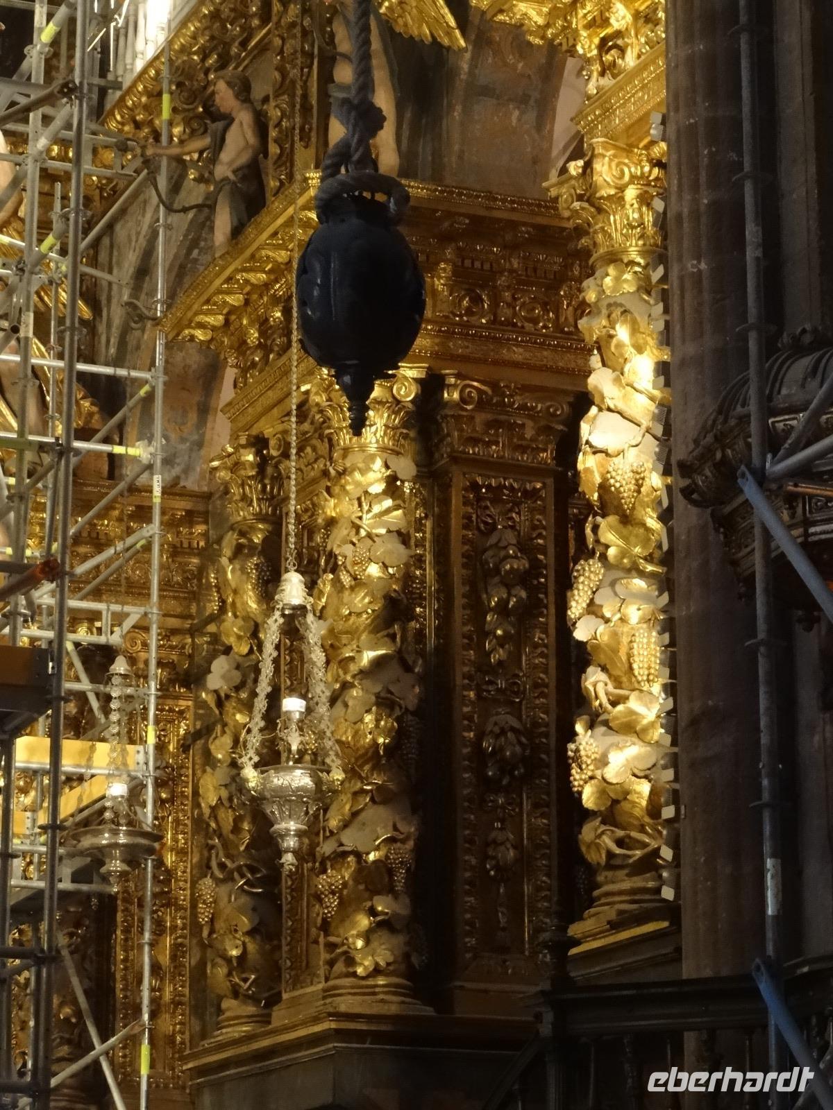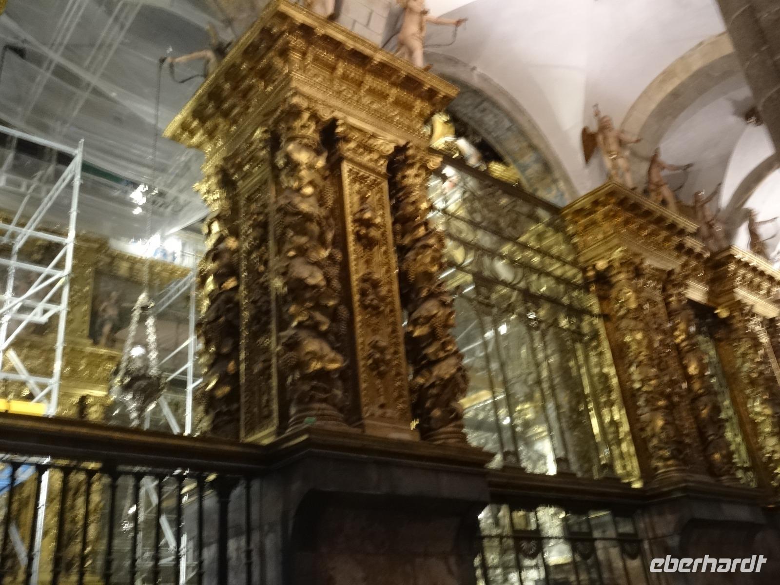Trotz der Renovierungsarbeiten, welche ständig zu scheinen sind, war der Anblick überwältigend. Diese hinderten uns jedoch nicht daran, weinigstens einen Blick in das Innere der Kathedrale mit dem prächtigen Hauptaltar über dem Grab des Apostels zu werfen.