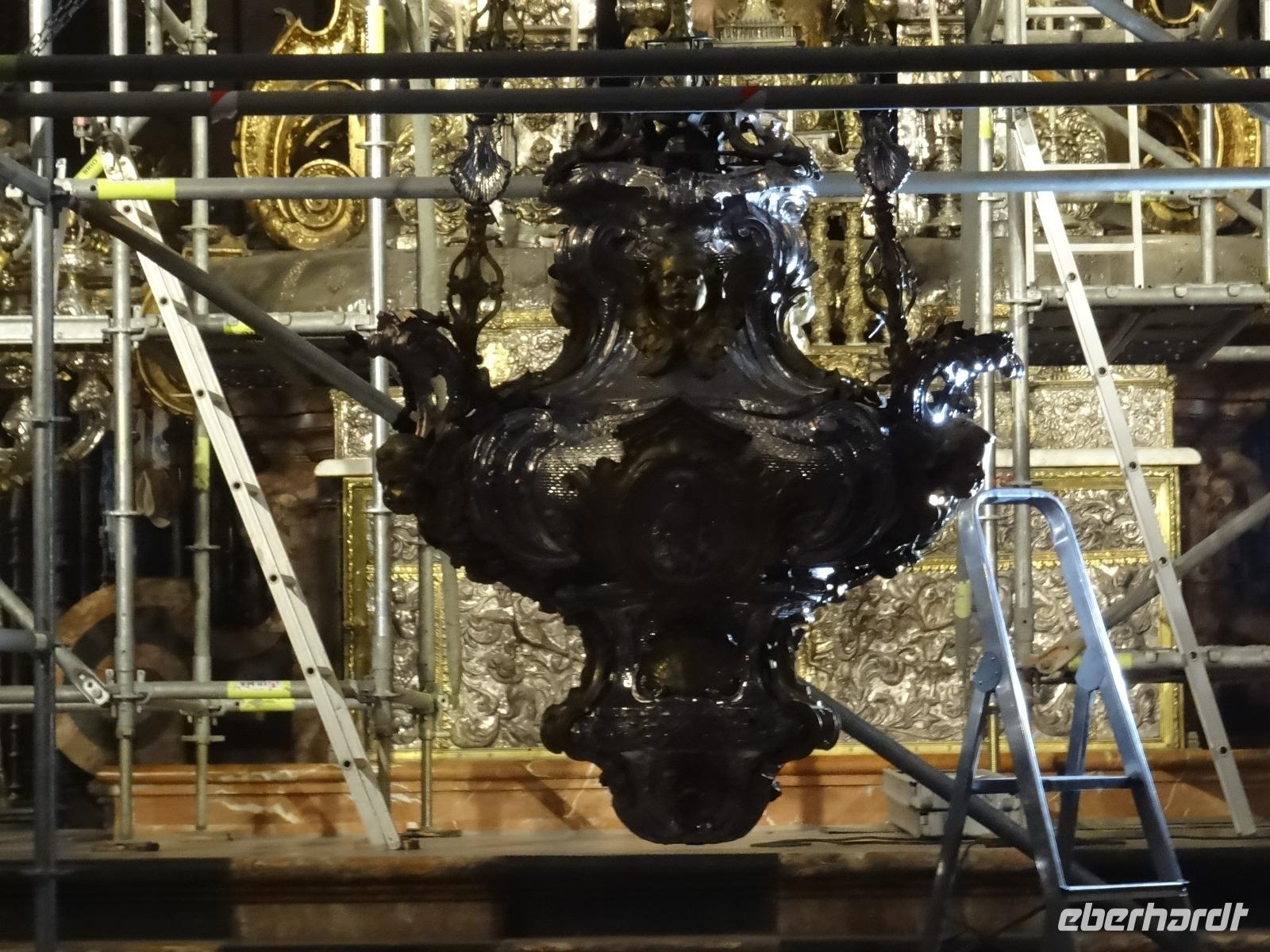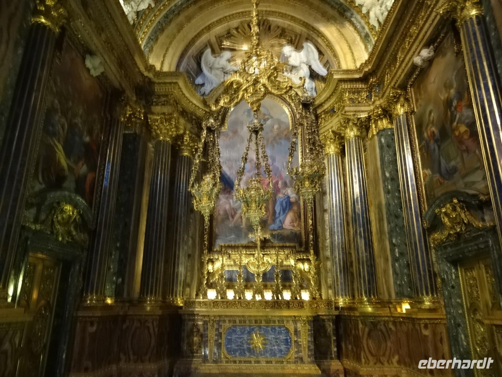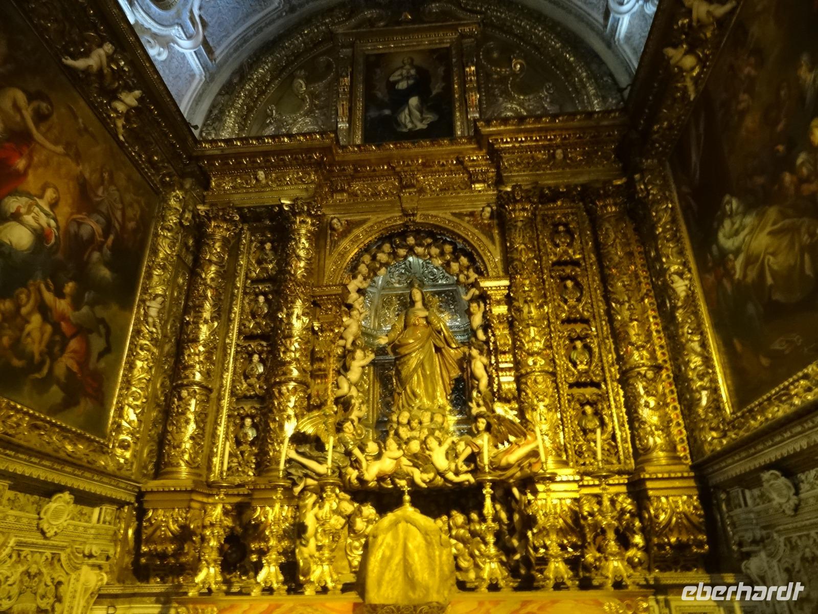 Trotz der Renovierungsarbeiten, welche ständig zu scheinen sind, war der Anblick überwältigend. Diese hinderten uns jedoch nicht daran, weinigstens einen Blick in das Innere der Kathedrale mit dem prächtigen Hauptaltar über dem Grab des Apostels zu werfen.