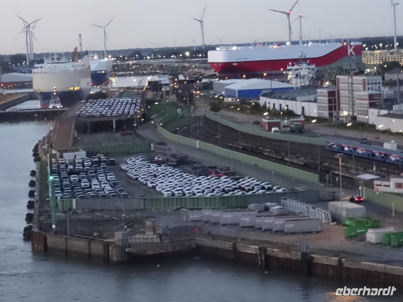 Zum ersten Mal erklang die Auslaufhymne "Große Freiheit" von Unheilig und "Mein Schiff 3" legte ab. Mit einem Getränk in der Hand verfolgten wir auf dem Pooldeck das Auslaufen. Vorbei am größten Autoterminal Europas und dem Containerhafen ging es hinaus auf das offene Meer.