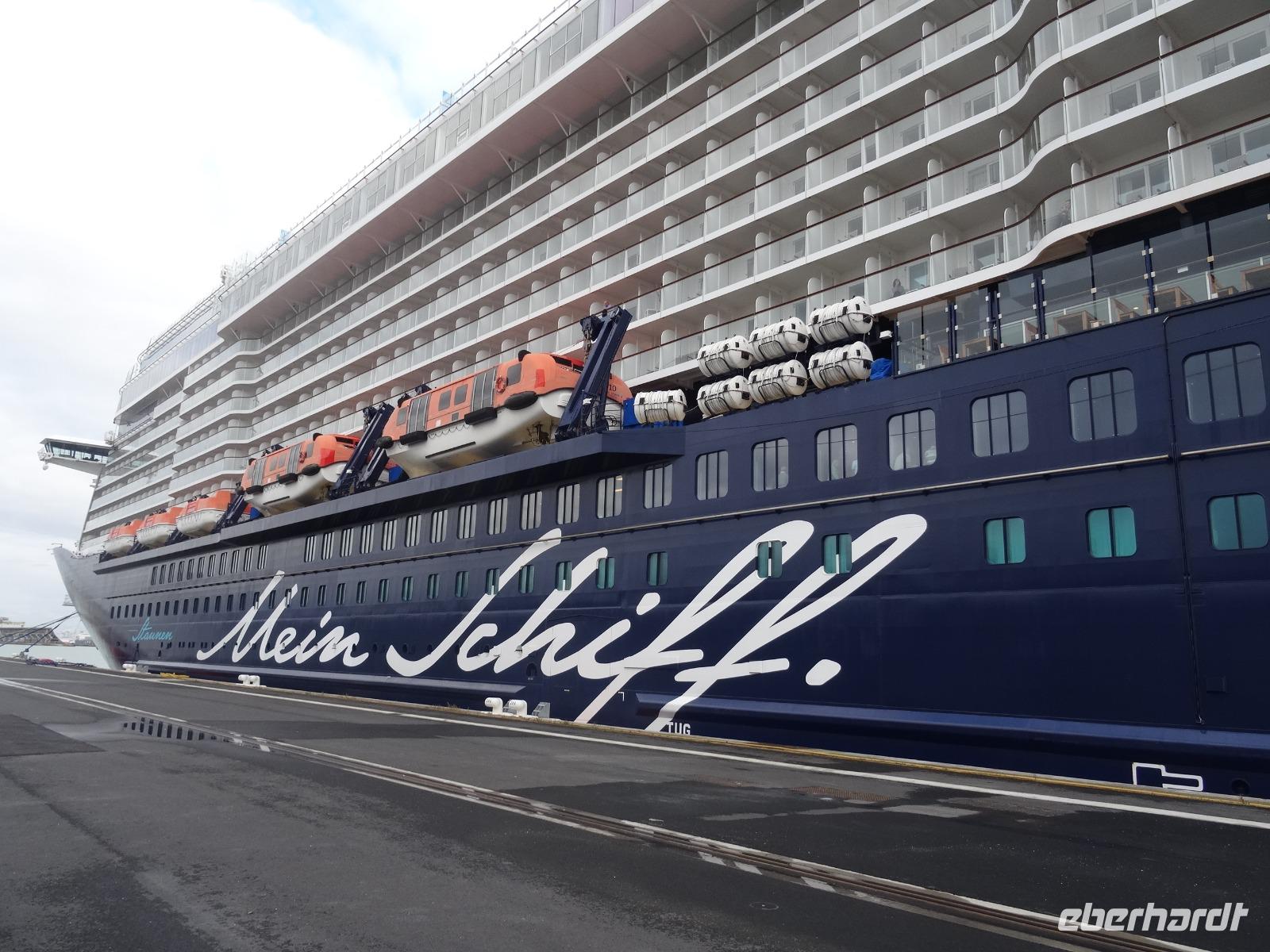 Durch unseren Busfahrer Aldo wurden wir sicher zum Columbus Cruise Center = Liegeplatz in Bremerhaven gebracht. Hier erwartete uns bereits die "Mein Schiff 3".