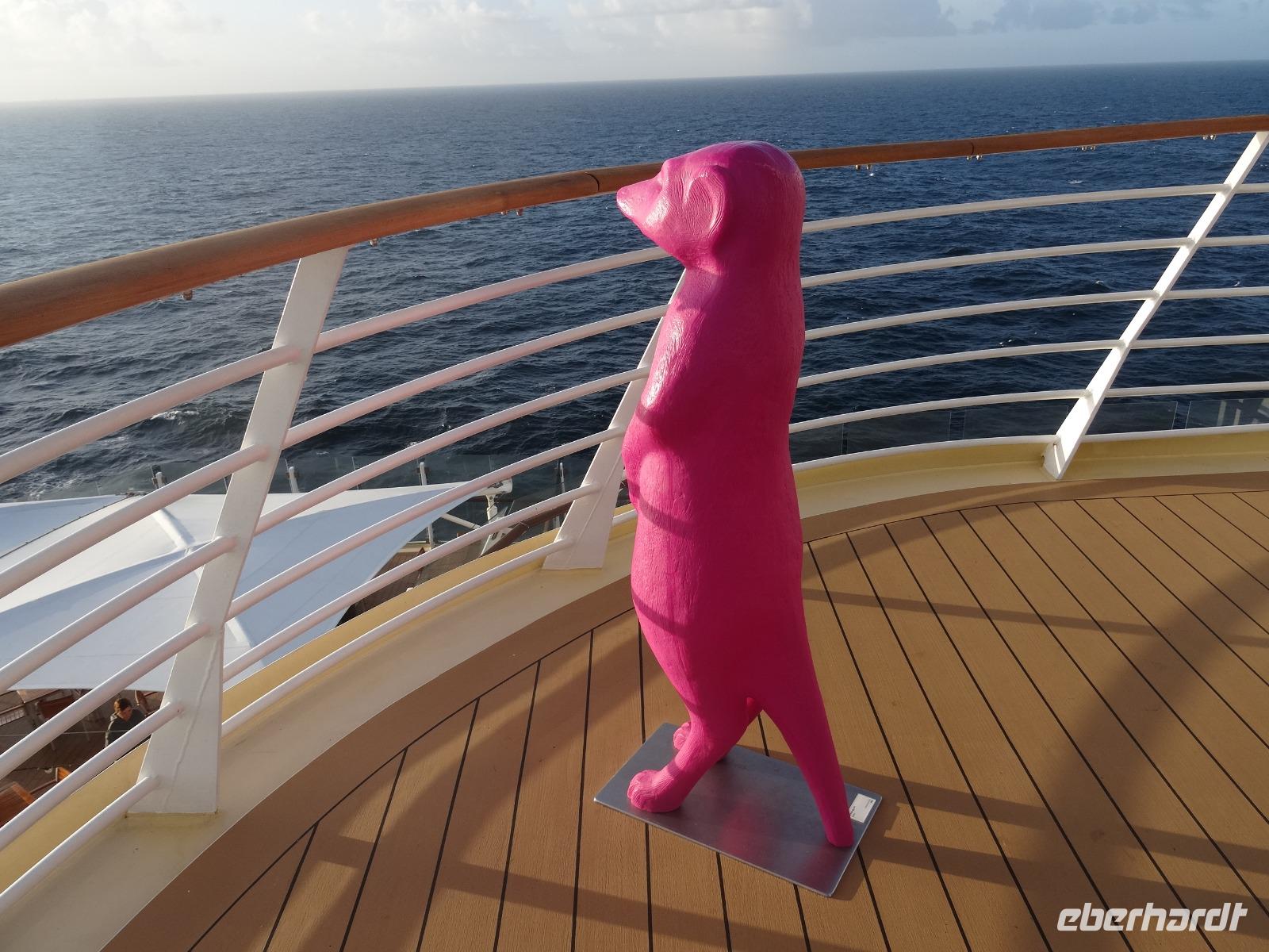 Zunächst stießen wir mit einem Glas Sekt auf die kommenden wunderschönen Tage an. Im Anschluss zeigte uns Gastgeberin Janna auf charmante Art und Weise unser schwimmendes Hotel vom Deck 14 bis Deck 4, vom Bug bis zum Heck.
