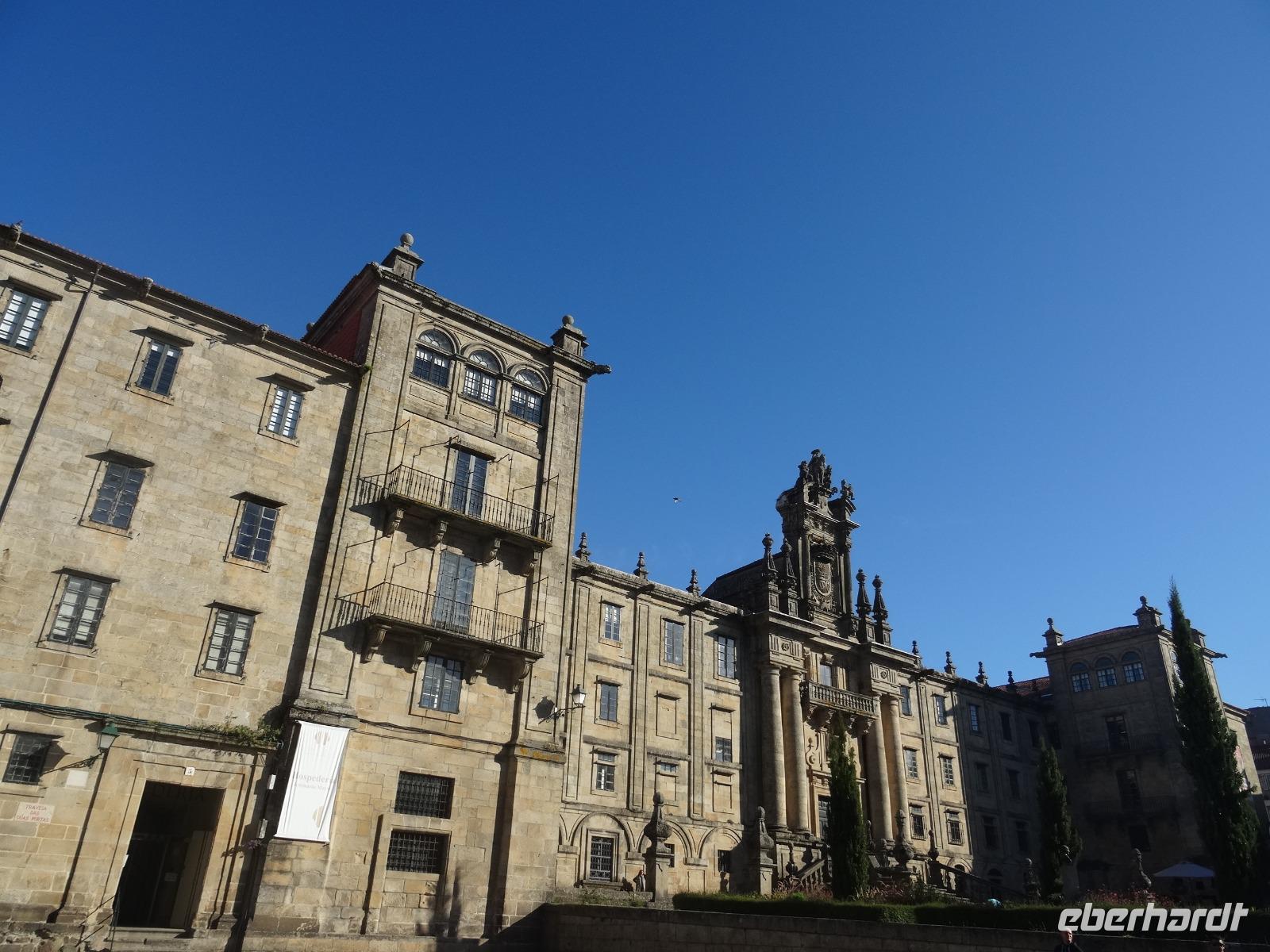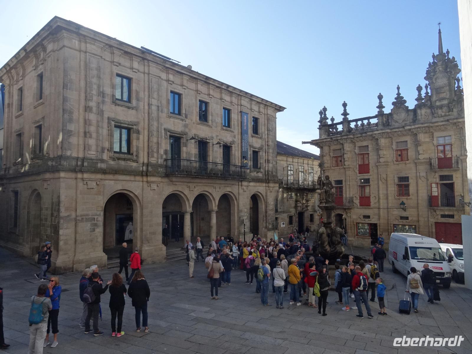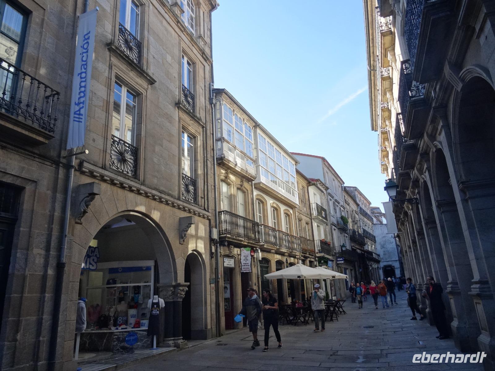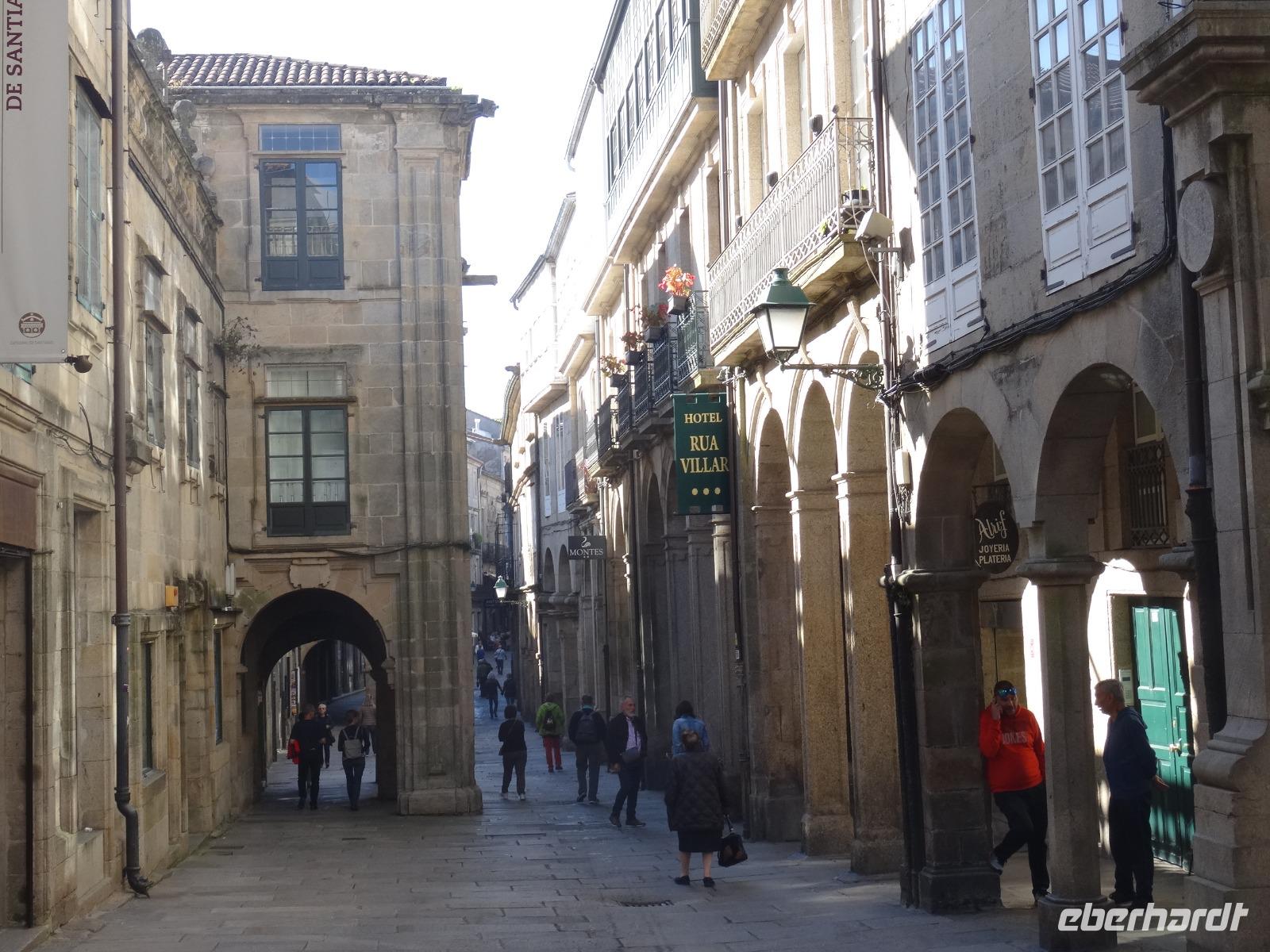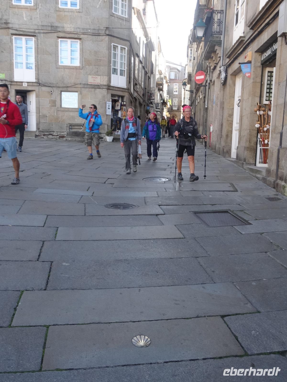 Um die Kathedrale drängt sich ein herrliches Ensemble enger Straßen, alter Plätze und historischer Granitbauten der sich seit 1985 zum UNESCO- Weltkulturerbe zählenden Altstadt, welche wir auf unserem Rundgang kennenlernten. Immer wieder war auf dem Boden eine Jacobsmuschel zu sehen als Zeichen, dass man sich auf dem Jacobsweg befand.