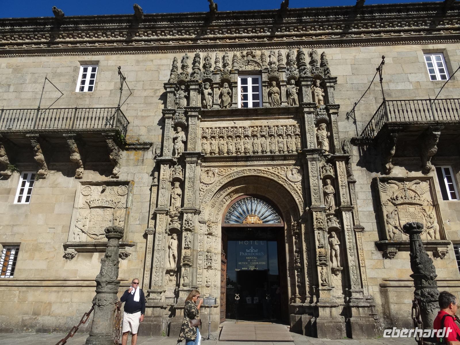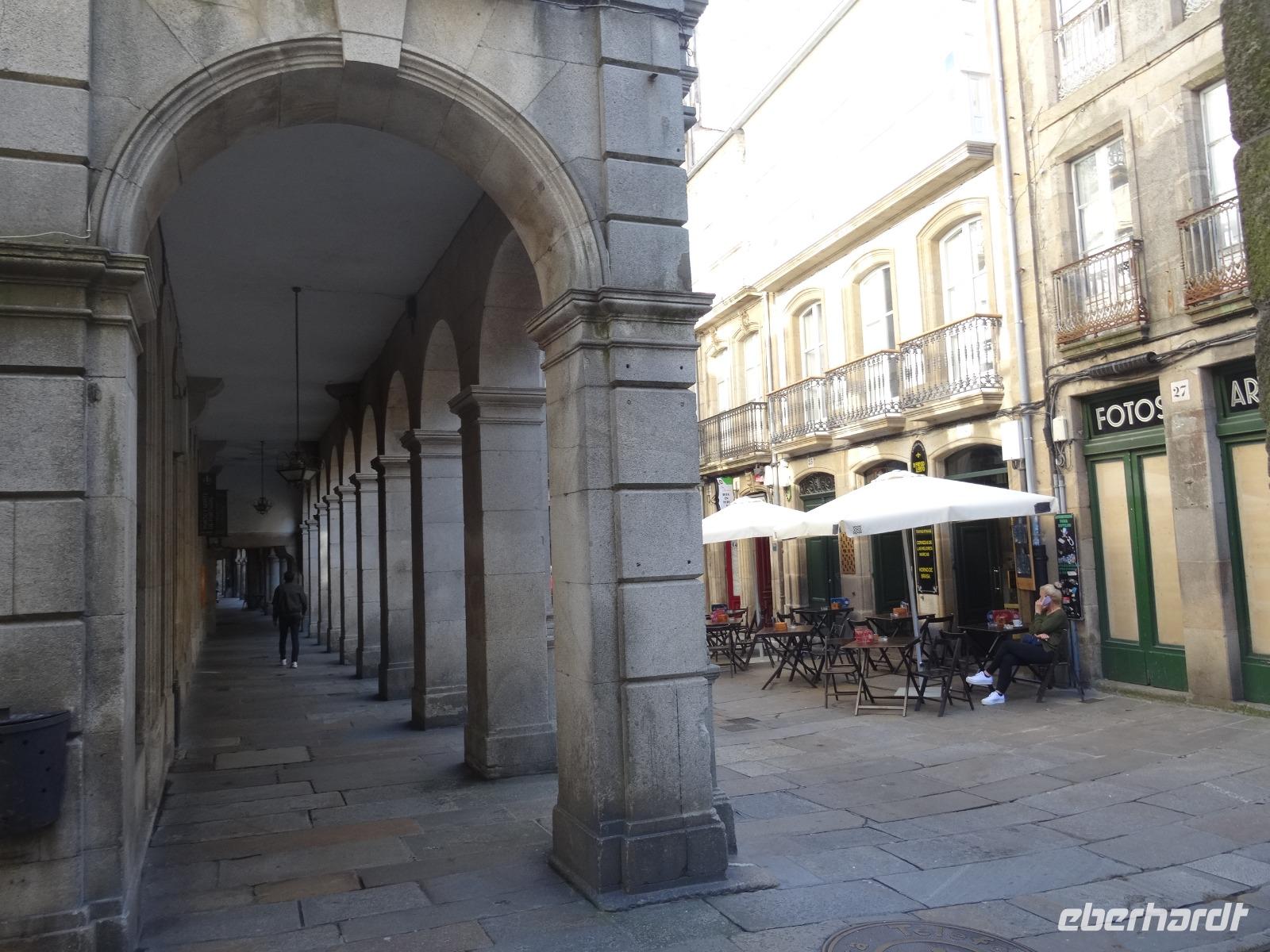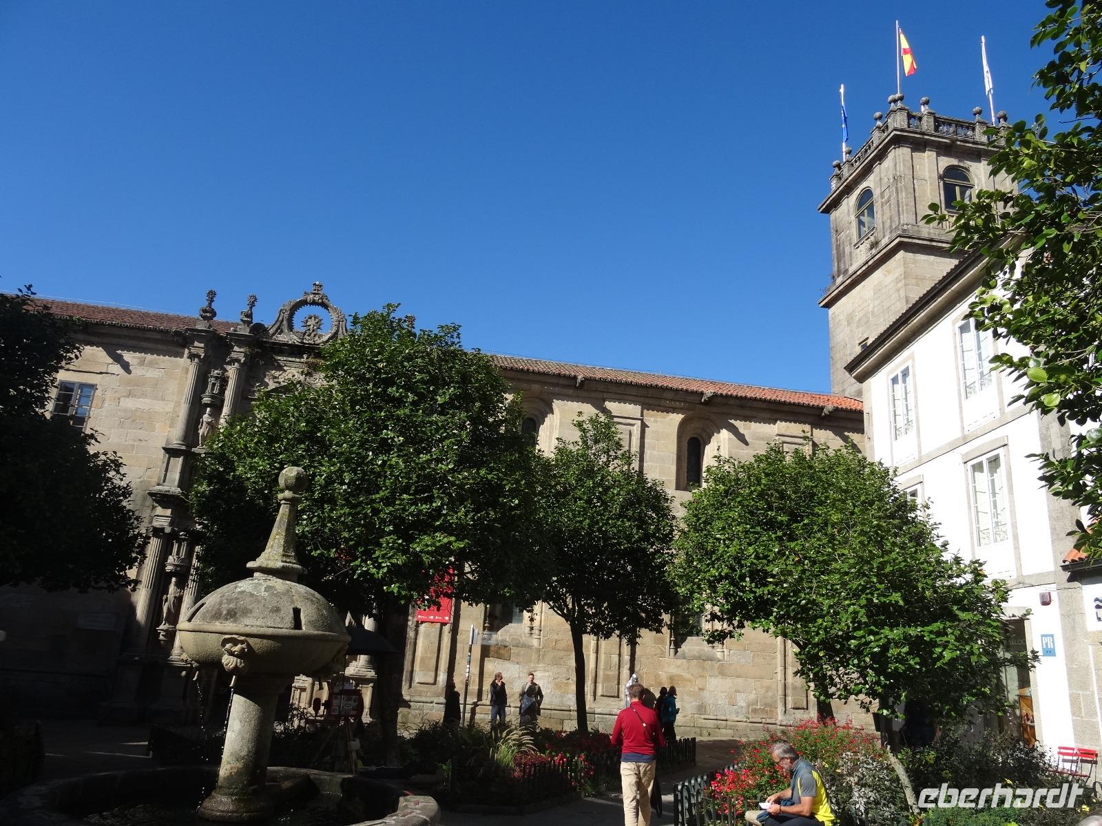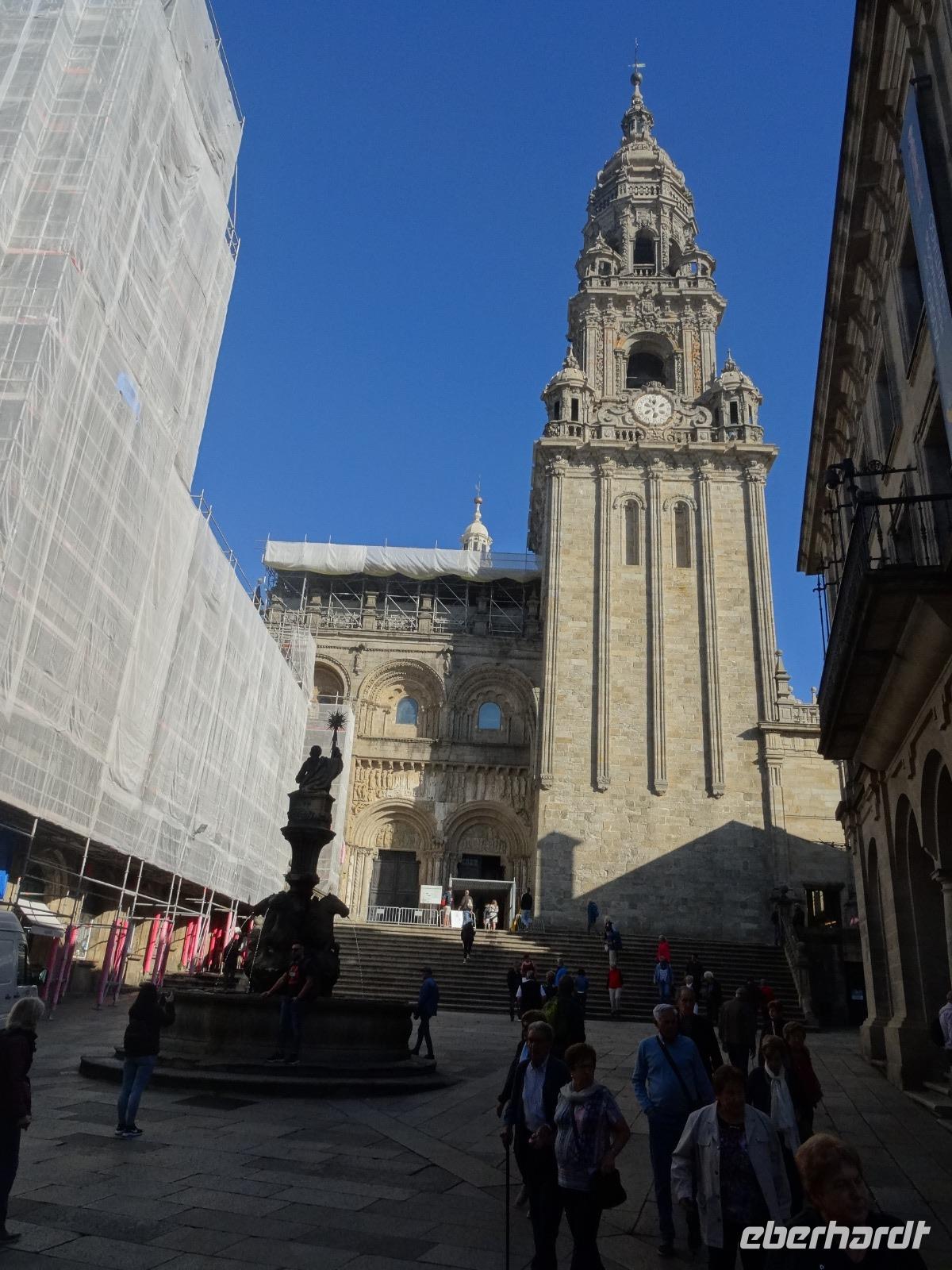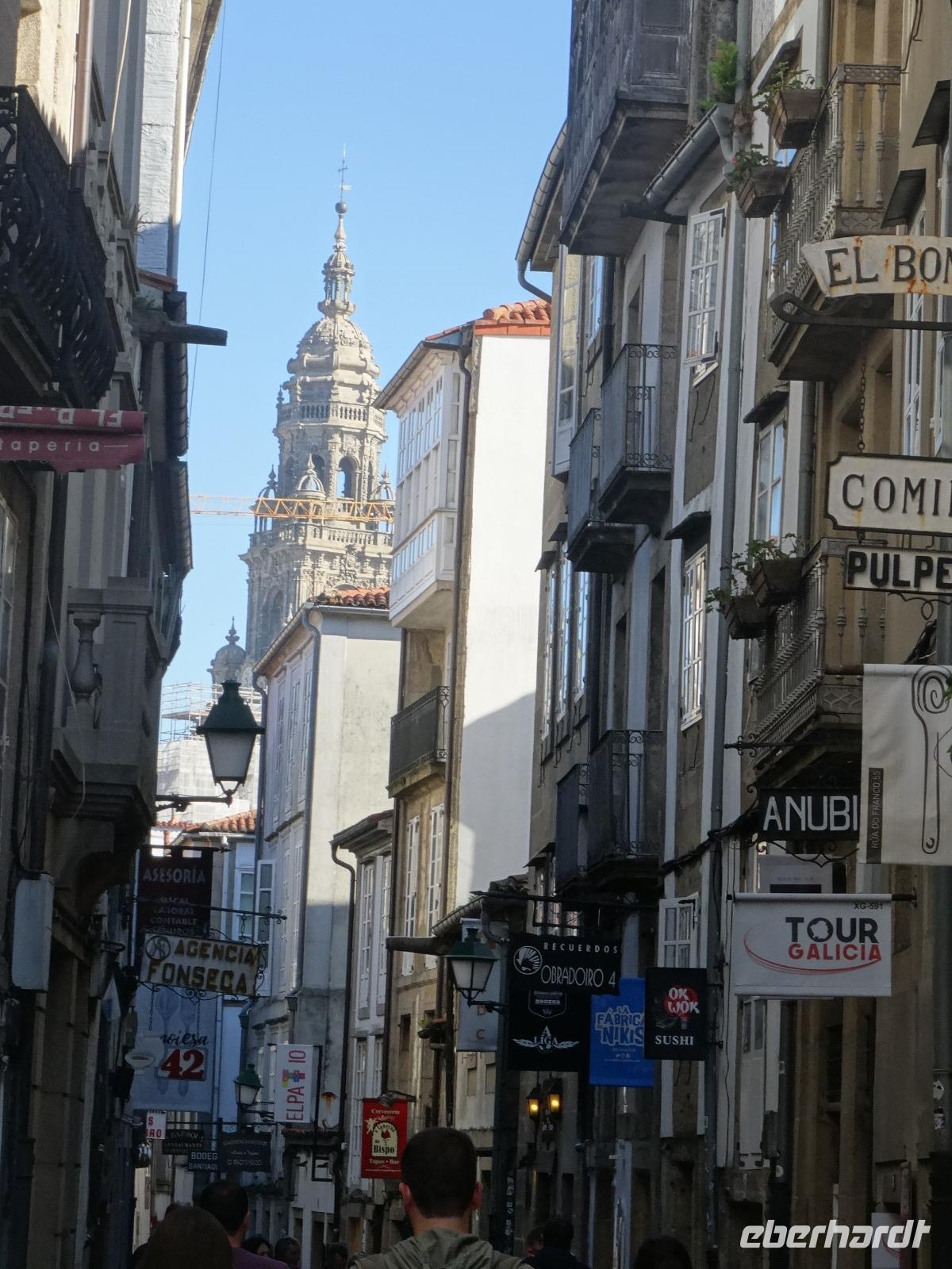 Um die Kathedrale drängt sich ein herrliches Ensemble enger Straßen, alter Plätze und historischer Granitbauten der sich seit 1985 zum UNESCO- Weltkulturerbe zählenden Altstadt, welche wir auf unserem Rundgang kennenlernten. Immer wieder war auf dem Boden eine Jacobsmuschel zu sehen als Zeichen, dass man sich auf dem Jacobsweg befand.