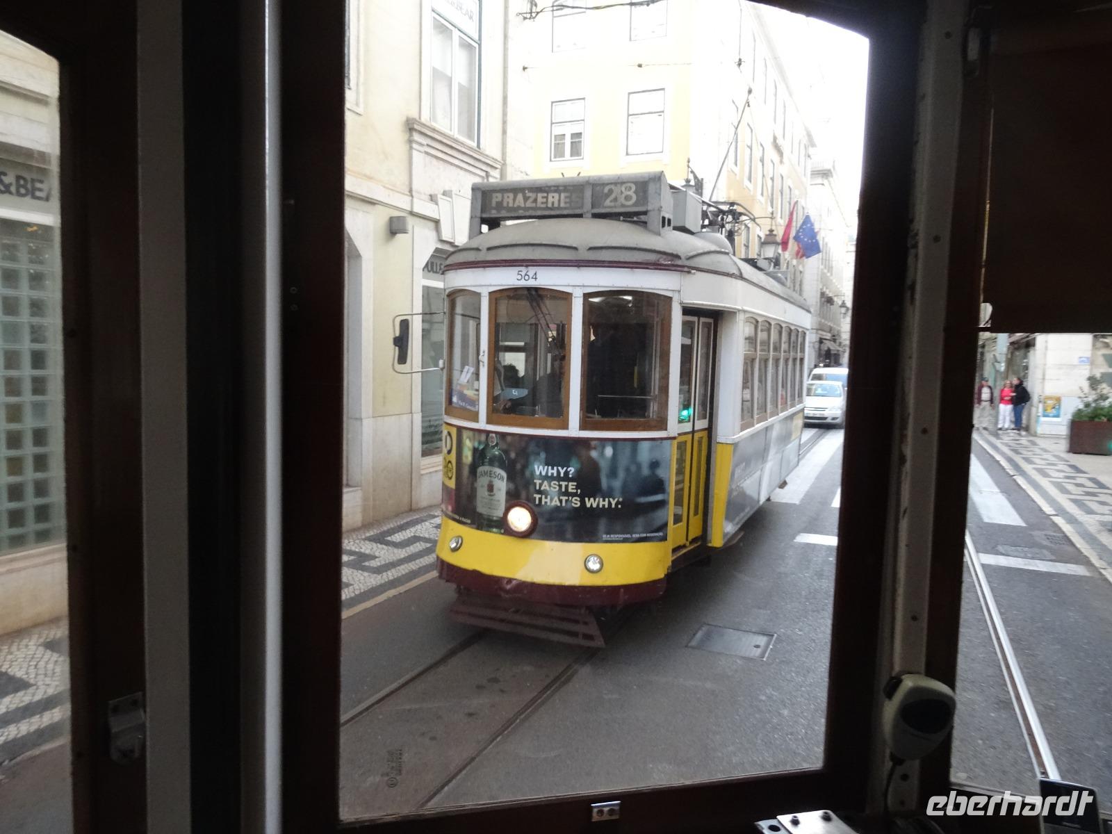 So konnten wir unbedrängt von Touristenmassen -alle Gäste sitzend- die Fahrt zurück in die Altstadt Lissabons einfach nur genießen.