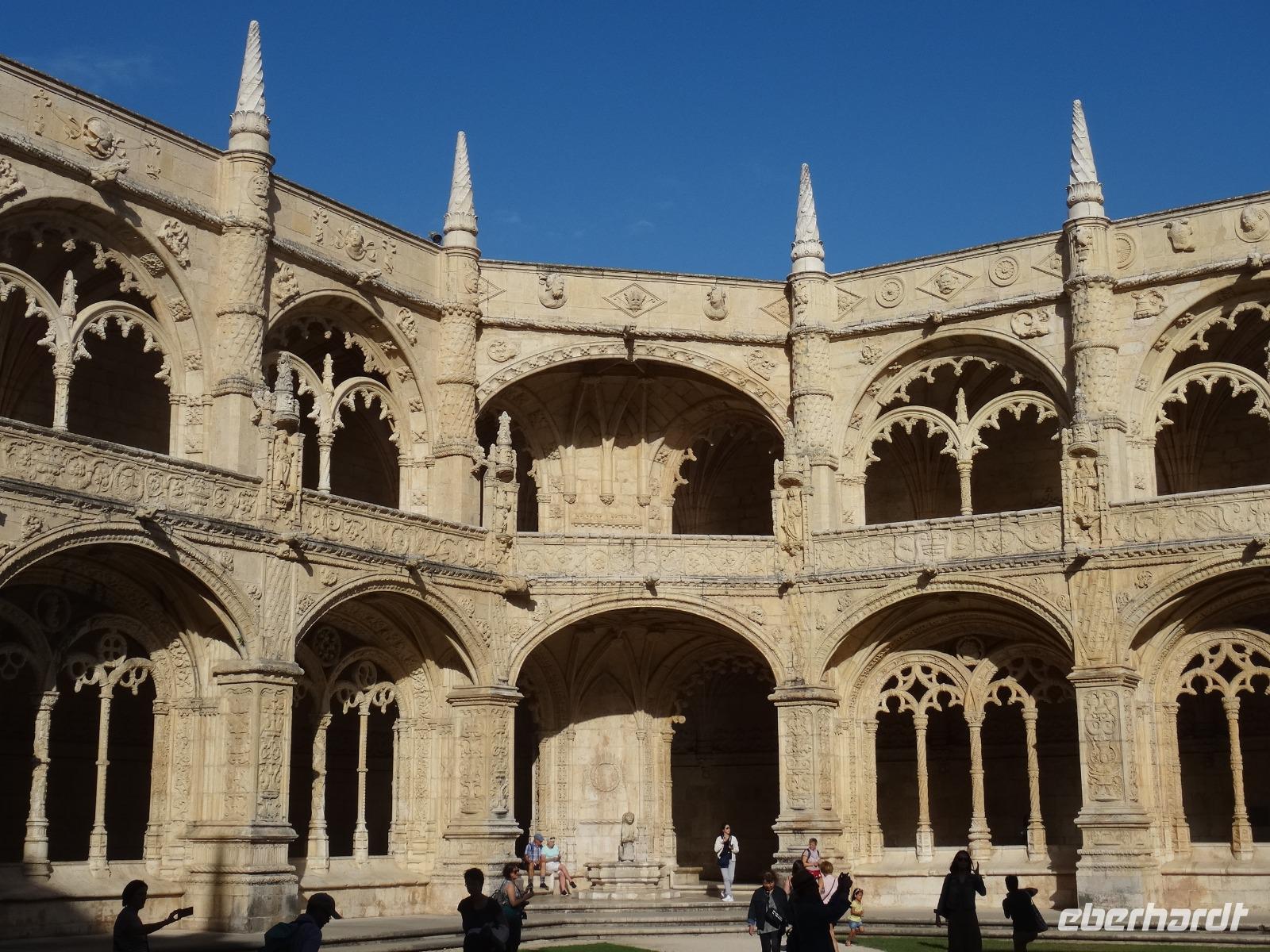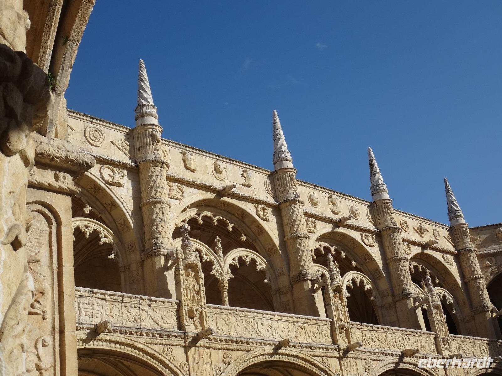 Hier besuchten wir zuerst das äußerst imposante Hieronymuskloster, welches einst am Ufer des Tejo stand. Früher war hier eine kleine Kapelle. 1502 war es dann König Manuel I vorbehalten, den Grundstein für das Kloster zu legen. Es sollte ein Symbol des Triumpfes der Seeherrschaft Portugals und ein Meisterwerk der Manuelinik werden. Wir besichtigten den tollen Innenhof. Leider konnten wir infolge von Bauarbeiten in der Klosterkirche Santa Maria nicht den prächtigen Sarkophag von Vasco da Gamas bewundern.