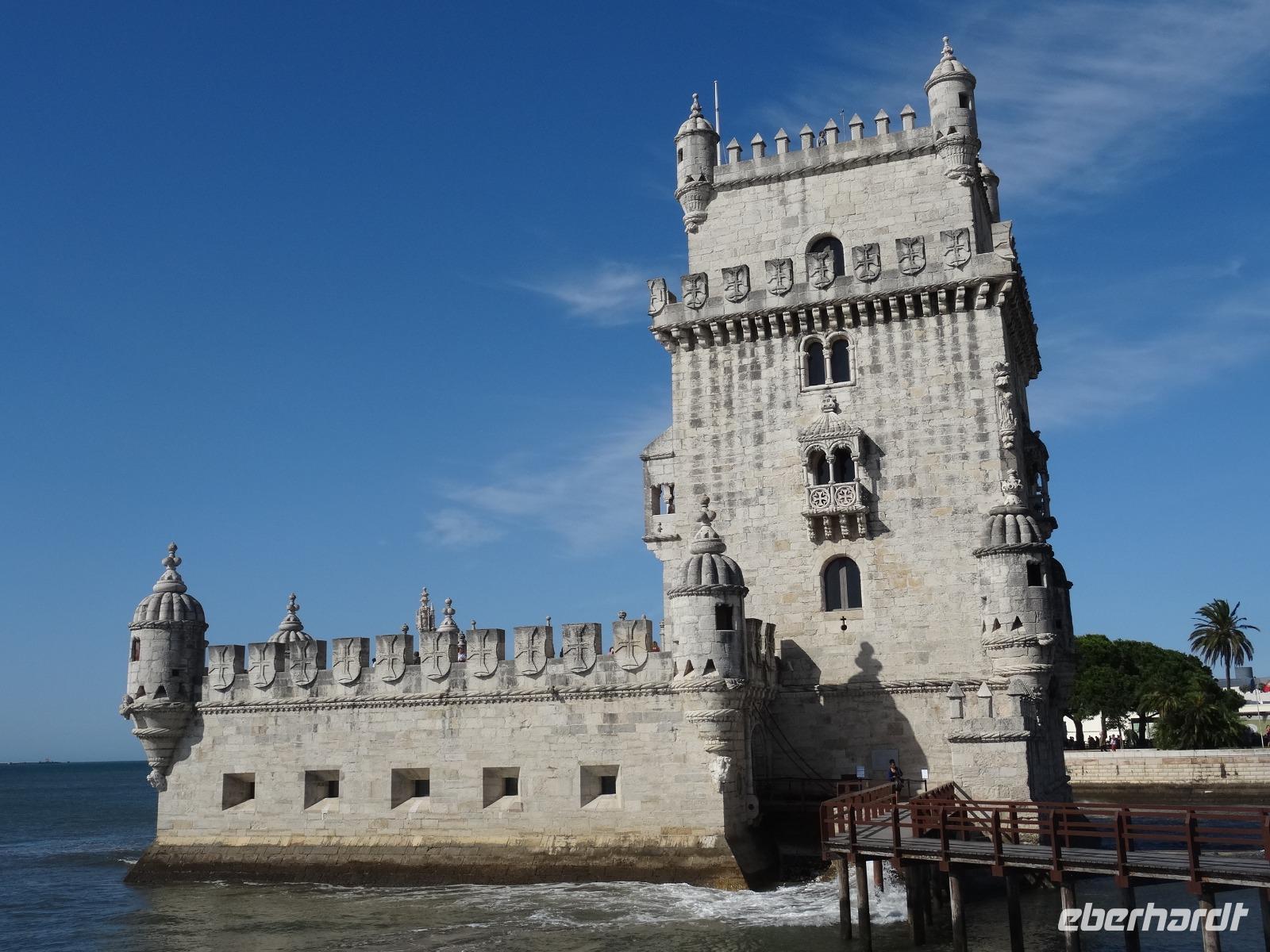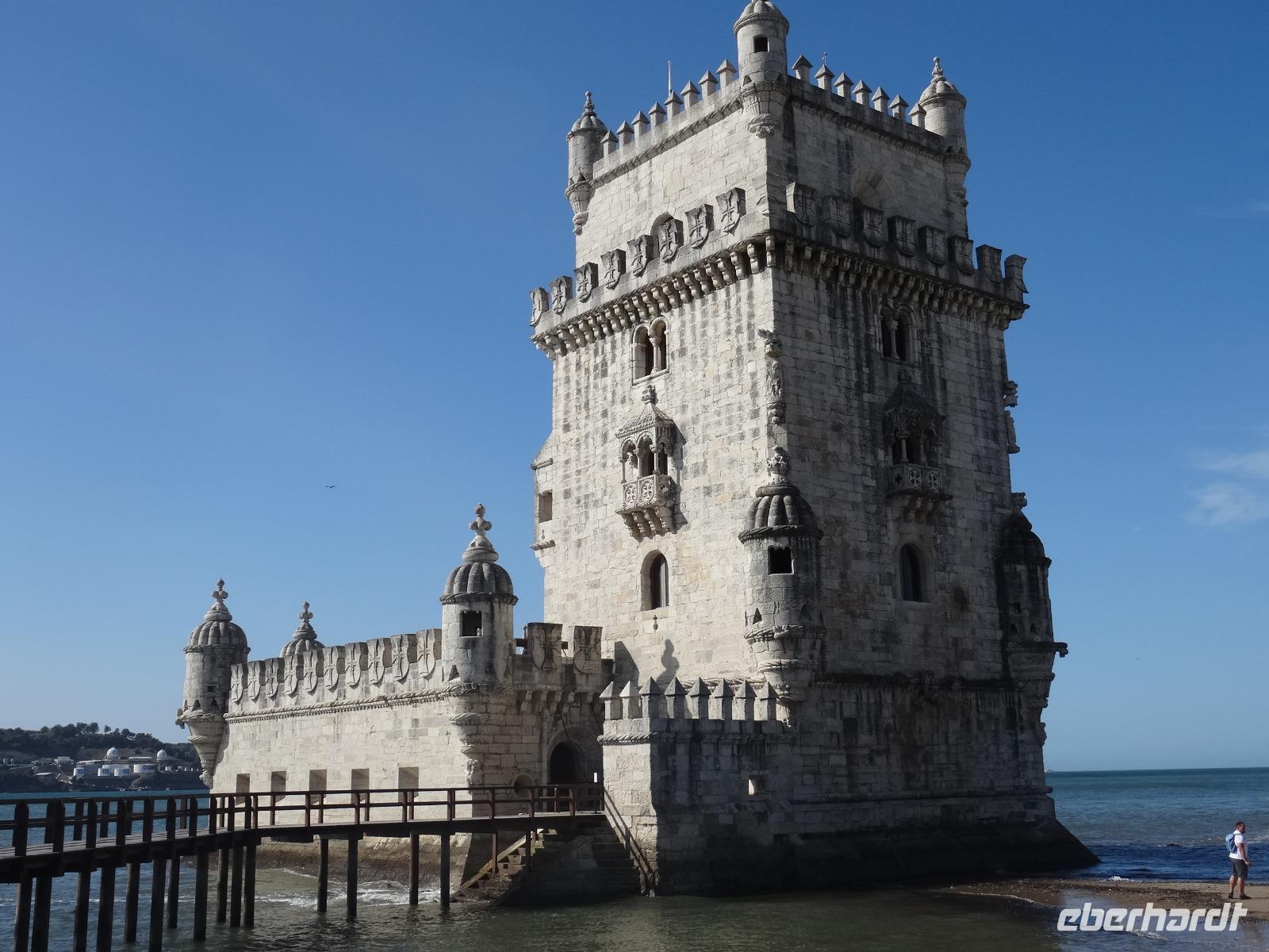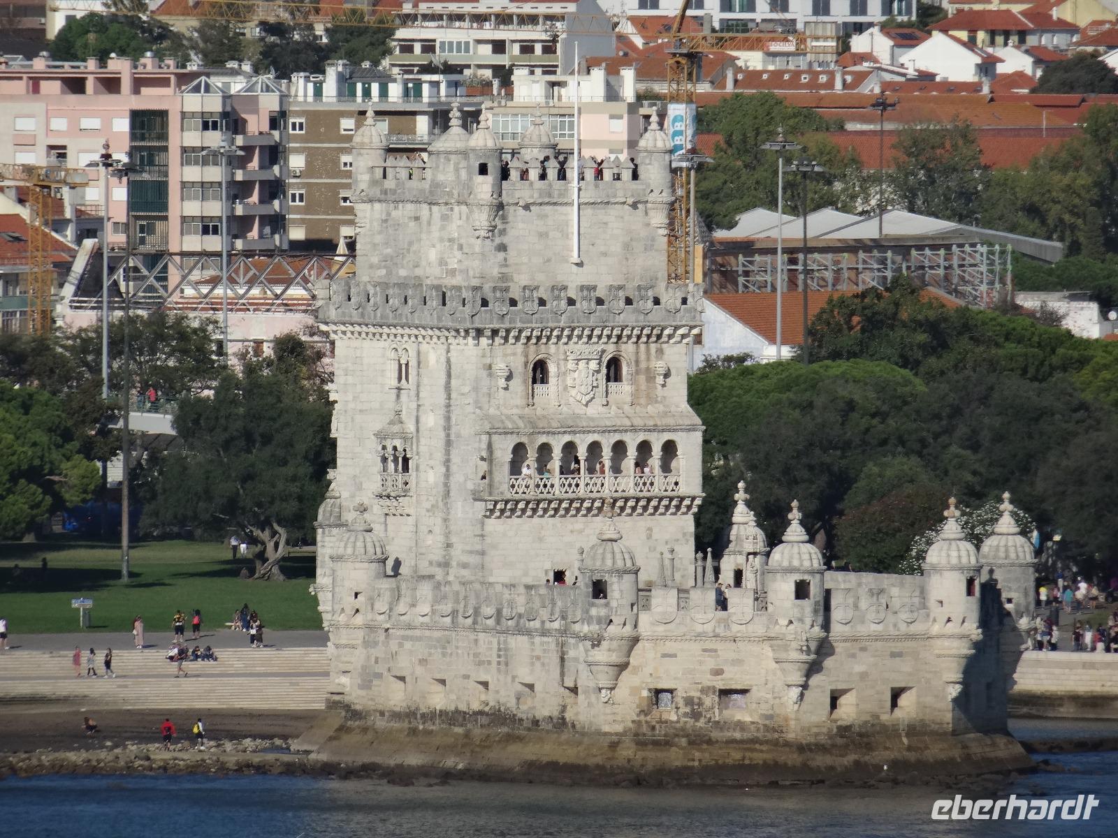Nächste Station war der Wachturm am Tejo - der Torre de Belem. Majestätisch erhebt sich das Bauwerk am rechten Ufer. Diese Hafenfestung bewachte früher die Einfahrt in den Hafen. Kaum vorstellbar, dass der Turm früher mitten im Fluss stand.
