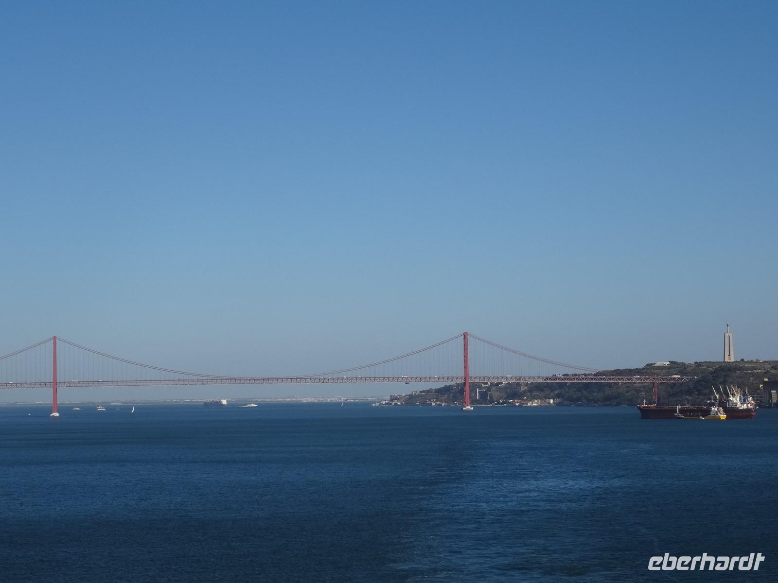 Das Auslaufen am Nachmittag wurde neben uns von vielen Passagieren bei Kaiserwetter live auf den Außendecks verfolgt. Wir passierten die bekannte Brücke des 25. April - ein Hauch von San Francisco war zu spüren- und auf der gegenüberliegenden Uferseite grüßte die Christus-Statue. Das war "rischtsch ee bissl scheeen", wie wir Sachsen sagen...