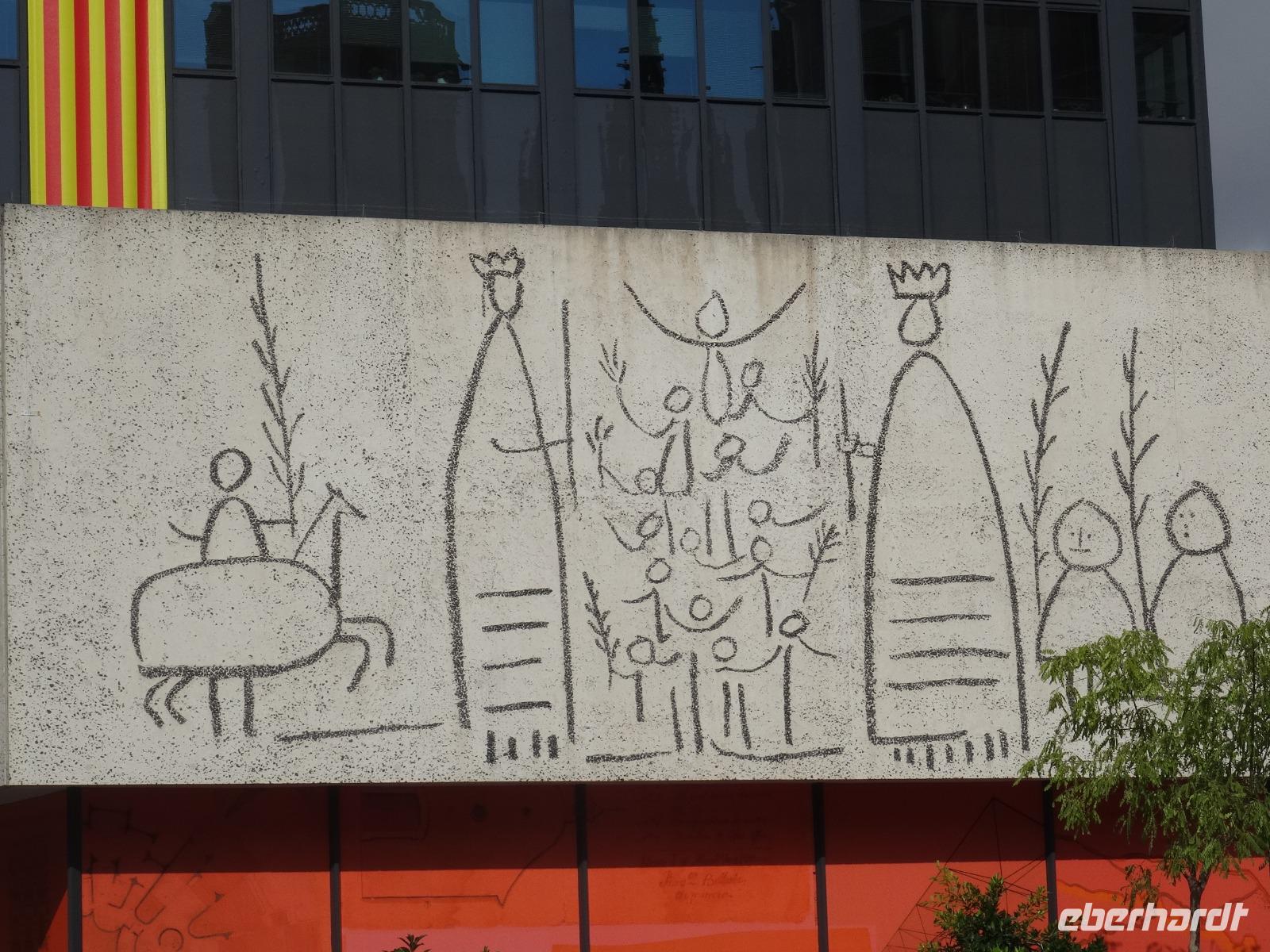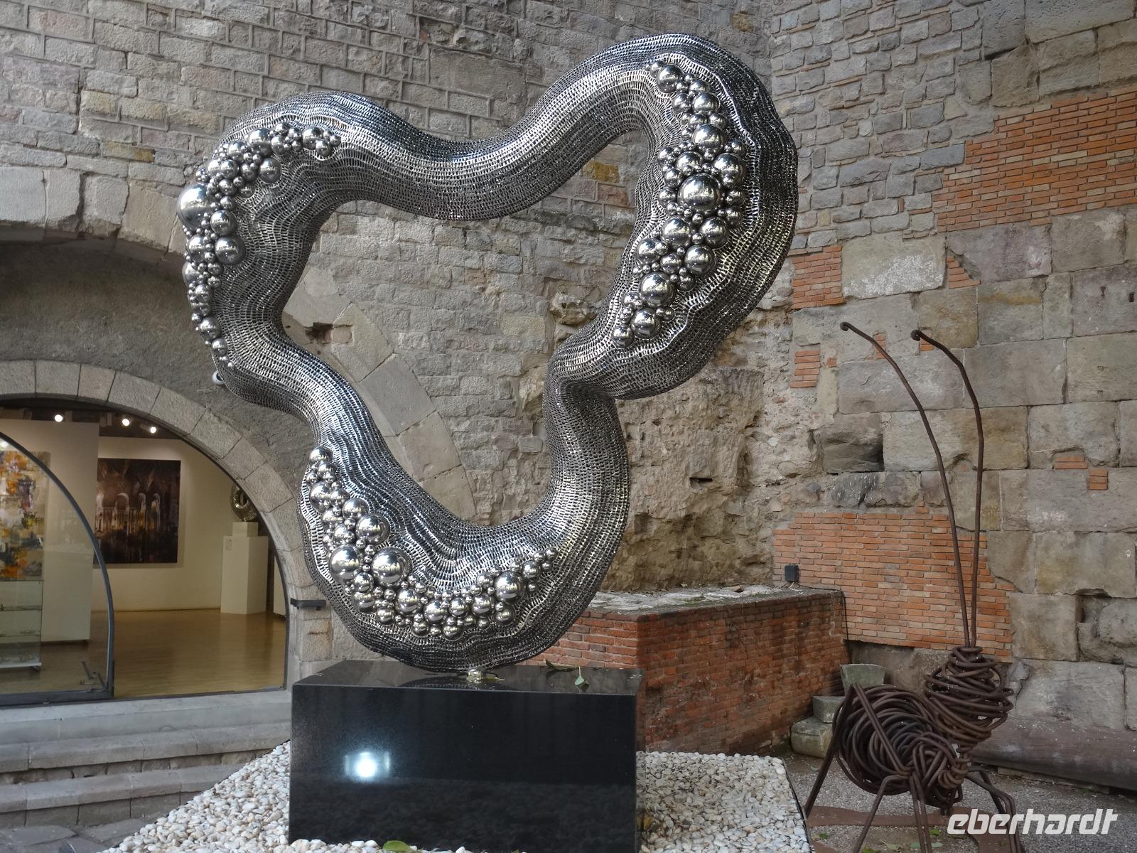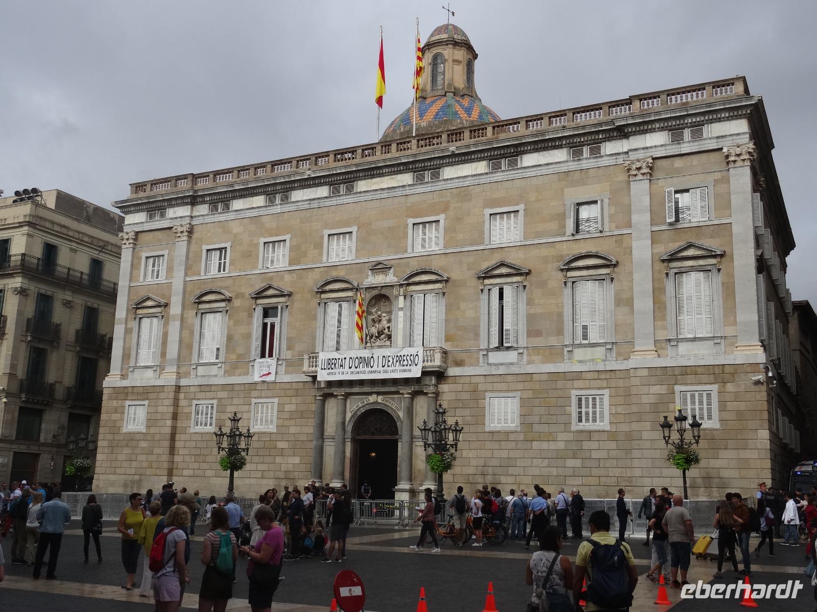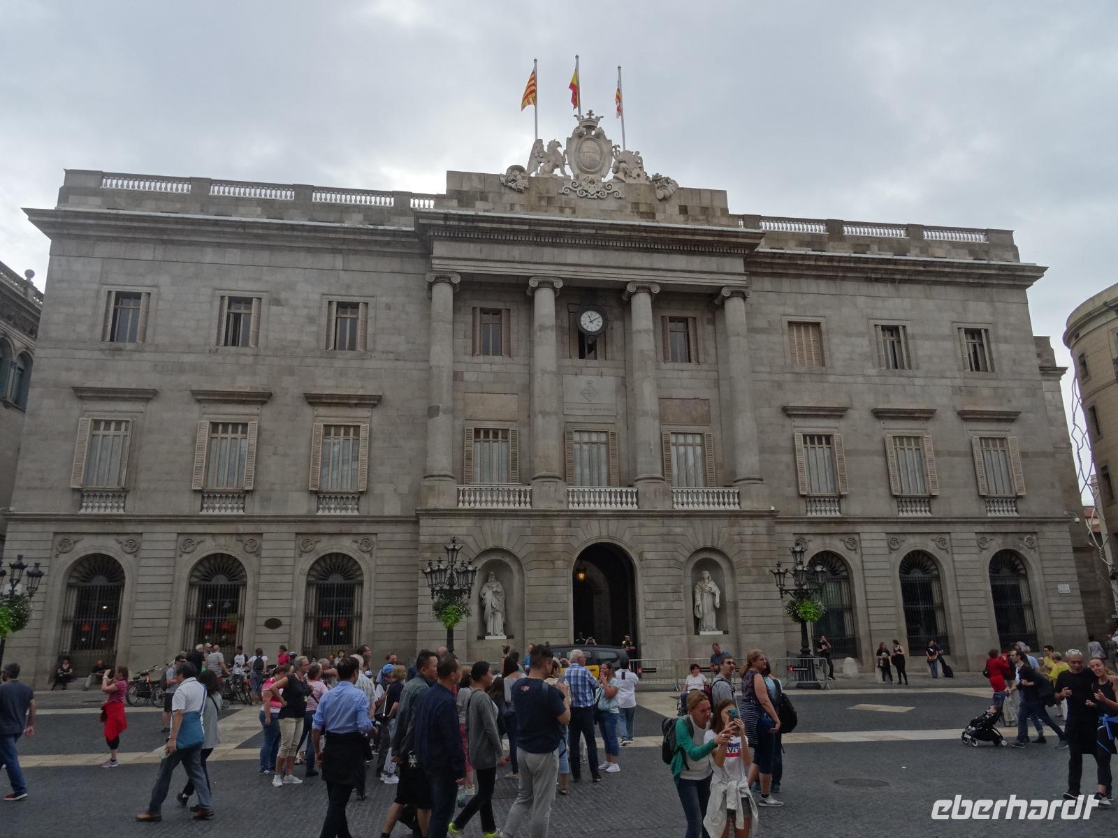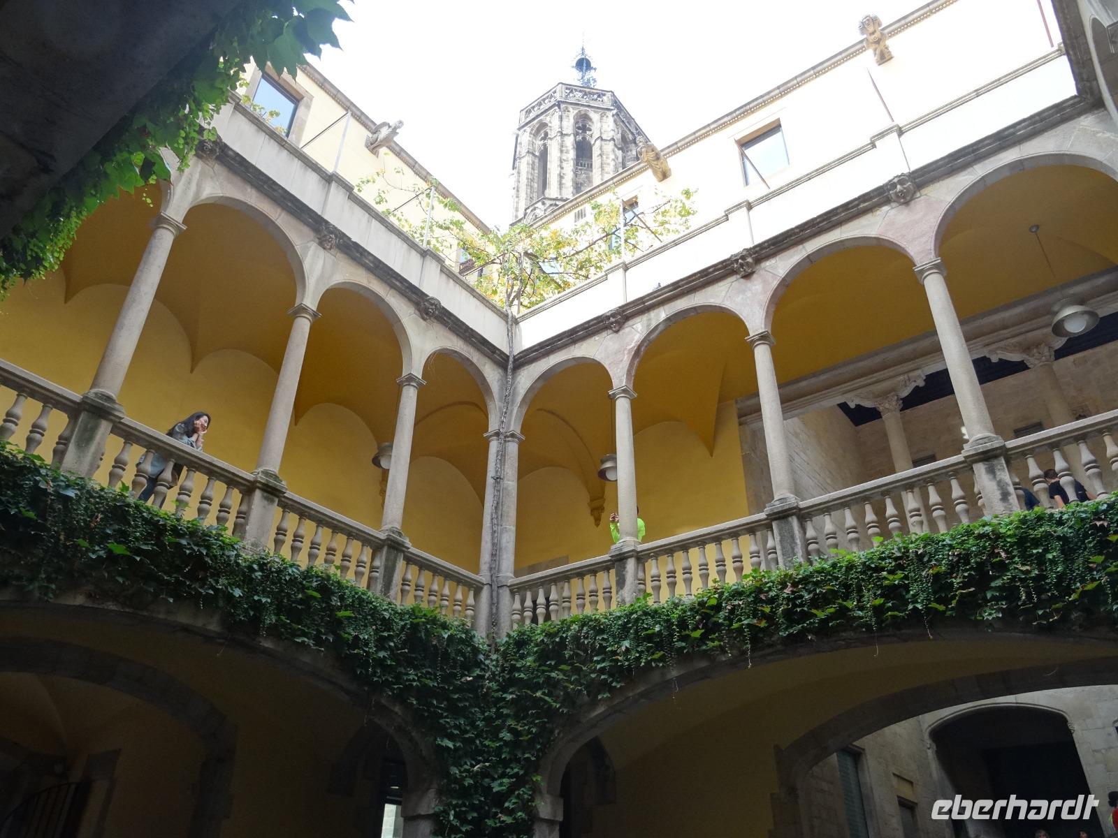 Im Anschluss spazierten wir durch das gotische Viertel = Barri Gotic, dem Kern des alten Barcelonas. Wir liefen vorbei am Ajuntament, seit 1372 Rathaus der Stadt und erreichten in der Folge den ehemaligen Königspalast. Hier soll Kolumbus nach seiner Rückkehr aus Amerika von König Ferdinand und seiner Gemahlin empfangen wurden sein.