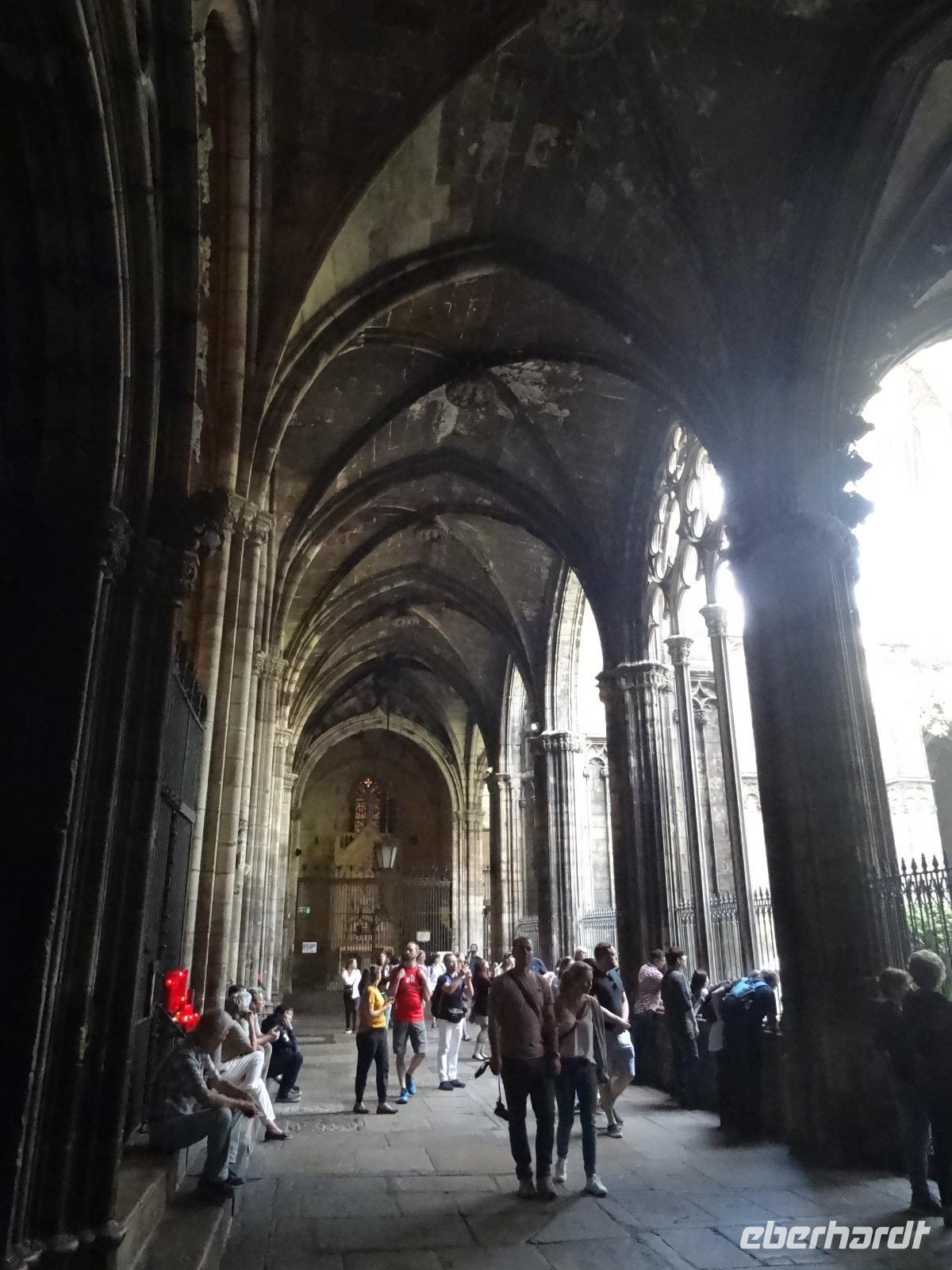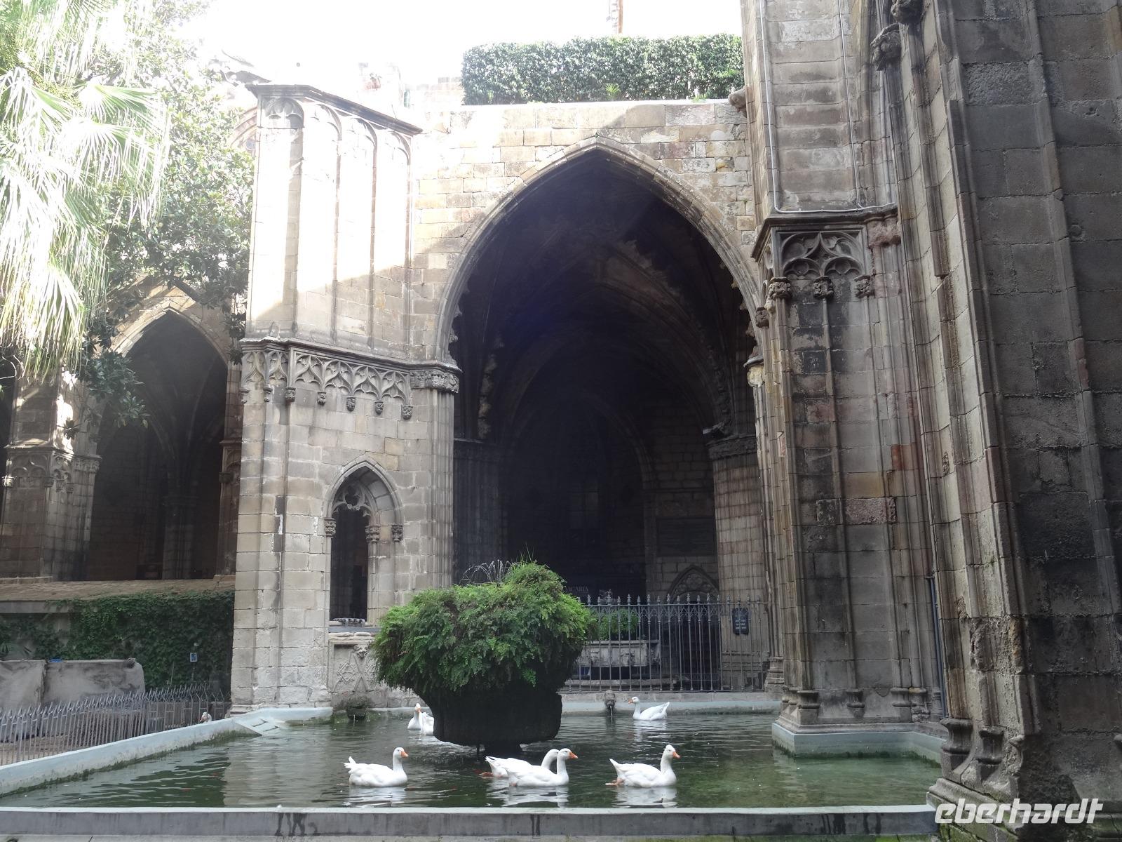Ziel unseres Spaziergang war die Kathedrale des heiligen Kreuzes. Sie wurde von 1298 bis 1454 erbaut. Wir schauten uns dazu den einzigartigen Kreuzgang mit Palmen, Orangenbäumen und den 13 schnatternden Gänsen zu Ehren der heiligen Eulalia an.