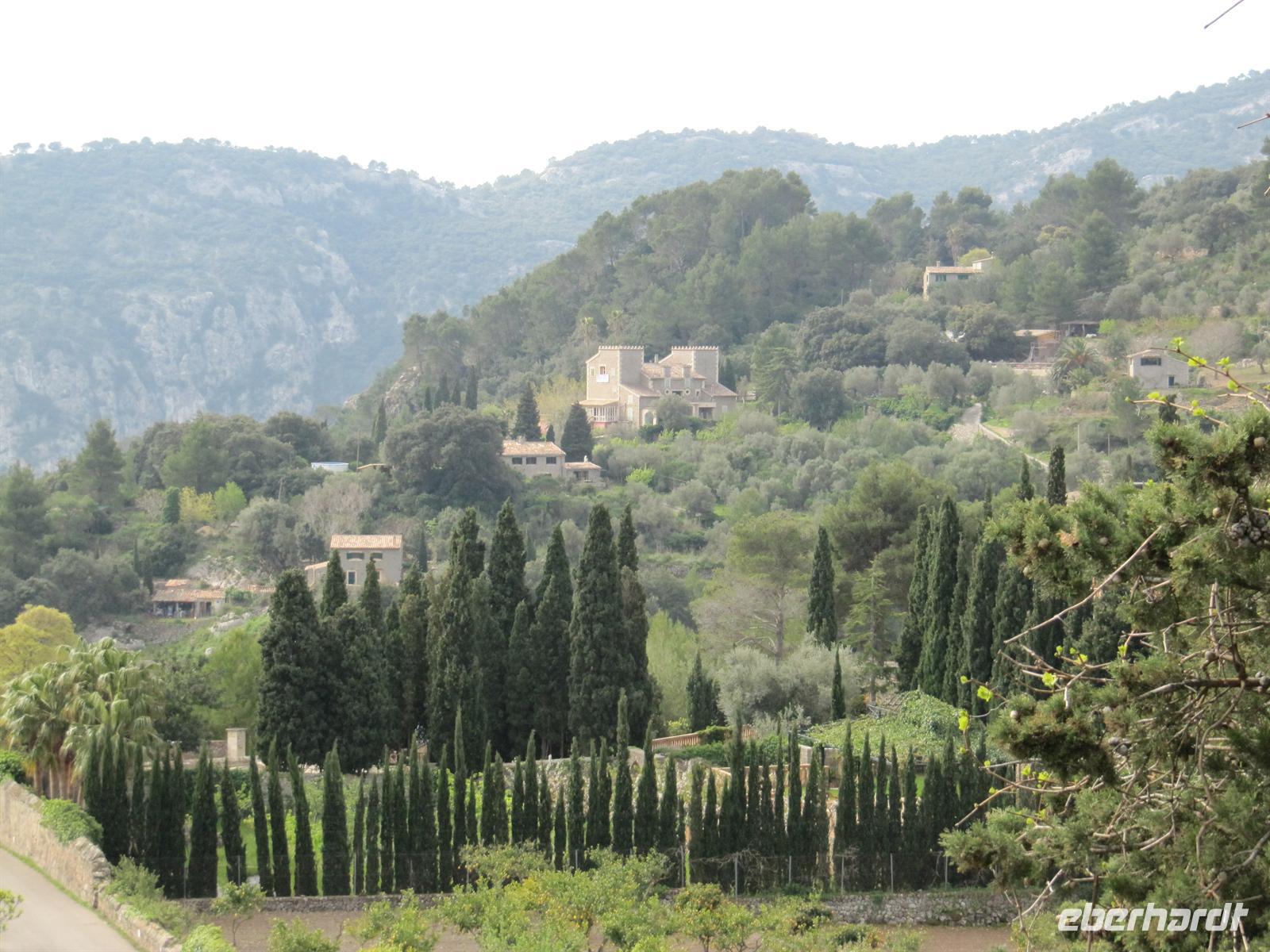 Nach dem ausgiebigen und prickelnd-fröhlichen Sektfrühstück im Hotel holen uns unsere mallorquinische Reiseleiterin Magdalena und unser Chauffeur Toni ab, um uns die landschaftlichen Schönheiten Westmallorcas zu zeigen. Die Sonne lacht vom strahlend blauen Himmel - bestes Wetter für einen spannenden Ausflugstag. Der Weg führt uns vorbei an grünen Mandelbäumen, Lavendelsträuchern und knorrigen Olivenbäumen bis hinein ins Tramuntana-Gebirge. Nicht zu vergessen der lila blühende „Liebesbaum“, der uns immer wieder begegnet! Unser erstes Ziel ist das malerische Bergdorf Valldemossa. Wir wandeln auf den Spuren des berühmten Komponisten Frederic Chopin und George Sand durch die engen, verwinkelten Gässchen. Die Fassaden sind liebevoll mit Pflanzen und Blumen dekoriert. Uns fällt auf, dass an fast jedem Hauseingang eine Kachel mit dem ähnlichen Motiv zu finden ist - es ist die Abbildung der heiligen Catalina Tomàs, der Schutzpatronin des Dorfes. Ein Muss ist in Valldemossa eine heiße Schokolade und Kartoffelkuchen - am besten genießt man das in einem der schmucken Innenhöfe unter Orangen- und Zitronenbäumchen. Lecker! Wer dieses Dorf nicht besucht hat, hat das wahre Mallorca nicht gesehen.
