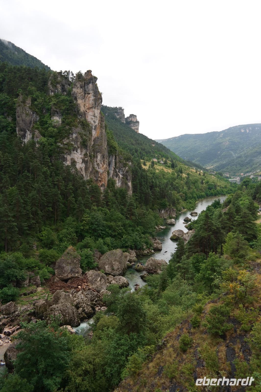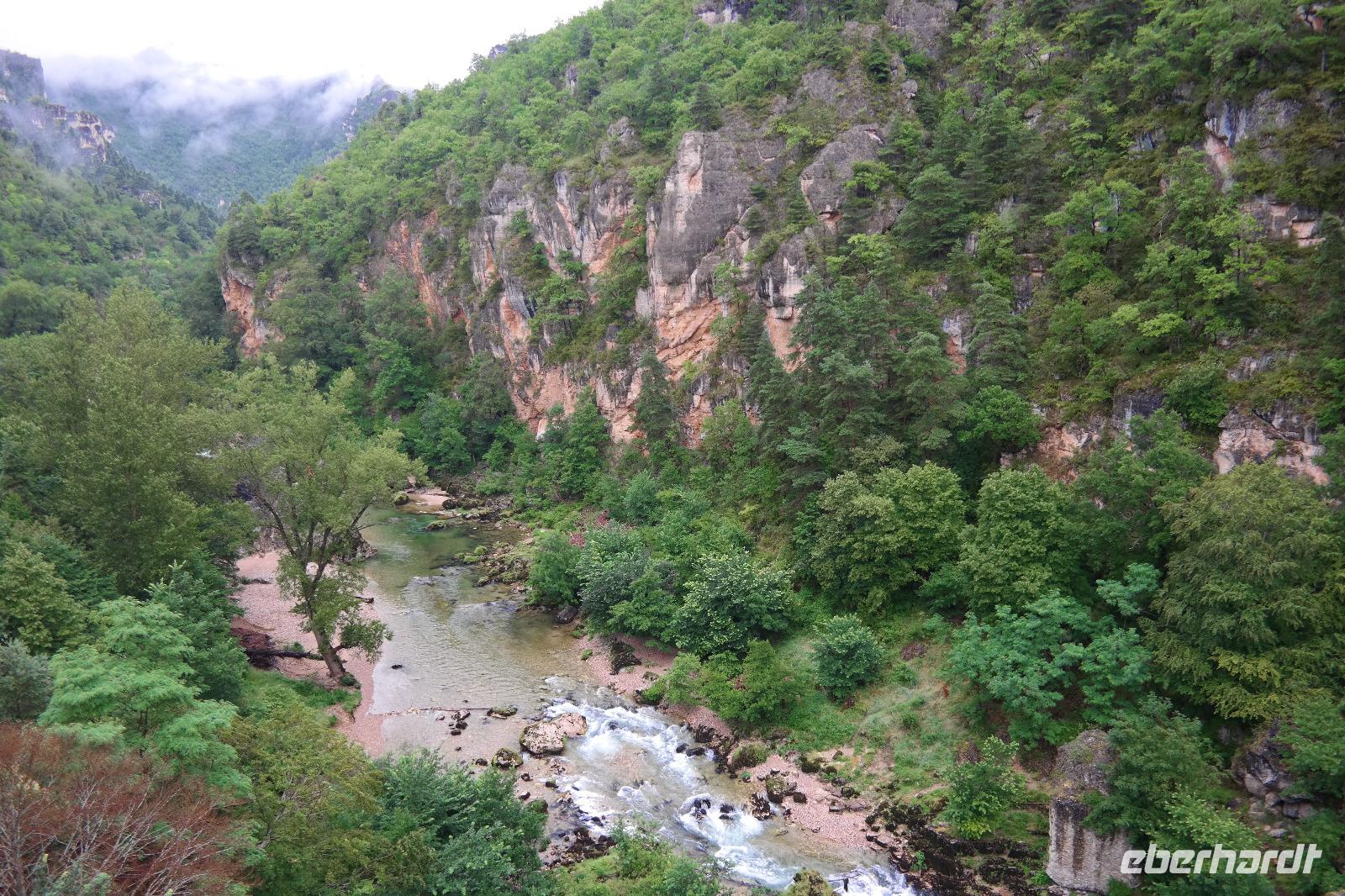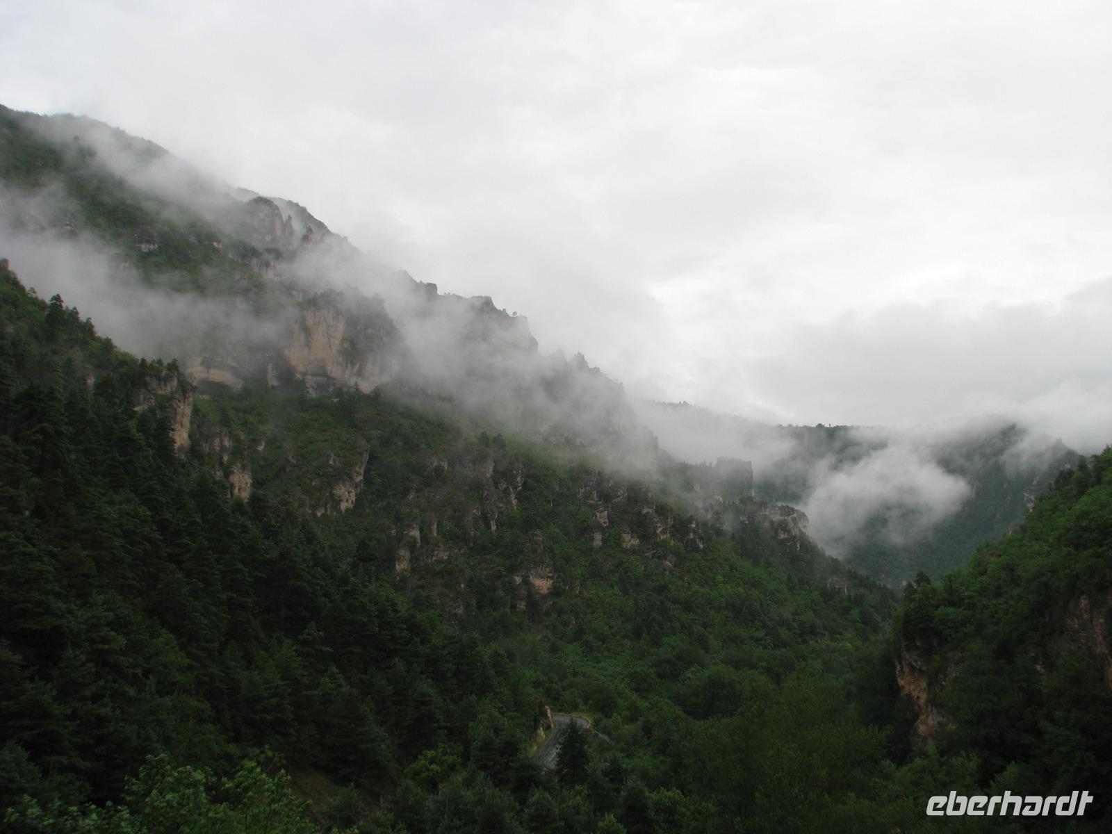 Heute steht die Natur und die Architektur im Mittelpunkt. Der Sommer scheint nun wirklich eine Verschnaufpause einlegen zu wollen. Doch für unsere Fahrt entlang der Tarnschlucht erweist sich der Wechsel aus Regen, Wolken und Sonne geradezu als ein dramaturgischer Geniestreich. Aufziehende Wolken unterstreichen die gewaltige Naturschönheit und Schroffheit der Felsformationen.