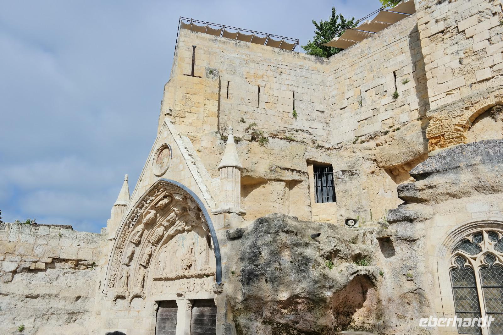 Als erste Station steuern wir St. Emilion an. Für die einen ein geschichtsträchtiges Städtchen, für Weinliebhaber ein Sehnsuchtsort. Die Weinreben rechts und links weisen uns den Weg. Beim Tourismusbüro treffen wir auf unsere junge Stadtführerin, die wortwörtlich die Schlüsselgewalt hat. Sie öffnet uns die Pforten, die uns tief in die Geschichte und zugleich in den Untergrund der Stadt führen. Denn die Grotte des Namenspatrons und die berühmte Felsenkirche befinden sich im Souterrain.