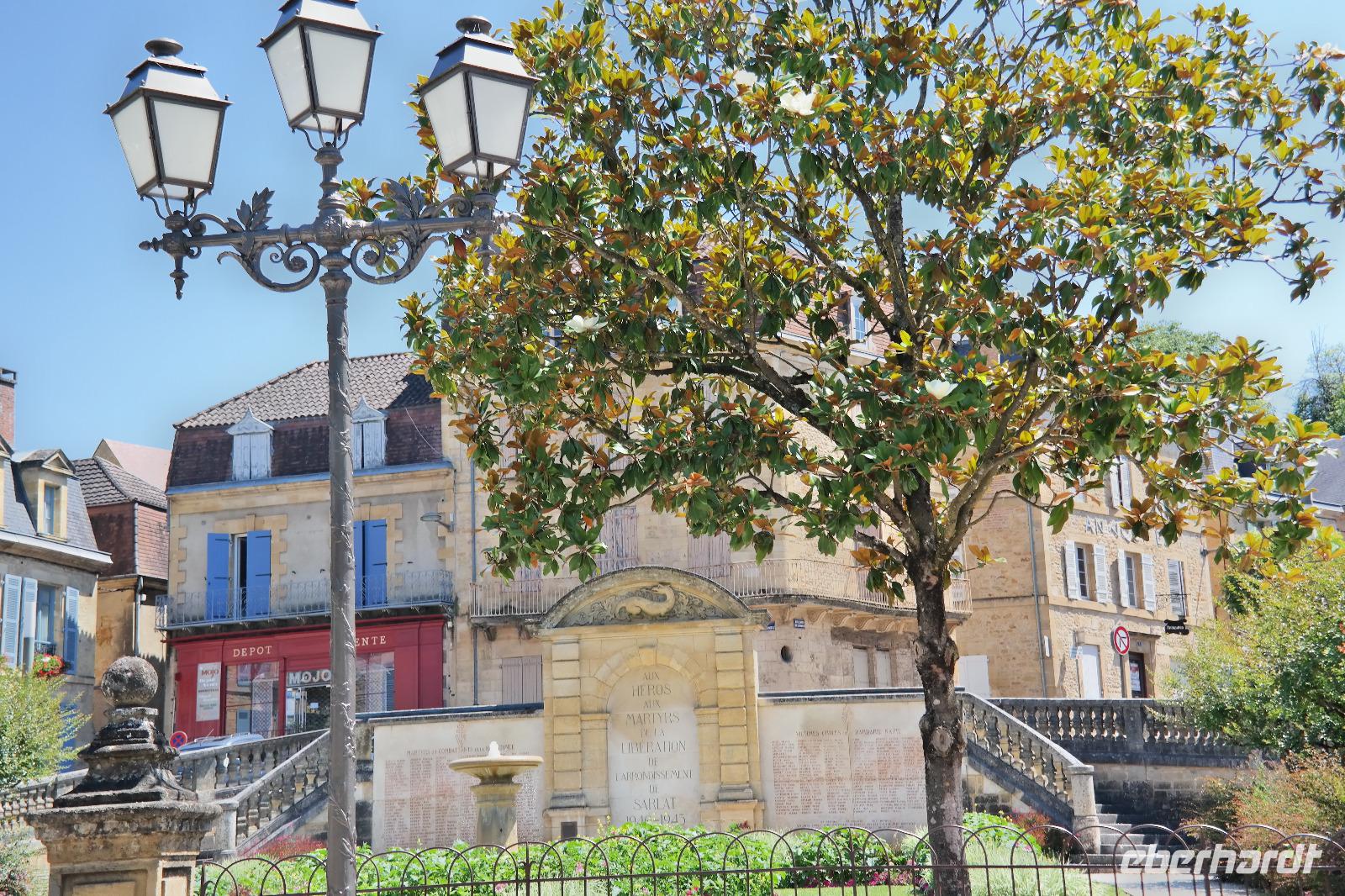 Mit unserem nächsten Ziel Sarlat-la-Canéda machen wir einen deutlichen Satz auf der Zeitachse in unsere Richtung, denn wir springen ins Mittelalter und in die Renaissance. Die mächtige Kathedrale, die prachtvollen Renaissance-Häuser und nicht zu vergessen die herrliche Markthalle, die einst Kirche war, beeindrucken nachhaltig. Das Flanieren durch die engen Gassen, in denen hier und da immer wieder Blicke in zauberhafte Höfe freigegeben werden, lassen uns sogar die Hitze vergessen. Bei einem erfrischenden Getränk werden wir Zeugen, wie sich das Städtchen auf des abendliche Endspiel der EM vorbereitet.