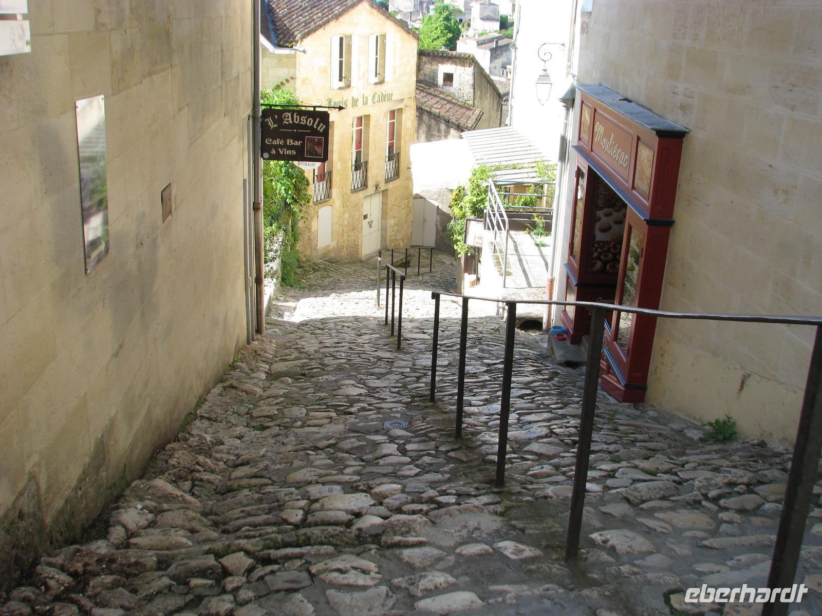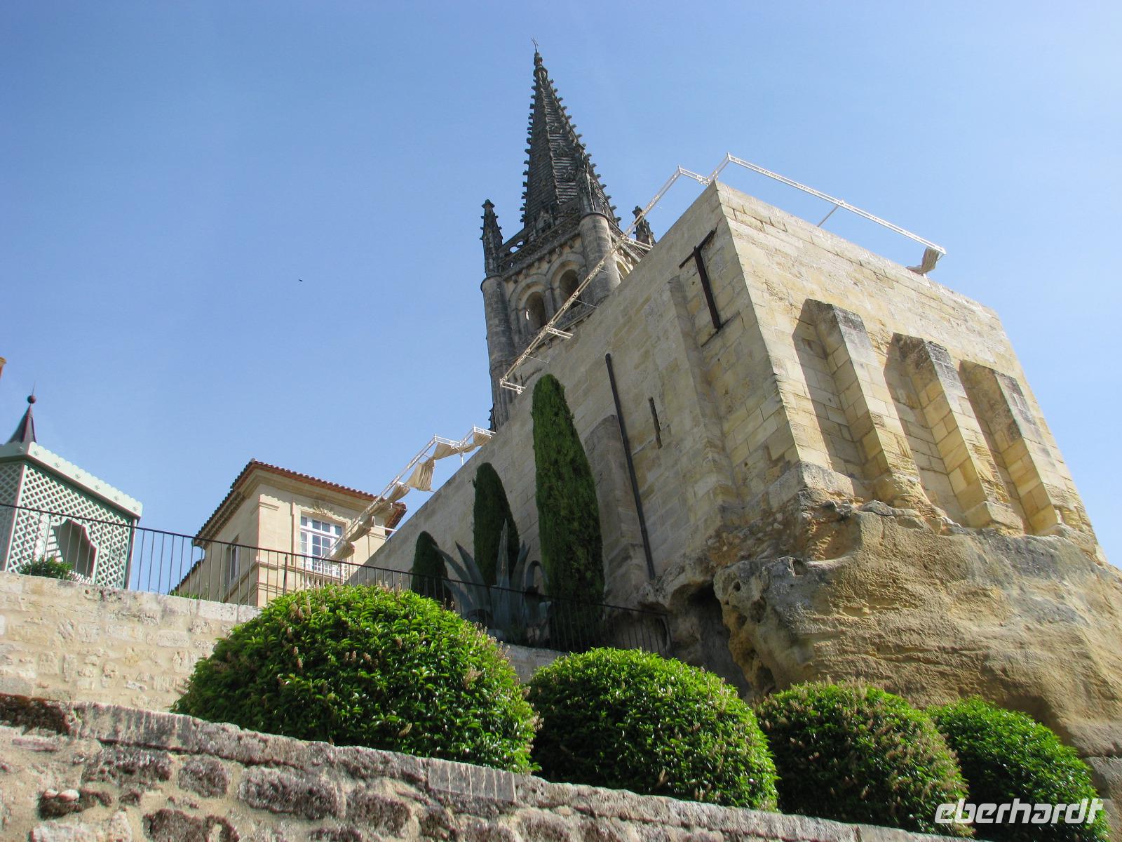 Nach dem Frühstück heißt es wieder Adieu sagen. Als erste Station steuern wir St. Emillion an. Wie kaum eine andere Stadt ist diese mit dem Wein verbunden. Und die Weinreben und die dazugehörigen Schlösser begleiten uns auf unserem Weg. Unsere Stadtführerin Sophie hat heute ihren ersten Tag und ein wenig aufgeregt ist sie schon, als ihr die Gruppe gegenübersteht. Aber sie ist nicht nur die Frau mit der Schlüsselgewalt, denn die Grotte des Heiligen Emillion sowie die Felsenkirche sind verschlossen und können nur mit einem Stadtführer besucht werden. Sie erzählt uns mit charmantem französischen Akzent Wissenswertes über diese Sehenswürdigkeiten. War es in der Felsenkirche noch ein wenig frisch, so empfangen uns draußen angenehme Temperaturen.