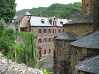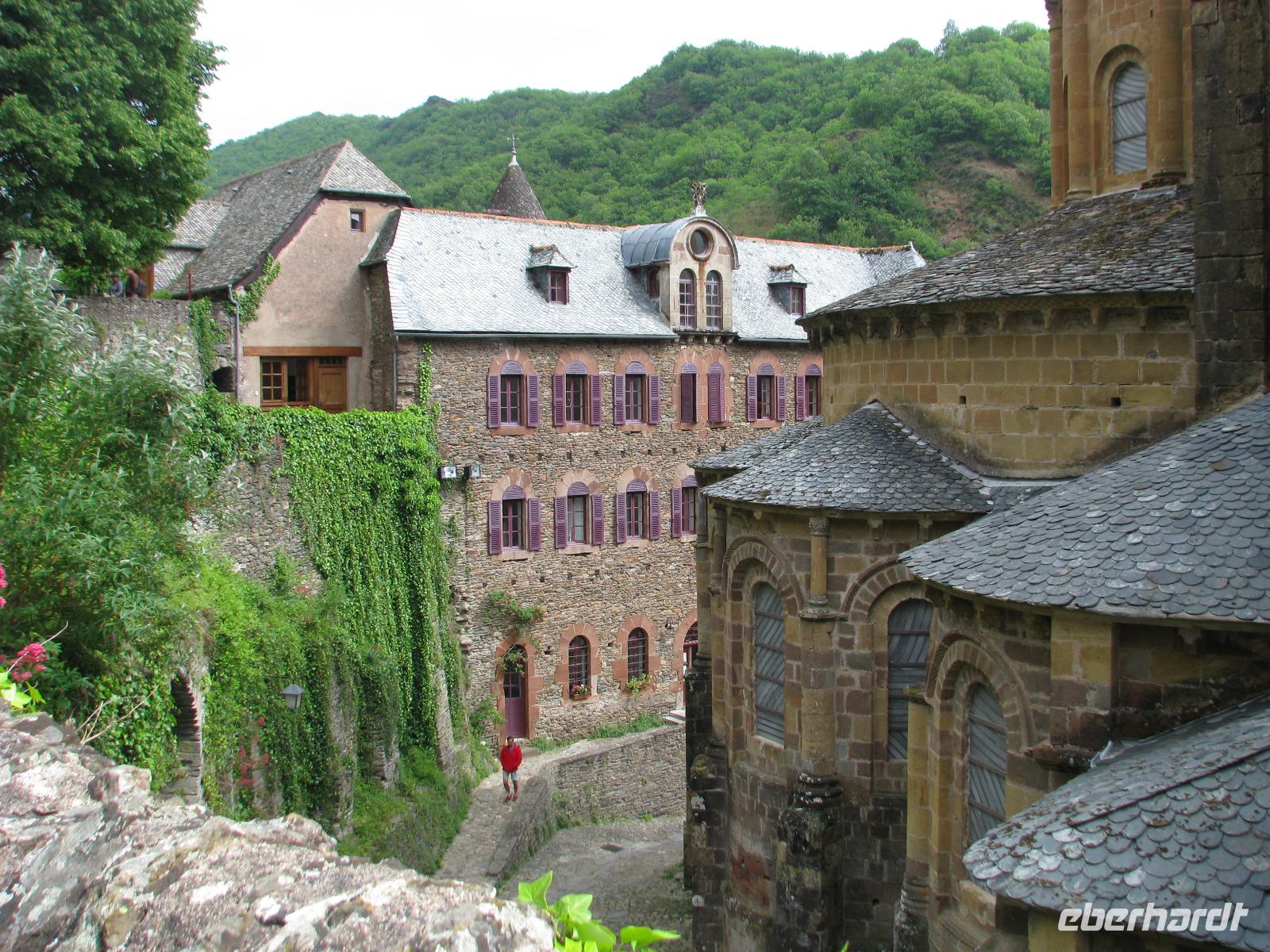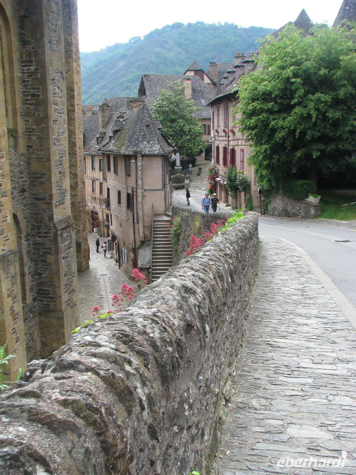Gestärkt und frohgelaunt, nehmen wir wieder Fahrt auf. Conques steht als nächstes auf unserem Programm. Geradezu verwunschen wirkt dieser Ort, der mit seinem außergewöhnlichen Tympanon Einblicke in den Glauben und die Weltsicht des Mittelalters bietet. Glücklicherweise wird gerade das Gerüst vor dem Eingang des Gotteshauses abgebaut und so bekommen wir freien Blick auf dieses herausragende Meisterwerk.