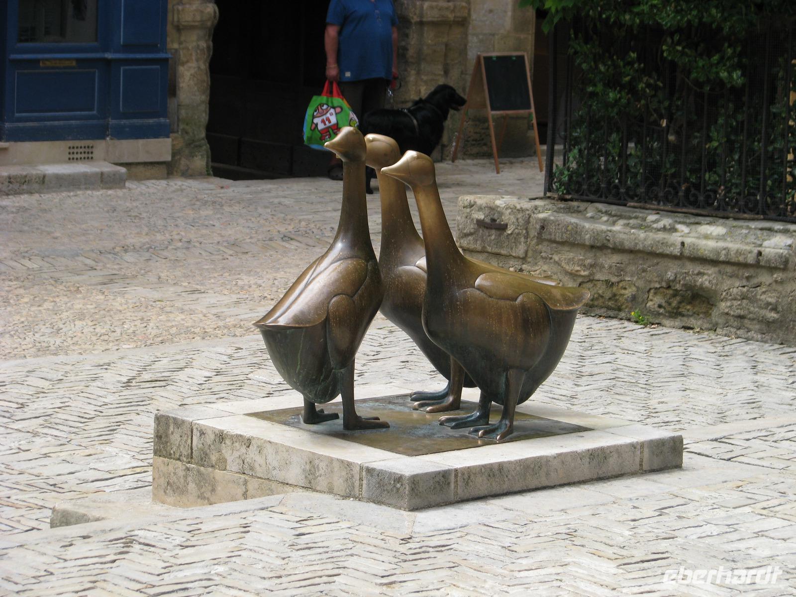 Das Dorf La Roque-Gageac, welches den Felsen an dem es klebt schon im Namen trägt, zählt zu den schönsten Orten Frankreichs. Hier besteigen wir eine Nachbildung der ehemaligen Lastkähne und erleben die Landschaft bei erfrischendem Fahrtwind. Auf unserer Rückfahrt zum Hotel müssen wir wegen einer Straßensperrung einen Umweg fahren. Doch das ficht uns nicht an, denn wir haben Fans von "Bruno" an Bord. Sehr zu deren Freude fahren wir durch den Wohnort des Krimiautors Martin Walkers hindurch.