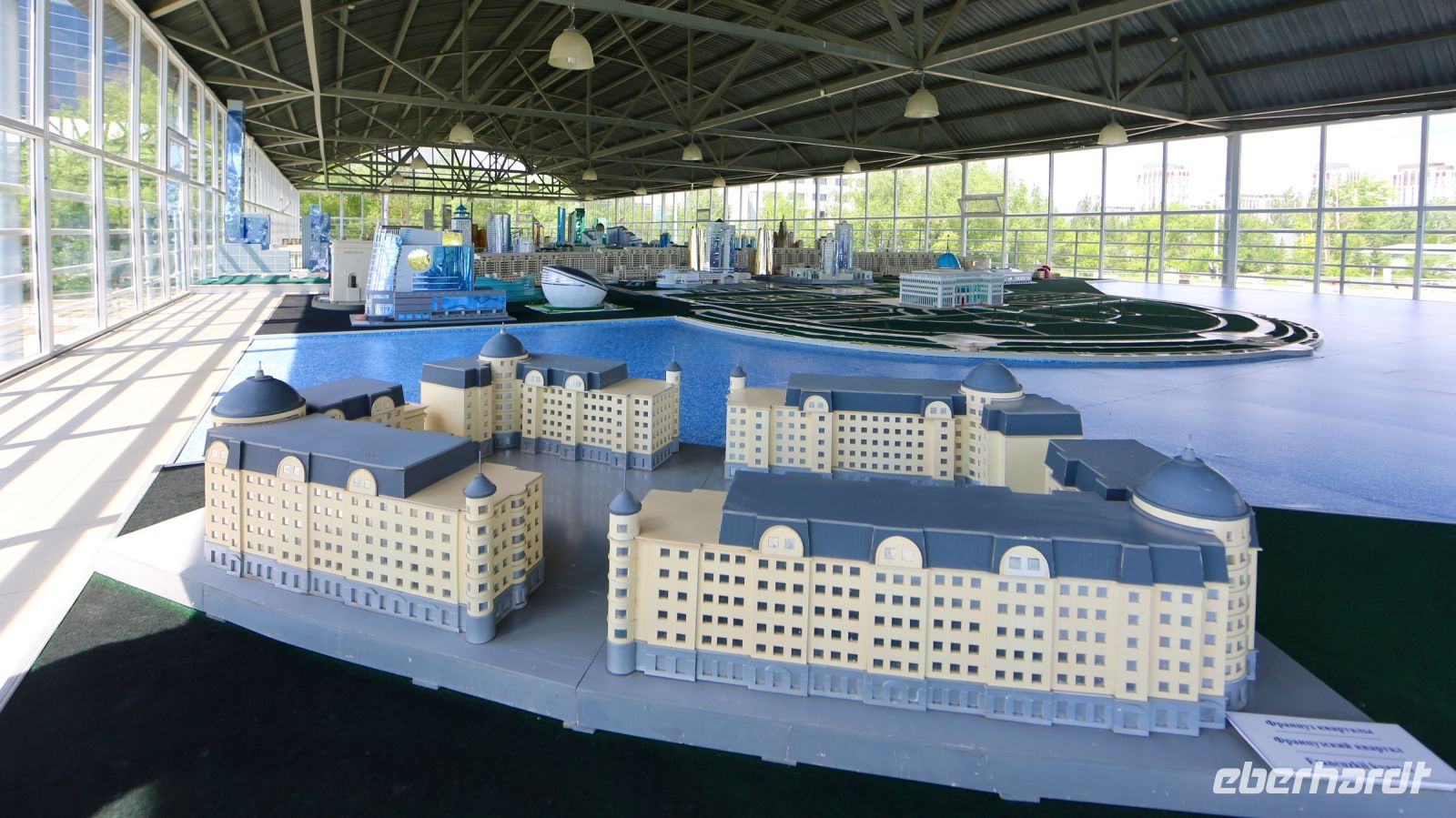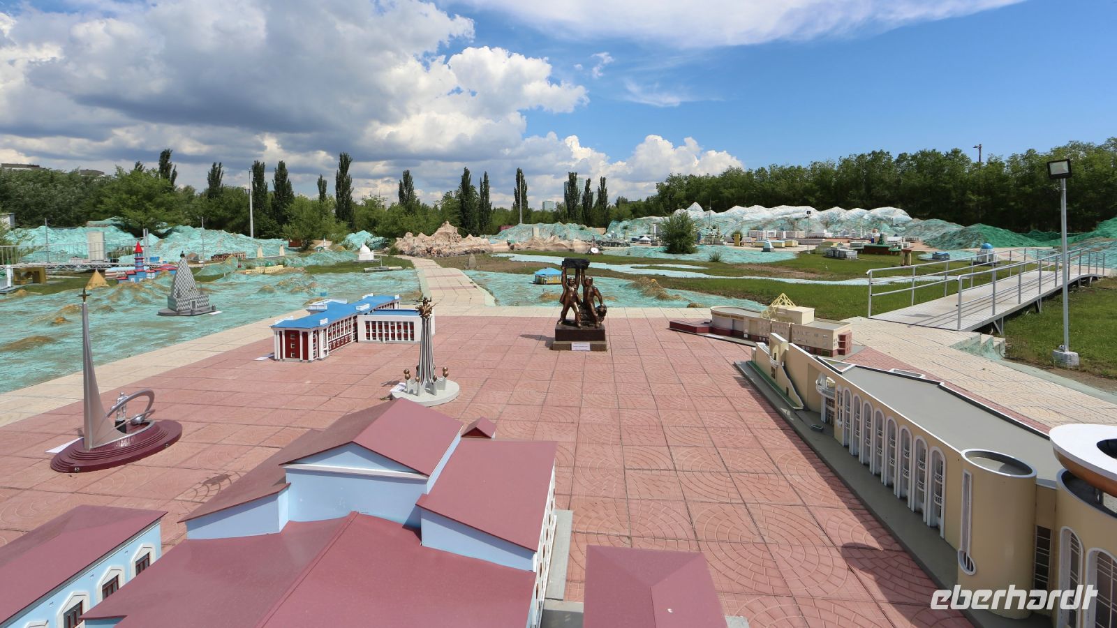 Dana spricht Kasachisch und Russisch, die beiden Amtssprachen des Landes. Daher wird von Lena übersetzt. Erstes Ziel, eine Wechselstube, die wir auch im zweiten, sonntäglichen Anlauf finden und uns dort für die nächsten Tage ausstatten. Erster Besichtigungspunkt, das Freilichtmuseum Atameken, ein maßstäbliches Miniaturmodel des Landes und seiner Hauptstadt auf einer Fläche von knapp zwei Hektar. Es gibt uns einen guten Überblick zum Land und einen Ausblick auf das Kommende in den folgenden Tagen.