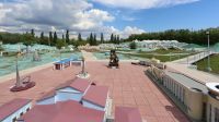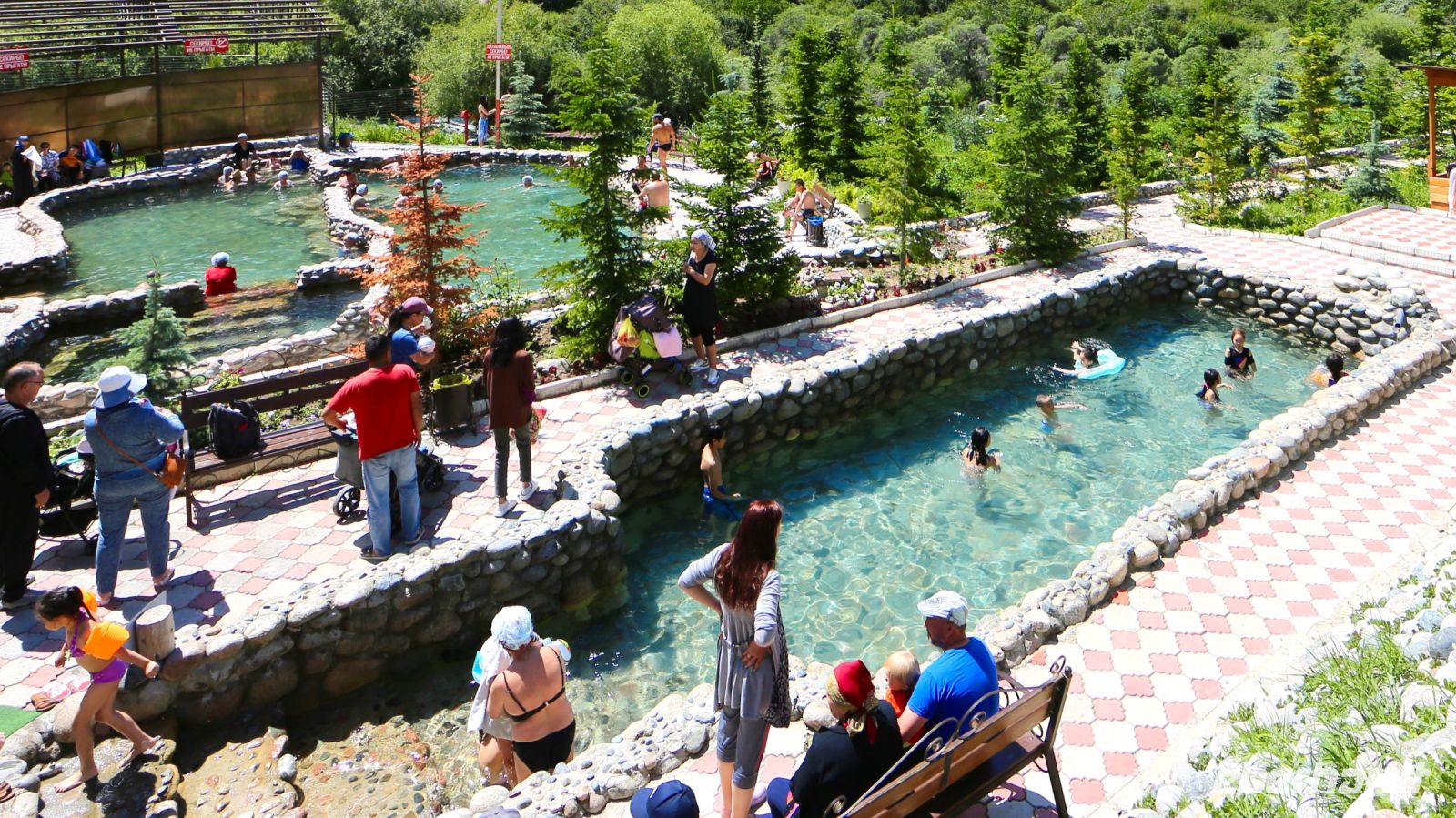 Am frühen Nachmittag brechen wir auf ins Nationalparkgebiet. Ziel sind die Thermalquellen. Wir fahren mit einem kleinen Bus, um besser ins Gebirge zu kommen. Die Fahrt führt am Gebirgszug entlang, wir passieren Felder und Siedlungen und sind sehr bald an einer der Quellen. Wir sind nicht die einzigen. Groß und Klein tummelt sich in den verschiedenen, nicht allzu großen Becken. Mit knapp 50 Grad ist das erstgespeiste das heißeste. Es ist fast nie besetzt. Die anderen erfreuen sich größerer Beliebtheit. Wer möchte kann sich auch im Wasser des benachbarten Gebirgsbaches abkühlen. Nur bis zu einer Stunde am Stück soll man sich im radonhaltigen Nass wässern. Wir halten uns daran. Einige wandern lieber ein kleines Stück im malerischen Tal. Nach dem Bade unternehmen wir noch einen Abstecher in ein benachbartes Tal. Unser Kleinbus kämpft sich wacker durch das schwere Gelände. Hirten und die von ihnen beaufsichtigten Schafe bestimmen hier den Verkehr. Wir begeben uns noch auf einen kurzen Spaziergang und fahren dann zurück in die Stadt.