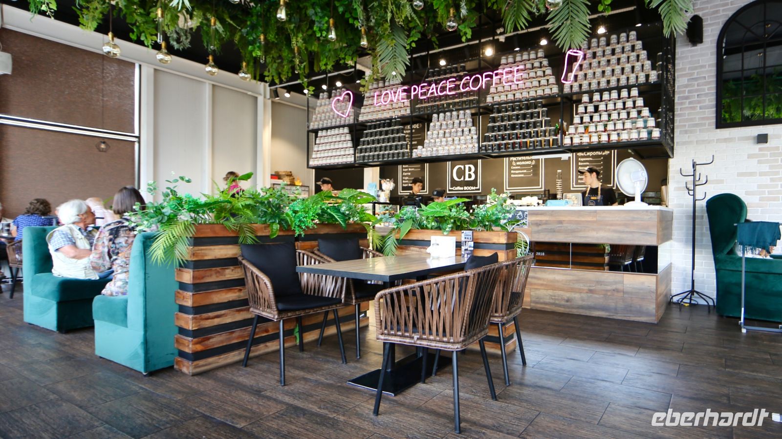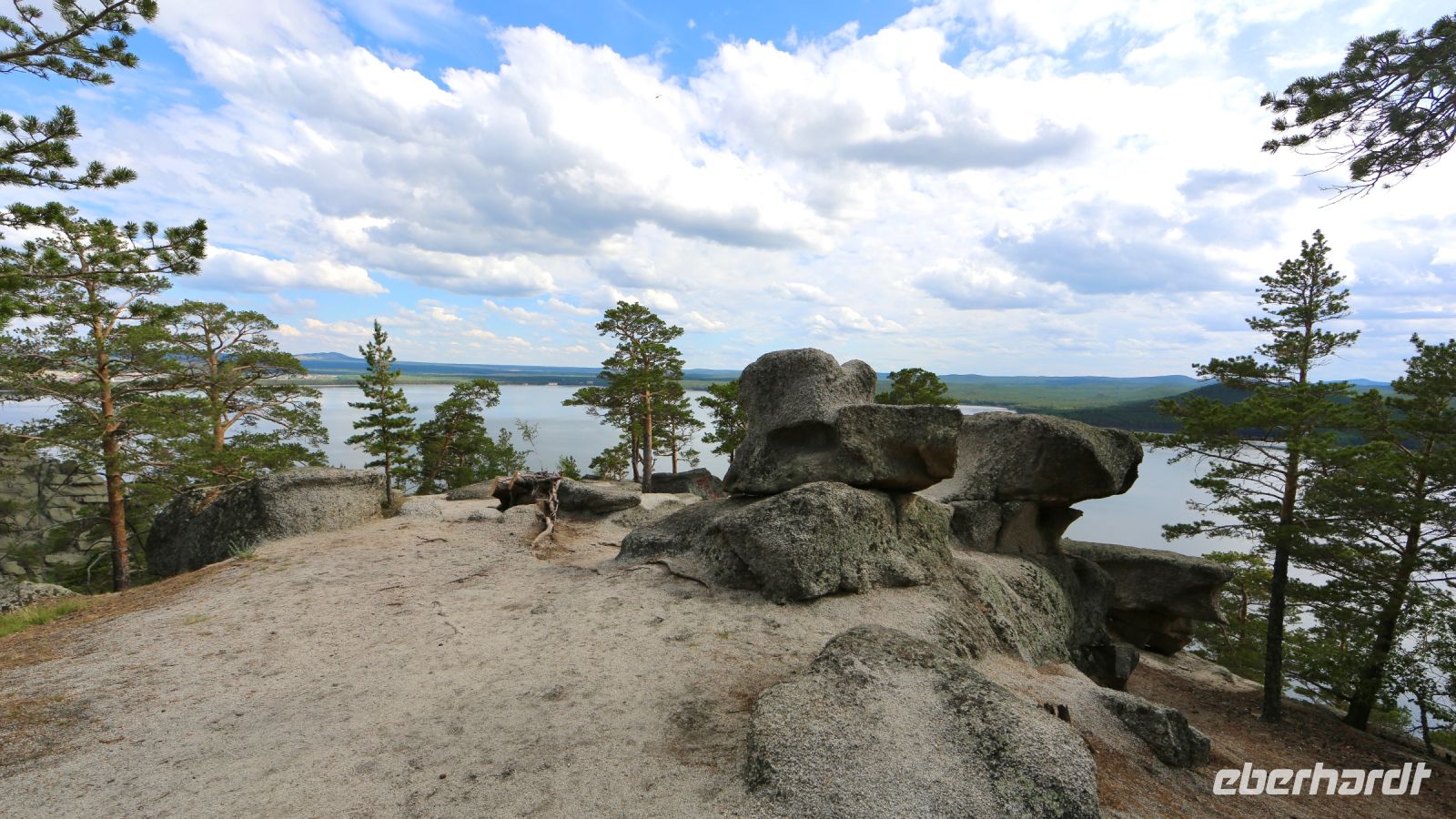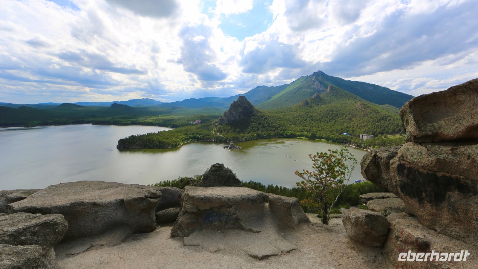 Die Steppe ist einem dichten Kiefernwald, Felsen und Seen gewichen. Eine Landschaft in welche ursprünglich vorzugsweise Gäste aus Russland, aus dem Ural zu Erholungs- und Kuraufenthalten kamen. Die Kuraufenthalte sind geblieben. Inzwischen kommen auch viele Kasachen. Im Hauptort Burabaj machen wir auf der Terrasse eines örtlichen Restaurants Mittagspause. Die Stimmung ist gut, das Essen schmeckt, die Bedienung sehr bemüht, jedoch nicht immer erfolgreich dabei.