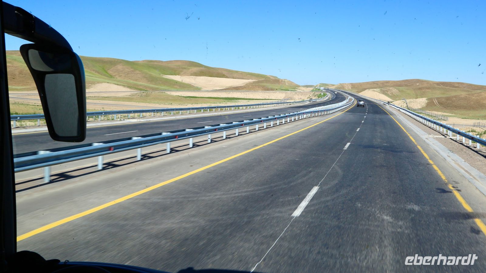 Wir haben uns bereits ein wenig akklimatisiert und können den Tag früher beginnen. Um 9:00 Uhr fahren wir ab in Richtung Nationalpark Burabai. In Deutschland ist es da gerade einmal 05:00 Uhr. Vier Stunden beträgt der Unterschied zur Mitteleuropäischen Sommerzeit. "Fünf Stunden Fahrt", stimmt uns Wladimir, unser Fahrer, auf die Tour ein. Am Ende werden es etwas mehr als vier. Die meiste Zeit hatte er für das Verlassen der Stadt und damit mögliche Staus eingeplant. Auf der Autobahn kommen wir dann schnell voran. Sie ist zur Überraschung hervorragend ausgebaut und so gut wie unbefahren.