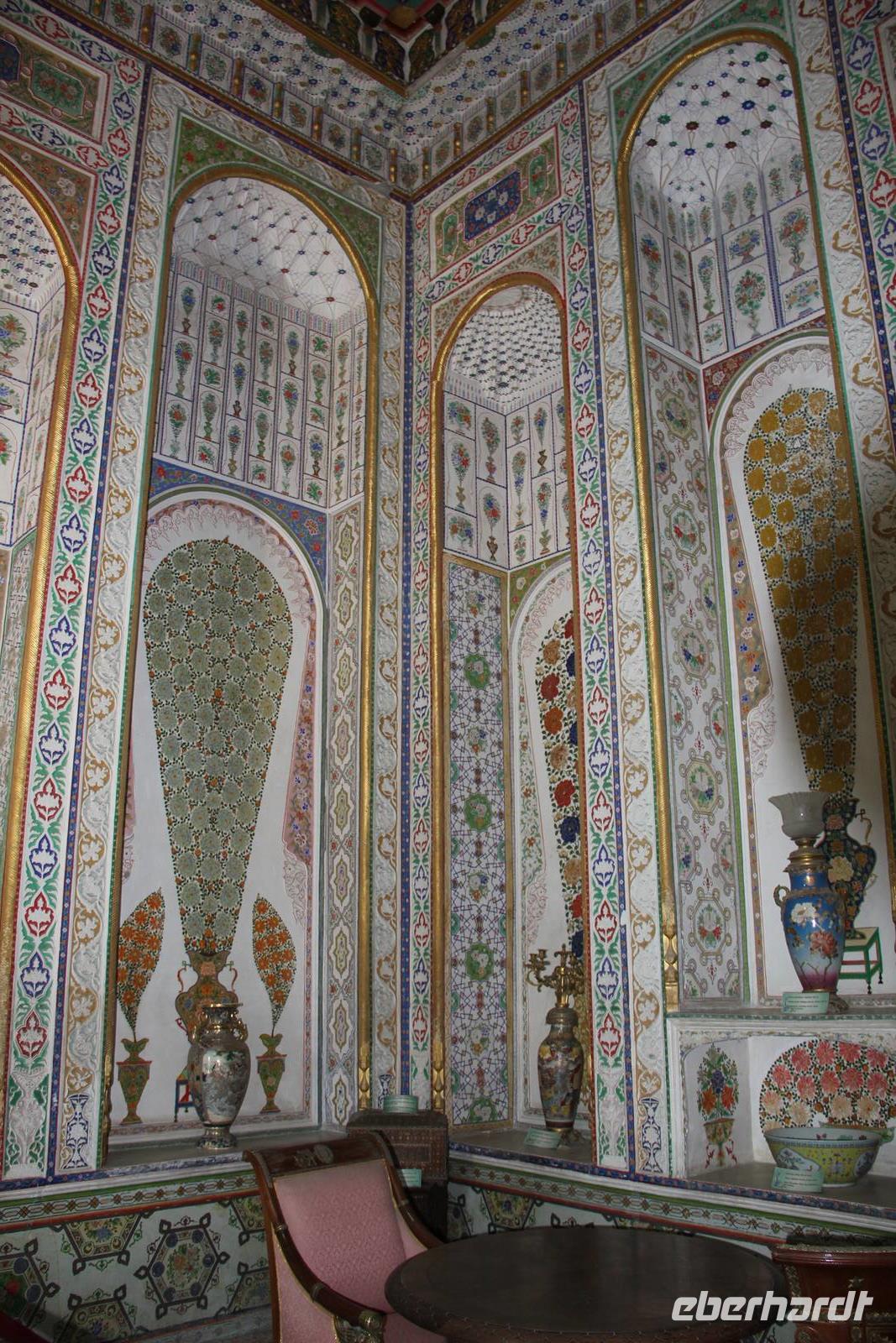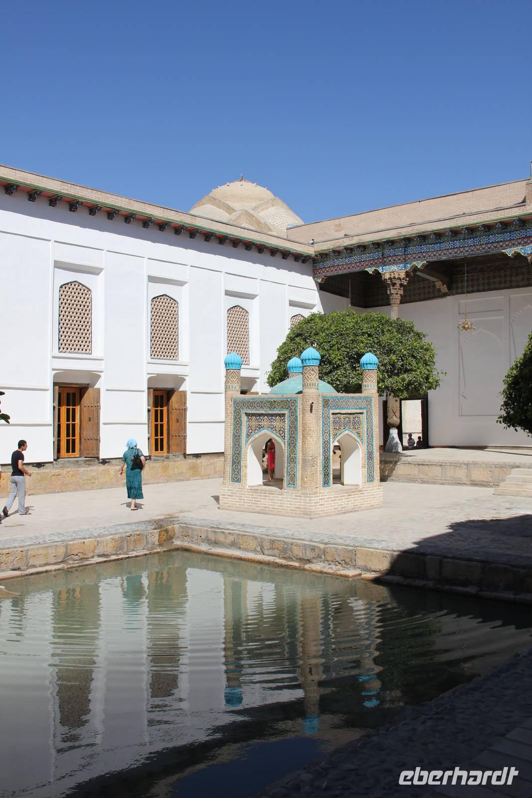 Heute wurde die Umgebung von Buchara erkundet. Dabei wurden der Pilgerort für Moselms Naqshbandi, die ehemalige Nekropole Chor Bakhar, welche heute eine religiöse Stätte des Landes ist, sowie der Sommerpalast Sitorai Mokhi Khosa besichtigt.