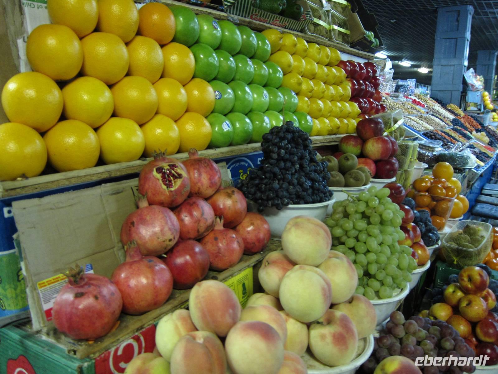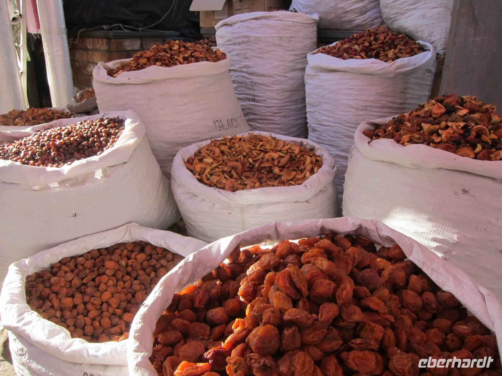 Am späten Nachmittag fuhren wir dann zum Osch Markt, dem Hauptbasar der Stadt. Hier gibt es, wie auch auf anderen Basaren, von Gewürzen über Obst und Gemüse, Blumen, Fleisch und Fisch bis hin zu Hygiene- und Kosmetikartikeln alles zu kaufen.