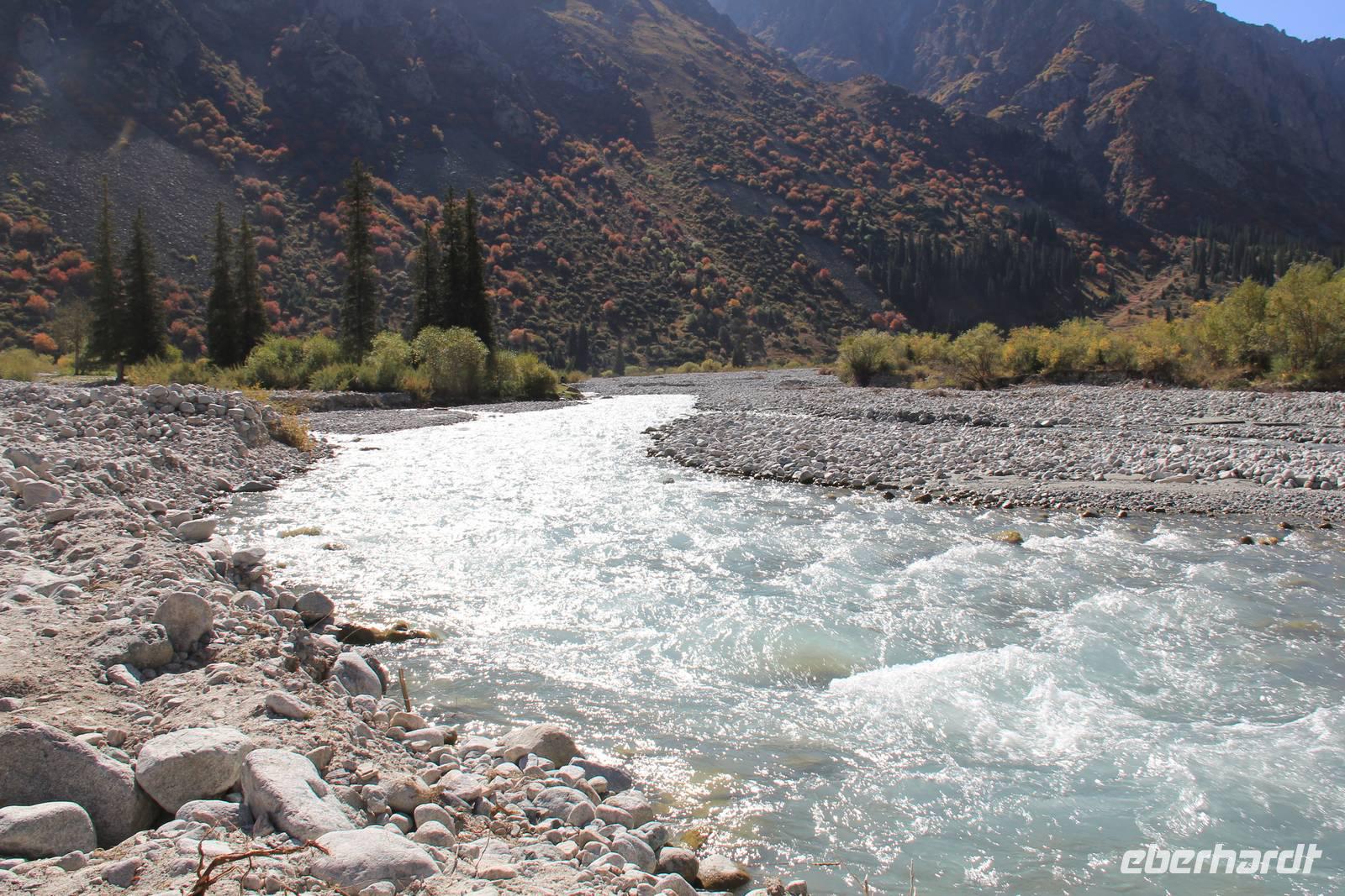 Zuerst fuhren wir jedoch in den Süden von Bishkek zum Ala Artscha Naturpark. Hier angekommen genossen wir die Natur in vollen Zügen. Entlang des gleichnamigen Flusses unternahmen wir eine kleine leichte Wanderung bis zu einer Jurte. Der Ausblick auf die schneebedeckten Berge und die teils grünen, teils schon herbstlich gelb und rot gefärbten Bäume war einzigartig.