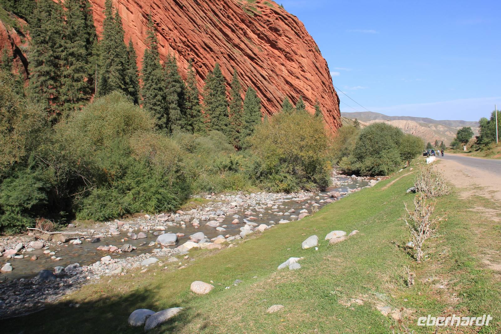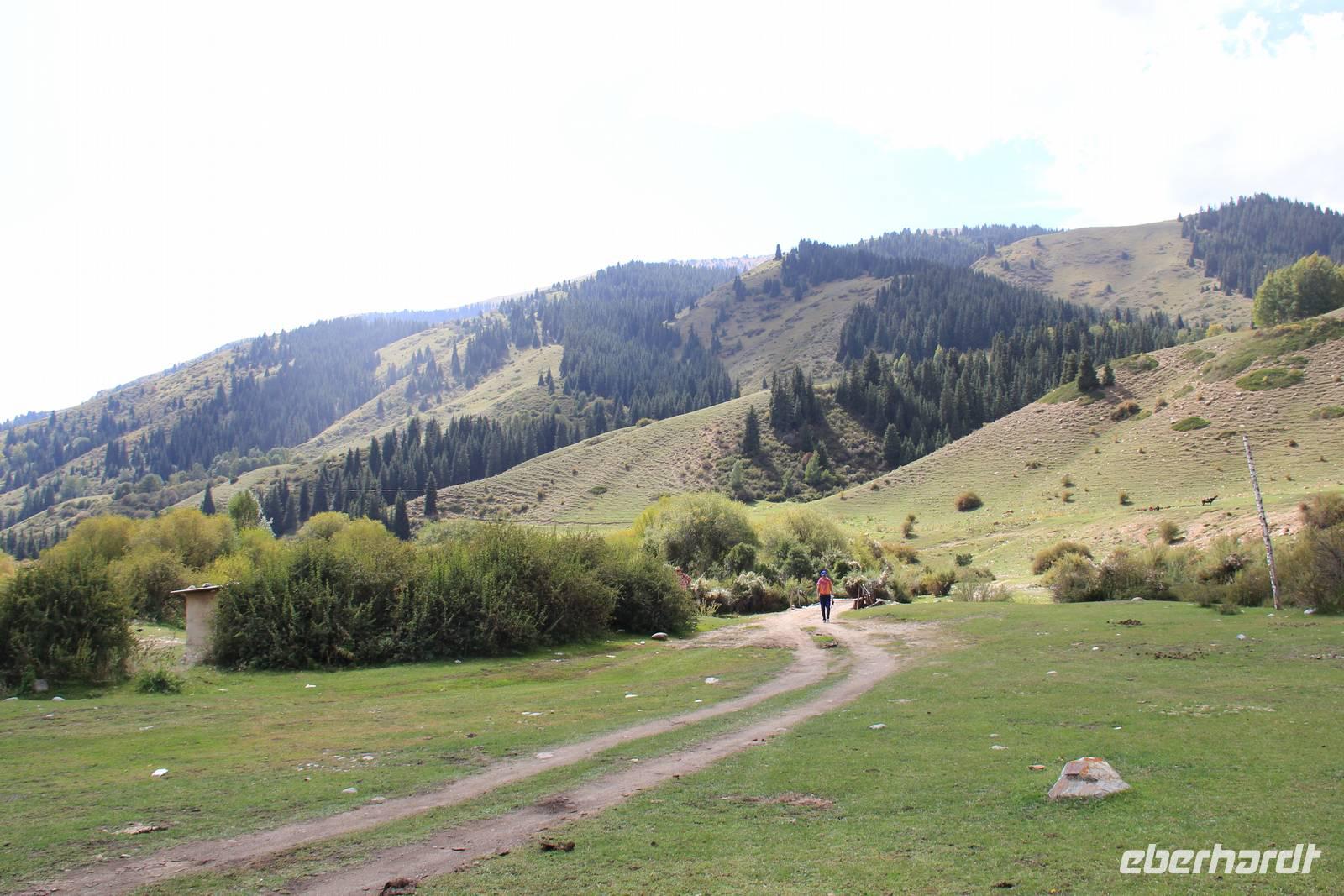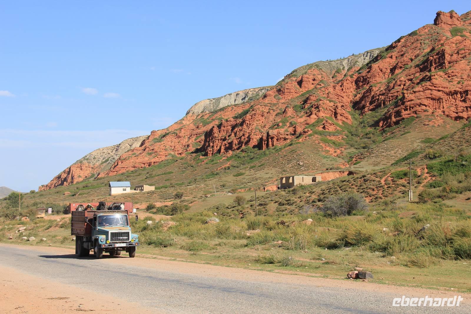 Als gerade ein Schauer über uns hinein brechen wollte, fuhren wir wieder aus der Schlucht hinaus und weiter in Richtung Karakol.