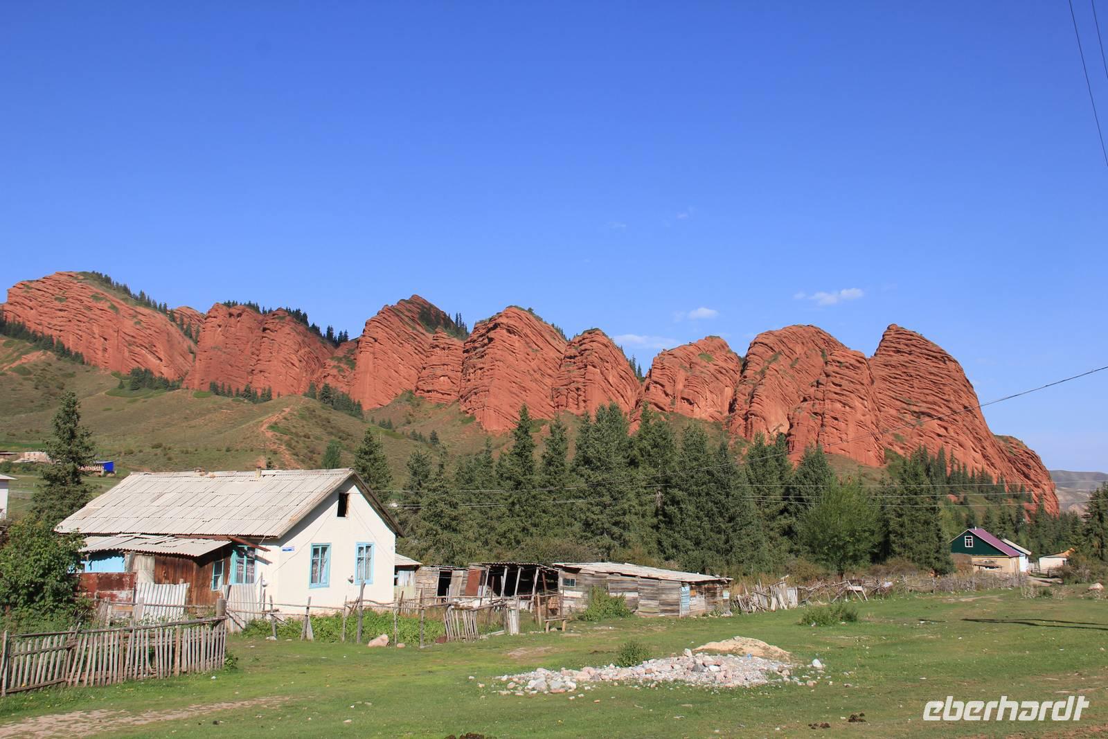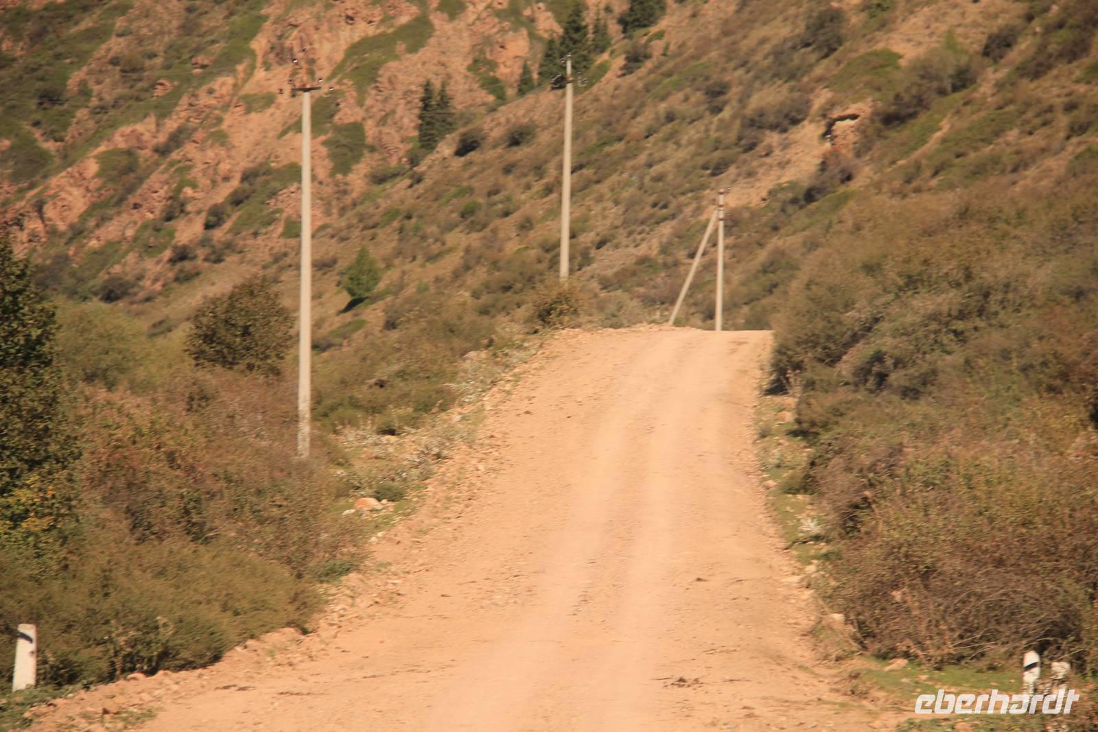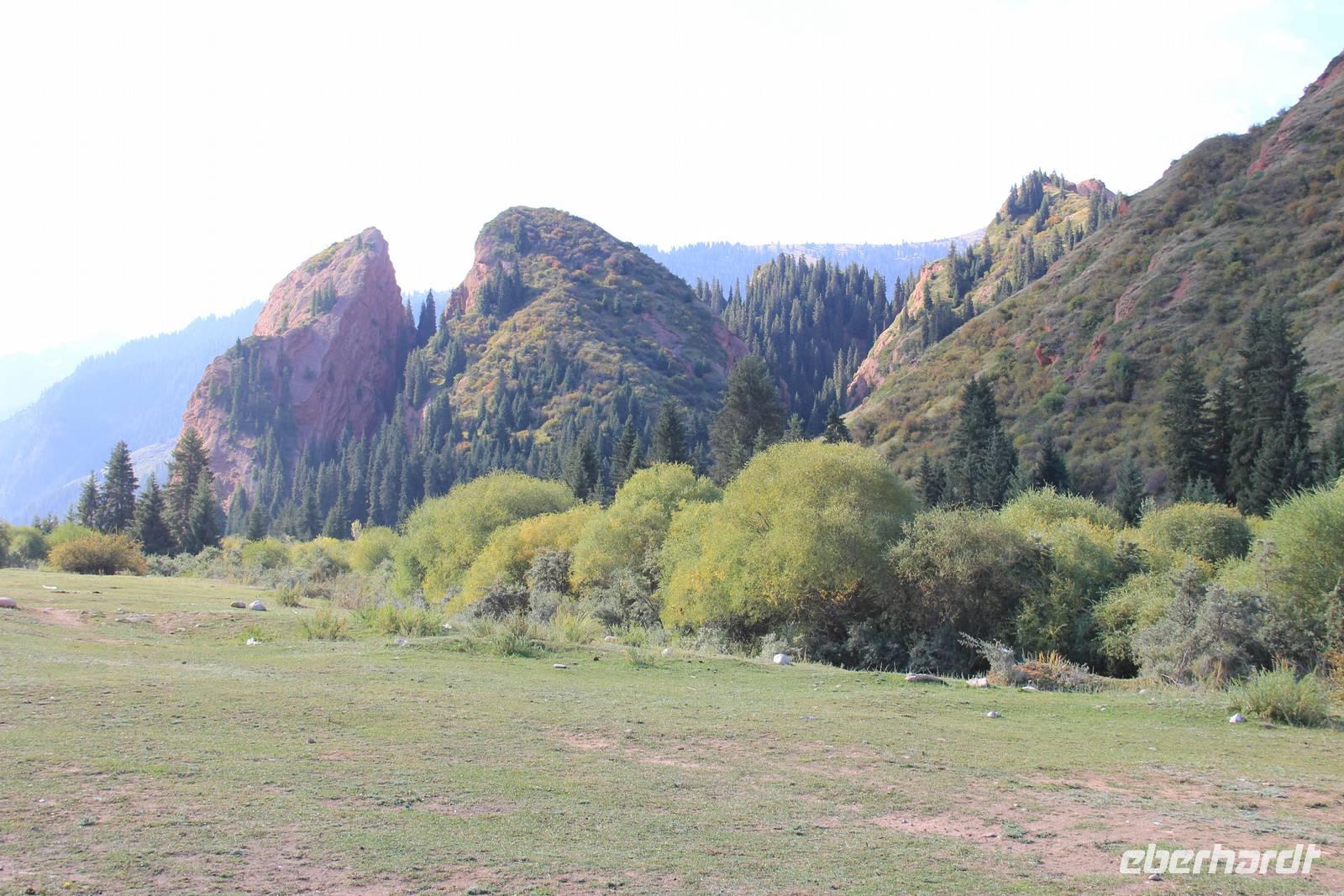 Als gerade ein Schauer über uns hinein brechen wollte, fuhren wir wieder aus der Schlucht hinaus und weiter in Richtung Karakol.
