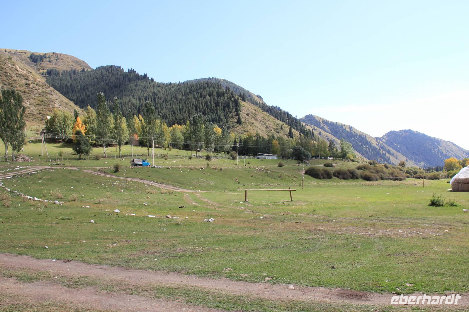 Am frühen Mittag fuhren wir dann weiter in die Semjonov-Schlucht. In einer Jurte von Halbnomaden aßen wir unser Mittags-Picknick. Die Natur hier war einfach wunderschön, die Berge, die Ruhe, die Tiere und auch die gute Luft!