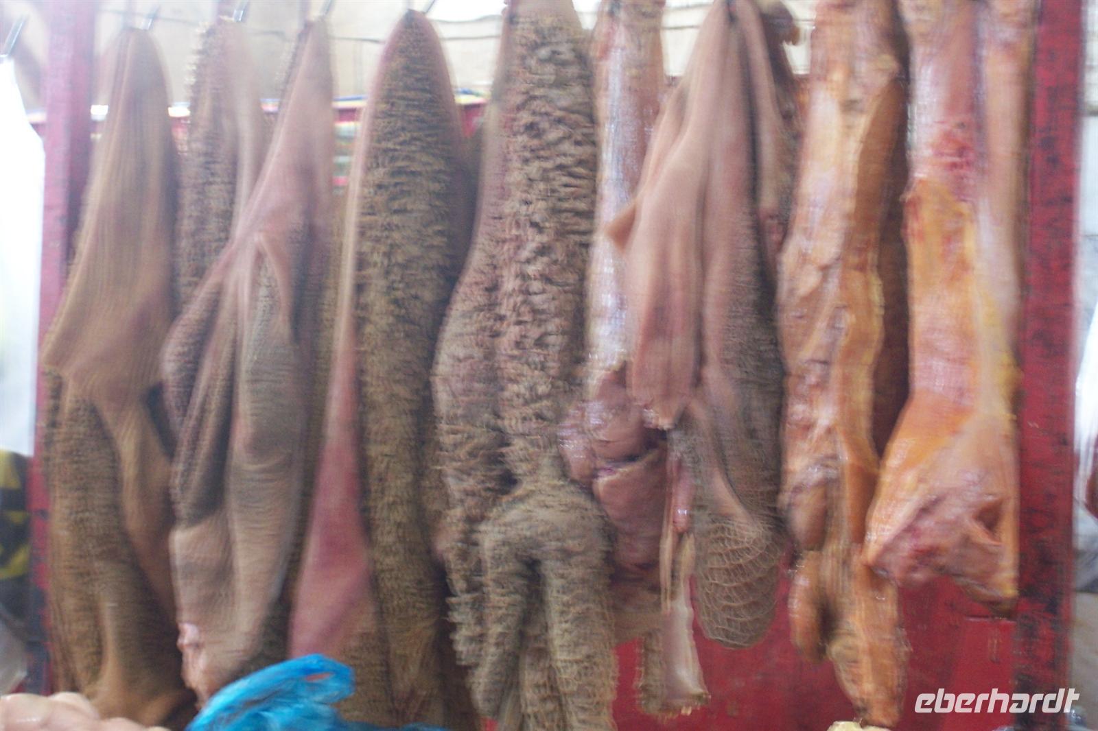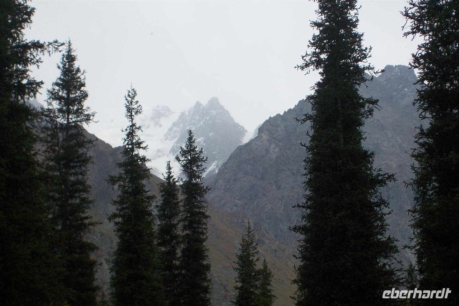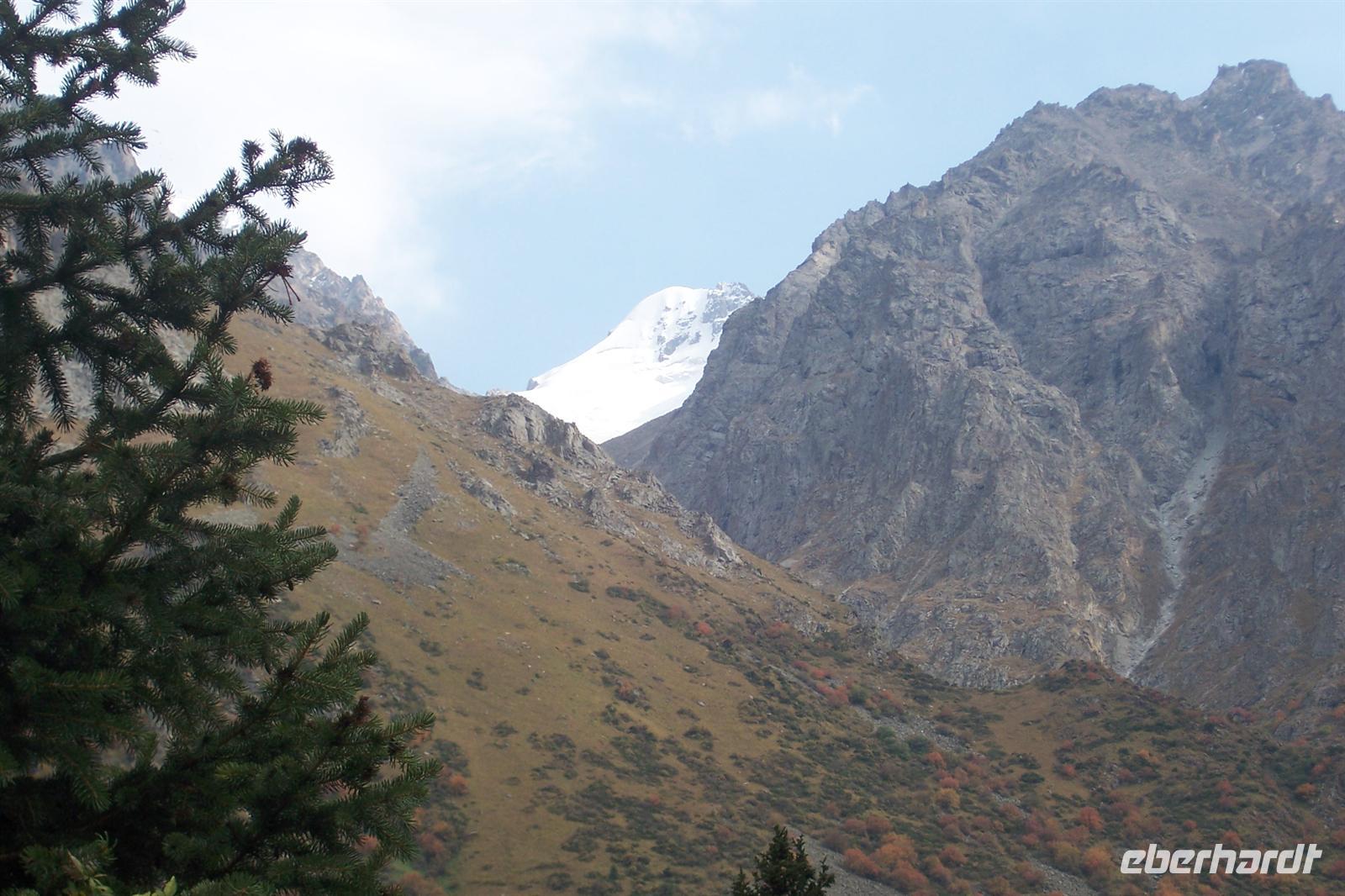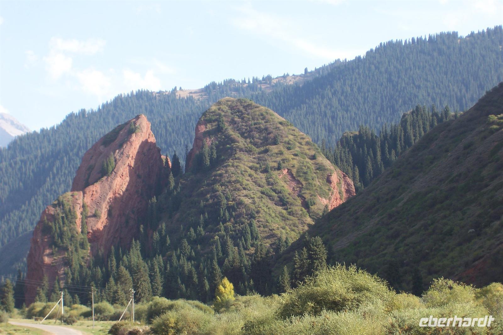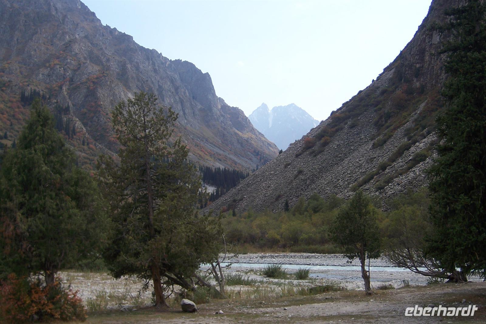den Hauptplatz mit der Ehrenwache an der Nationalfahne und dem Parlamentsebäude. Da das Nationalmuseum noch geschlossen hat, entscheiden wir uns für den kurzen Besuch des Osch-Marktes. Wir bummeln durch die gehäuften Stände mit Nüssen, Reis und Süßwaren und wagen uns in die Fleischhalle. Danach fahren wir zum Zentrum zurück und besichtigen kurz das Nationalmuseum. Nach dem Mittagessen fahren wir in den Naturpark „Ala Arca“. Auch wenn die Wegstrecke nicht bis zu tiefen Schluchten und Gletschern führt, genießen wir die Natur und frische Luft. Leider bemerke ich, dass die Ausführungen von Irina nicht dem Anspruch unserer Gäste genügen und so entscheide ich, den örtlichen Reiseleiter zu tauschen.