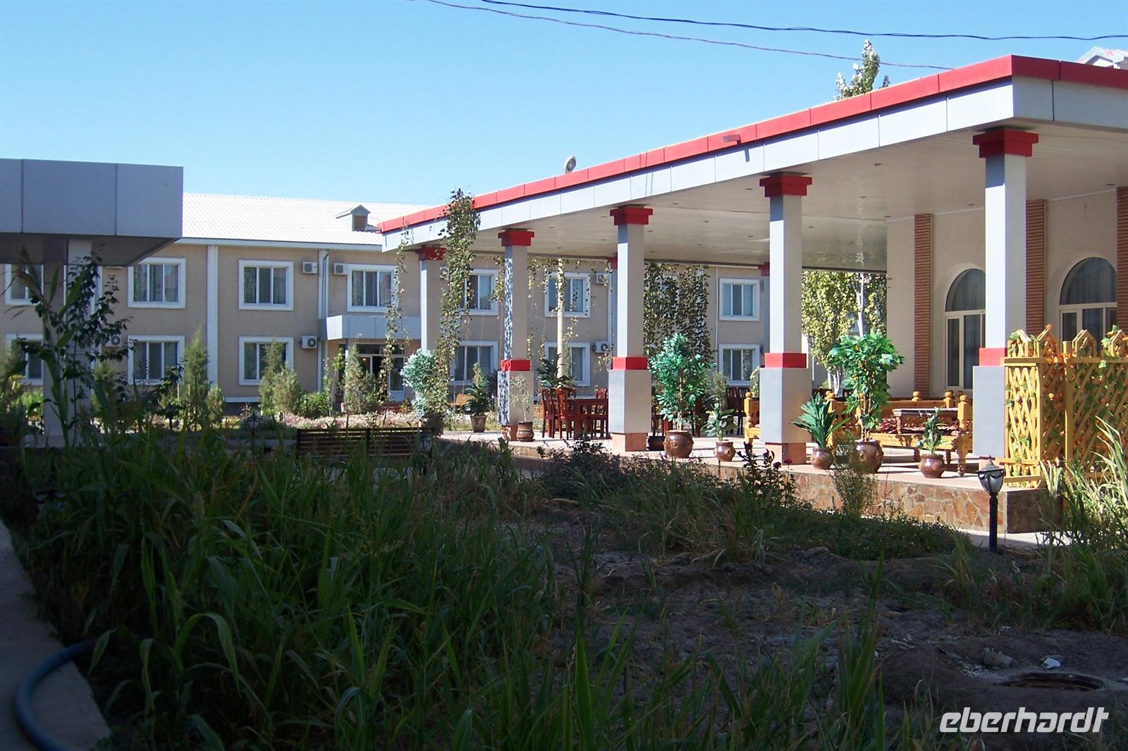 Weiter reisen wir nach Samarkand, welches wir am späten Nachmittag erreichen. Die Zeit bis Abendessen verbringen wir mit Ausruhen. Das Abendessen nehmen wir stilvoll im Restaurant des Hotels ein, wobei wir höflich und zuvorkommend bedient werden.