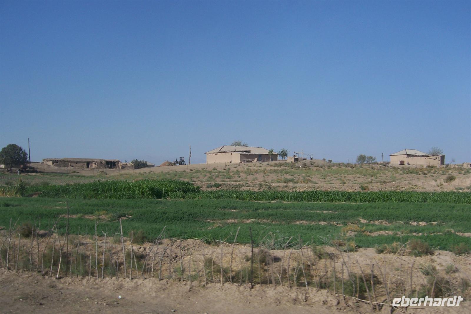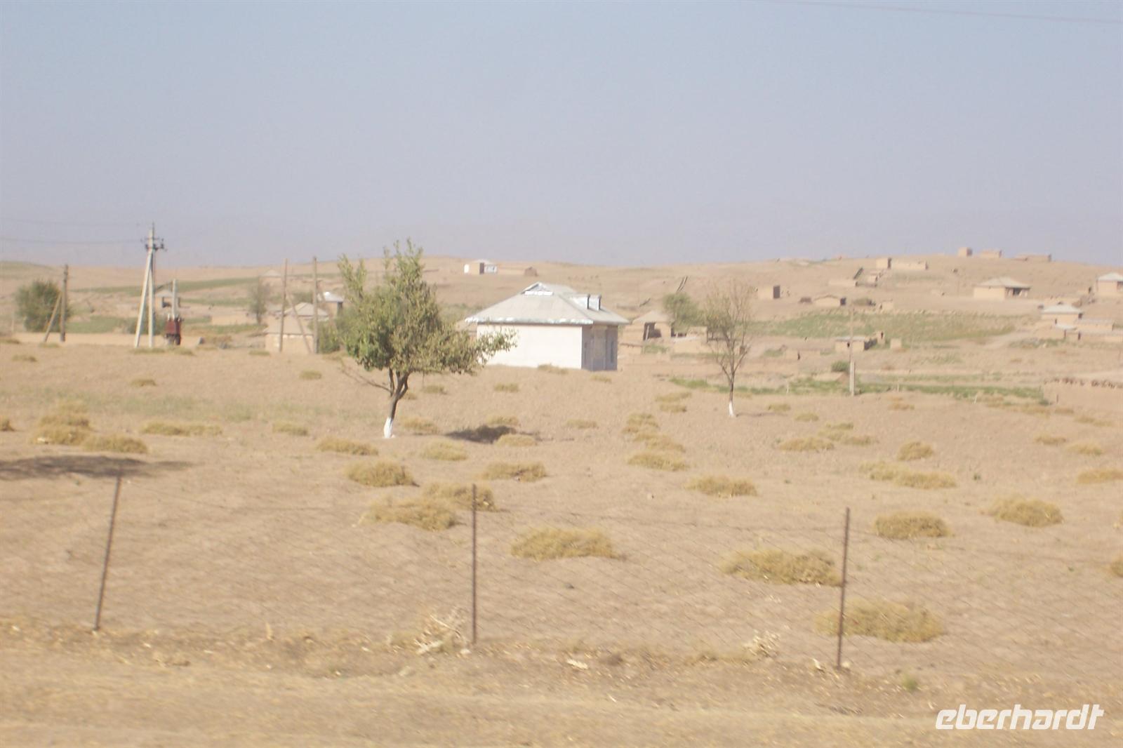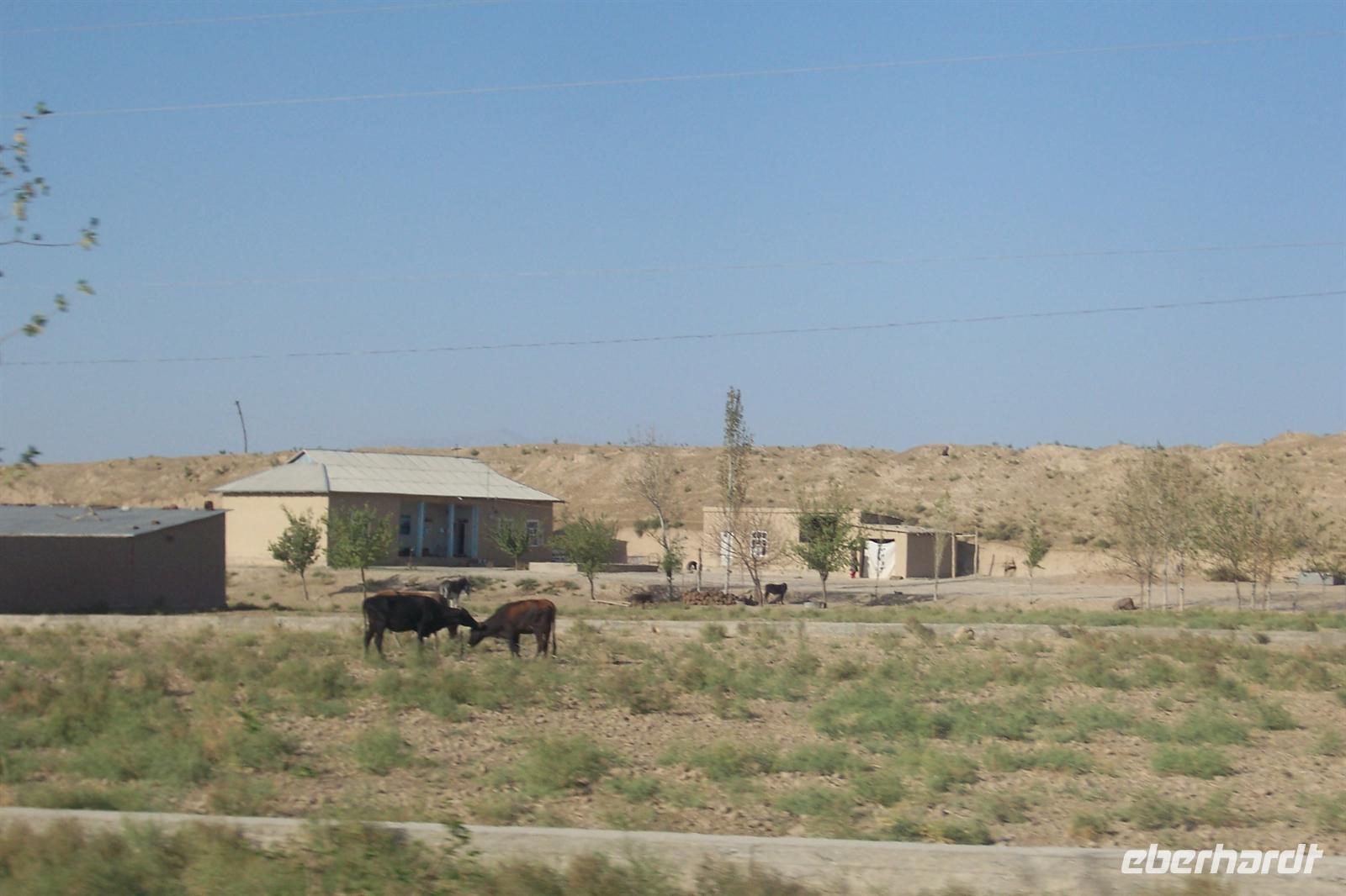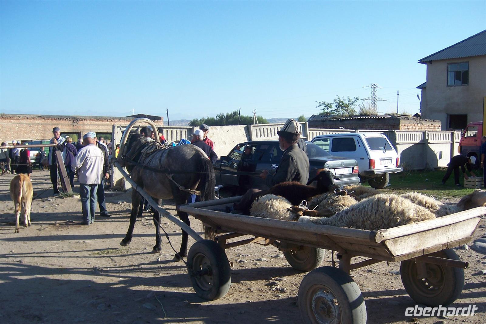 Nach dem stärkenden Frühstück reisen wir einige Stunden weiter durch die Wüste nach Schachrisabs. Die Fahrt ist aufgrund kleiner Dörfer und der Vegetation abwechslungsreicher als die durch die Kizilkumwüste. Unterwegs besuchen wir einen Viehmarkt. So wie wir staunen die Einheimischen über unseren Besuch. Gegen Mittag erreichen wir den großen Platz im Zentrum Schachrisabs. Schon von Weiten sieht man das ehemalige Portal des „Weißen Palastes“.