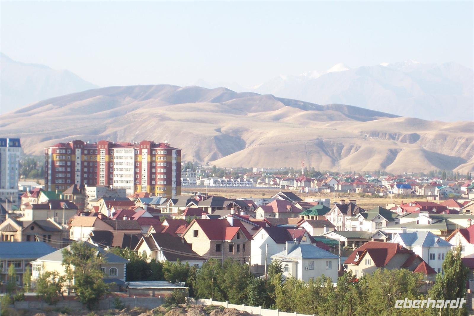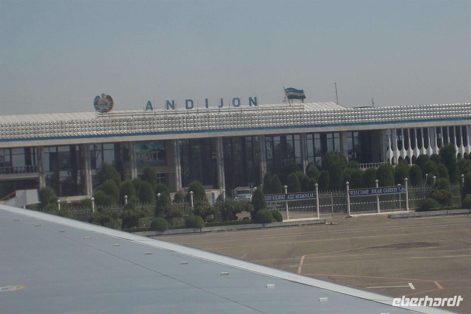 Schon eine Woche vor unserer Reise erhielten wir die Information durch unsere örtliche Agentur, dass wir aufgrund einer zu späten Buchung der Flugplätze auf einer alternativen Route nach Kirgisien gelangen müssen und so habe ich im Vorfeld die Flüge Tashkent-Andijan und Osch-Bishkek gebucht. Voller Spannung fliegen wir in den Süden Usbekistans und überqueren per Bus (welcher schon Abenteuer genug ist - das muss ich mit unserer Agentur im Nachgang auswerten) die Grenze nach Kirgisien. Aufgrund unserer Wartezeit bei der Einreise sehen wir dem Grenzübertritt mit Spannung entgegen und müssen erfahren, dass wir mit der Technik wie Computer wohl erfahrener sind, wie die Grenzbeamten selbst. Die Wartezeit ist erheblich, da viele Details so per Hand notiert werden müssen. Spätestens jetzt wissen wir, was ein vereintes Europa wert ist! Nach dem Mittagessen in Osch erreichen wir den Flughafen und staunen nicht schlecht, als eine alte Antonow vor uns steht. Der Flug wird spannend, aber die hervorragende Sicht mit den Bergen des Tian-Shan belohnt uns für unseren „Mut“. Nach einem wirklich aufregenden Tag landen wir in Bishkek, der Hauptstadt Kirgisiens und werden von unserer örtlichen Reiseleiterin Irina n Empfang genommen.