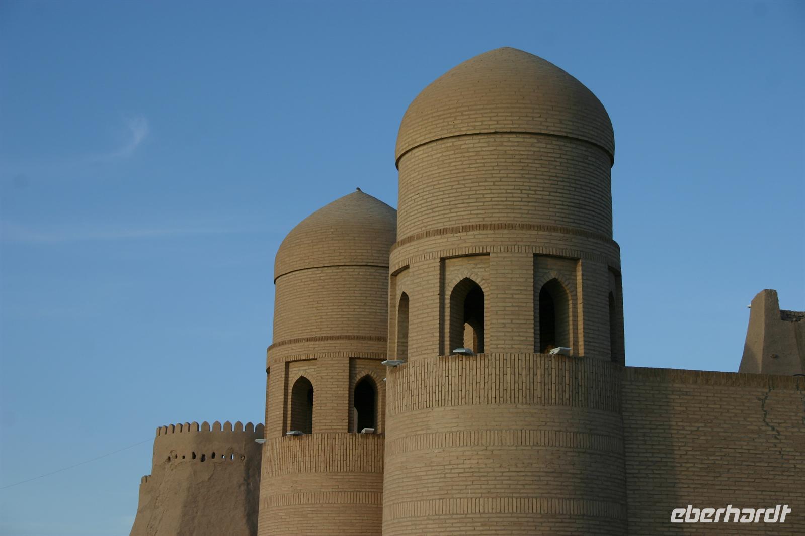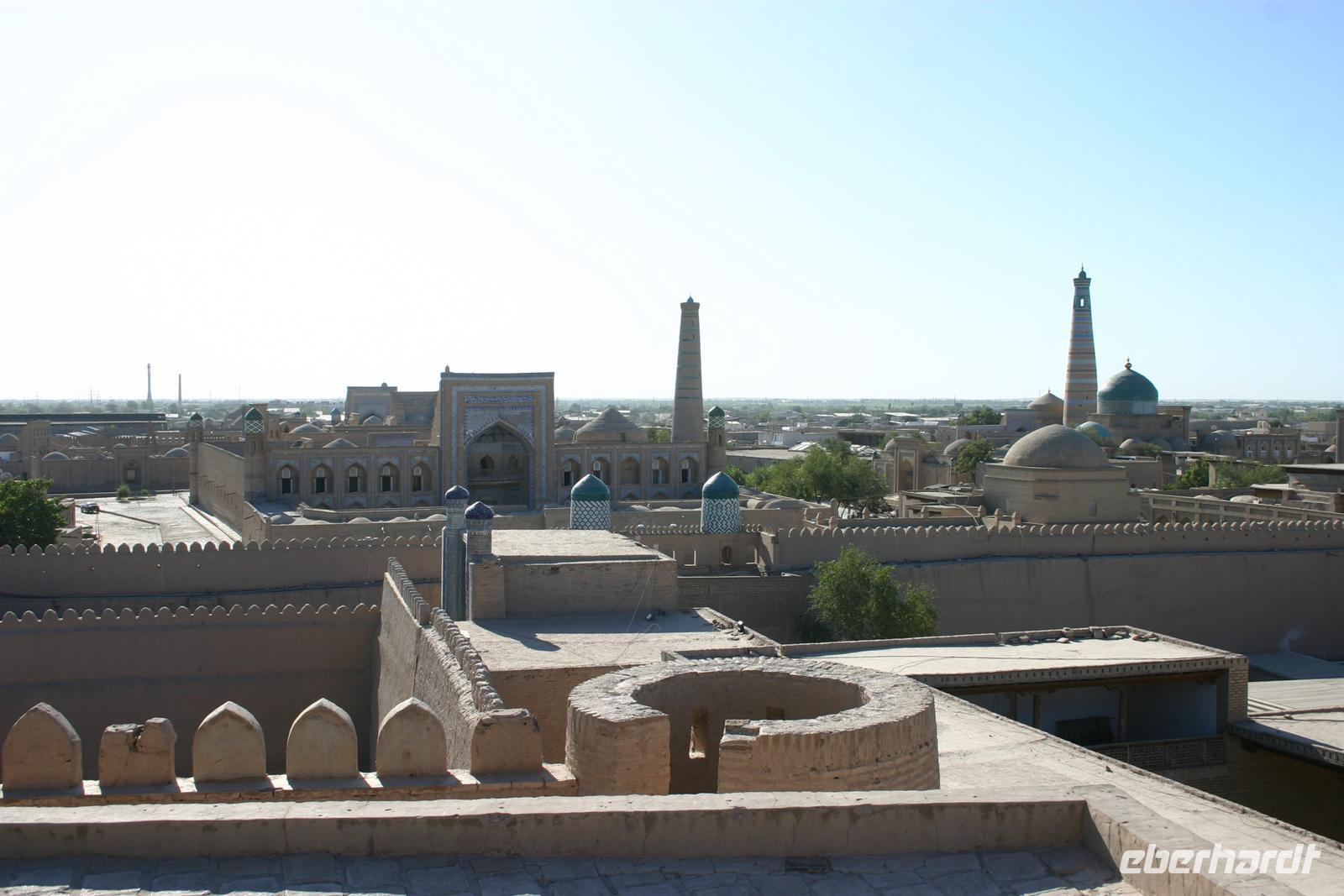 Wir verließen Tashkent am Nachmittag des darauffolgenden Tages und flogen nach Urgenscht, um von dort aus in Richtung Chiva zu fahren. Auch wenn ich auf der Rundreise noch viele Höhepunkte sehen würde, wusste ich schon beim Anblick der beeindruckenden, vom Sonnenuntergang feuerrot gefärbten Stadtmauer, dass wir hier an einem ganz besonderen Ort weilten. Nach einem individuellen Rundgang durch die bezaubernde Altstadt schmeckte uns das traditionelle usbekische Abendessen umso besser.