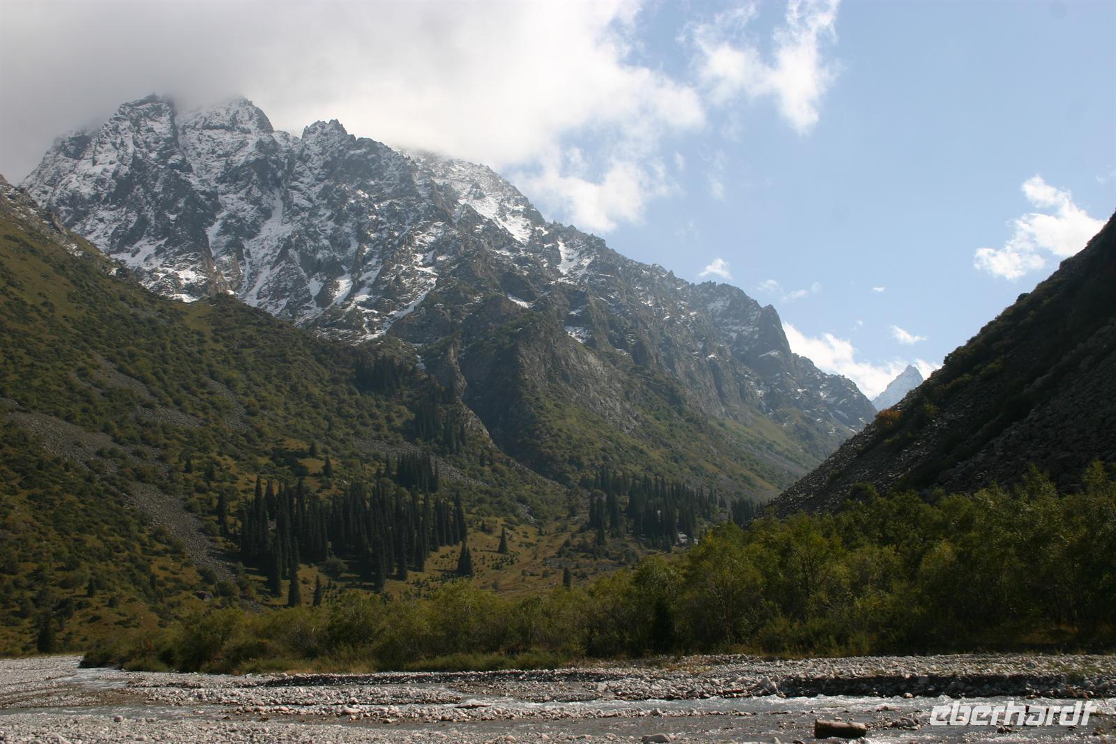 Am nächsten Tag führte uns unsere Reise in den Nationalpark Ala Archa. Alle waren froh über die Bewegung an frischer Luft und plauderten während eines Spaziergangs mit anderen Reisenden über die bisherigen Eindrücke. Da es in Kirgisien am Nachmittag schon merklich kühler wurde, waren wir richtig froh, als uns unsere örtlichen Reiseleiter vor unserer Rückfahrt zum Hotel mit einer Tasse Tee zum Aufwärmen überraschten.