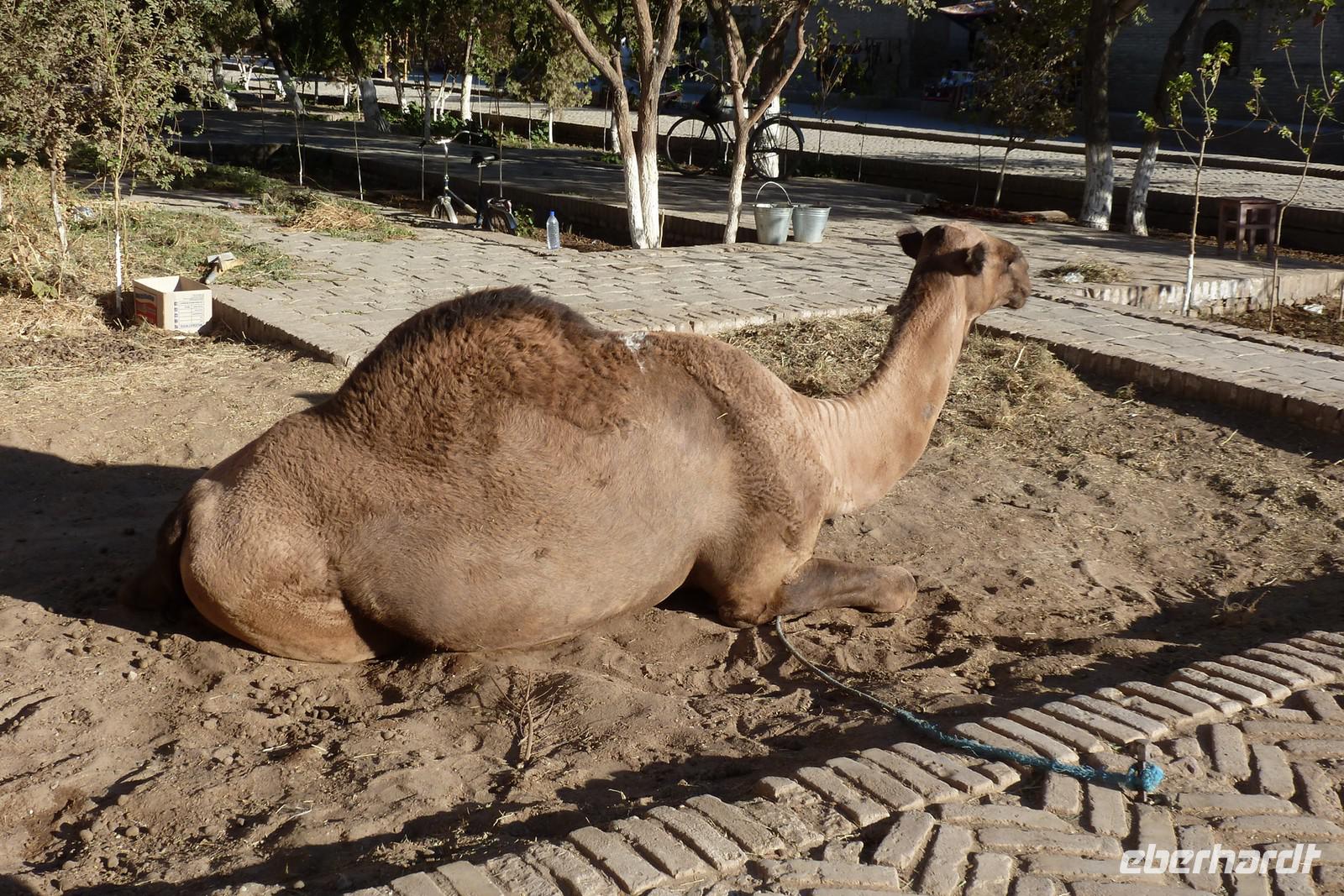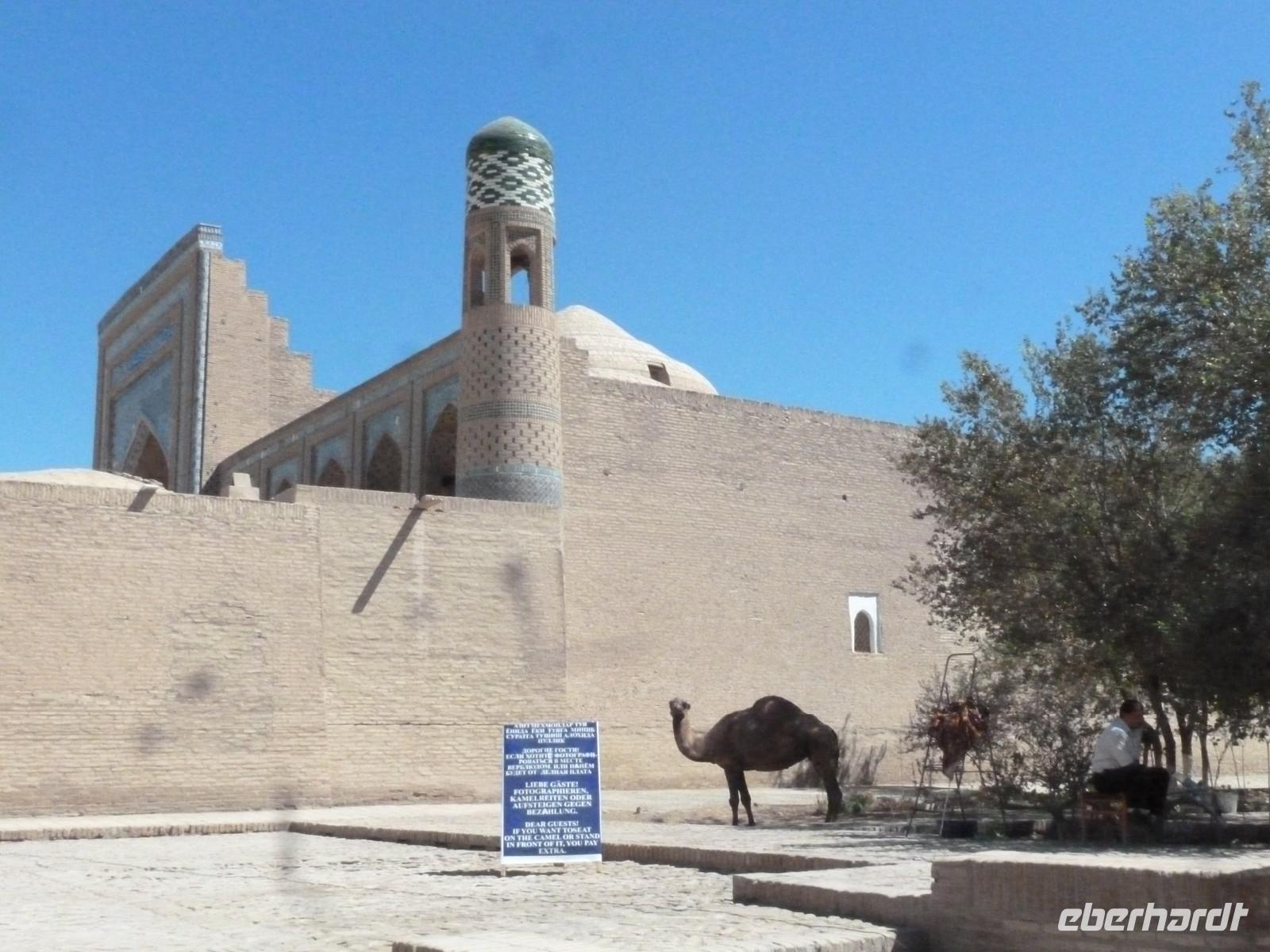 Die Umgebung von Buchara stand heute auf dem Programm. Nach einem wunderschönen Frühstück im Innenhof - nur für Eberhardt Gäste - fuhren wir zu zwei Walfahrtsorten außerhalb der Stadt. Wir fuhren zur heiligen Anlage von Bahouddin Naqshbandi, wir viele Pilger aus Usbekistan hinwandern! Wir setzen uns erst einmal auf eine Bank inmitten dieses heiligen Platzes, wo ich (die Reisebegleiterin Mandy Lehmann) den Gästen wie jeden Tag ein Gedicht von Elli Michler vorgelesen habe. Dann spazierten wir durch die Anlage, bevor wir gegenüber zu einem Zelt kamen: dort treffen sich usbekische Bauernfamilien zum Essen: übergroße Betten, die als Sitzecken dienen, mit einem Tisch obendrauf, Sitzpolstern und voll mit Frauen, Männern und Speisen! Wir wurden sofort eingeladen, Essen wurde uns angeboten und wir waren mittendrin! Ein Erlebnis für sich! Weiter ging es zu dem Palast des letzten Herrschers von Buchara. Wir aßen im Choykhona Laby Haus, direkt am Laby Platz mit den tollen Wasserspielen zu Mittag, bevor wir wieder zur Mittagsruhe ins Hotel gelaufen sind, um der Mittagshitze zu entfliehen. 17 Uhr fuhren wir zum Chor Minor mit seinen vier Türmen, den vier Töchtern des Erbauers gewidmet. Anschließend weiter ins Puppenmuseum mit den für Buchara typischen Handpuppen - da hatten wir mit den Puppen unseren Spaß. Am Abend fuhren wir zu einer usbekischen Familie zum Abendessen, wo die Kinder der Großfamilie zum Abschied einen Tanz vorführten!