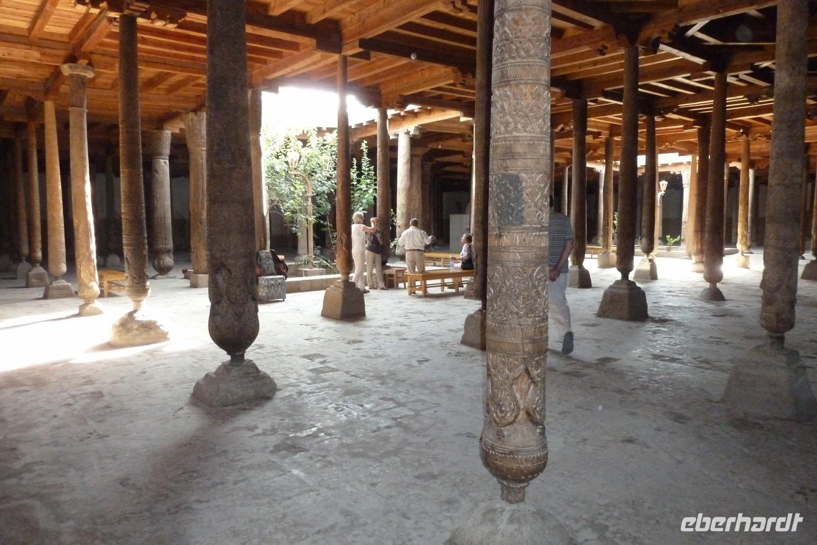 Heute entdeckten wir das heilige Buchara - wir machten uns auf den Weg zu all den Sehenswürdigkeiten dieser alten Stadt! Es war ziemlich heiß, aber wir konnten uns oft im Schatten der Minaretts und Moscheen „unterstellen“, als uns Zika alles erklärte. Wir trafen immer wieder Einheimische während unseres Rundgangs, welche uns neugierig anschauten. Vor der Moschee mit den 40 Säulen (wovon 20 Unterwasser sind) haben wir die typischen Pampers der Usbeken kennengelernt - Holzstäbchen mit Löchern! Wir aßen in dem ganz tollen Restaurant Susanne Artizan mit schöner klassischer Live-Musik zu Mittag, bevor wir zur Siesta ins Hotel zurückfuhren. Nach einem Mittagsschlaf „setzten wir unser Programm weiter fort“, wie Zika sagen würde und sahen weitere Höhepunkte von Buchara. Am Abend kam etwas besonders Tolles: eine Folklore Show mit einer Vorführung typisch usbekischer Mode während des Abendessens in der Medrese Nodir Devon Begi - bei toller Musik und Tanz genossen wir diesen Abend!