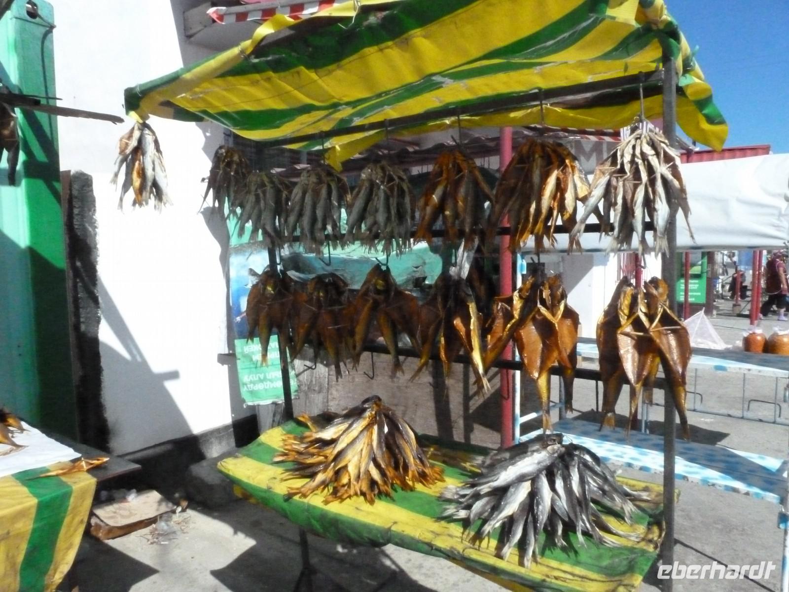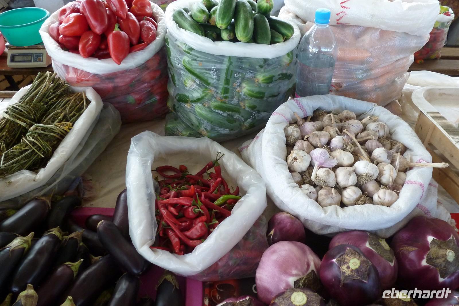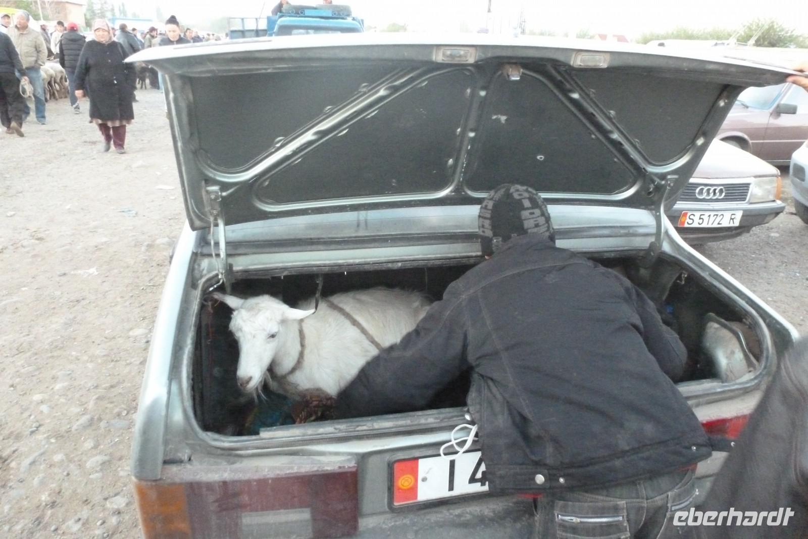 Viehmarkt am Sonntagmorgen! Wir sind freiwillig um 5 Uhr aufgestanden um den legendären Viehmarkt in Karakol zu besuchen. Es war noch dunkel, aber von überall kamen Bauern und Nomaden mit Kühen, Schafen und Pferden. Ein riesengroßer Platz voller Tiere, Männer und Frauen. Das Schauspiel war einmalig und wir waren von den Massen an Tieren und Menschen überwältigt. An die 1000€ für ein Pferd und 100€ für eine Kuh - da wurden am Sonntagmorgen Geschäfte gemacht. Nach 45min hatten wir genug von all dem Muh, Mäh und Brrr und fuhren zurück in unserem Gästehaus, wo ein unbeschreiblich gutes Frühstück auf uns wartete. Nach diesem „Schmaus“ machten wir uns auf den Weg, den wir hatten viel vor. Zuerst zu dem großen Felsen „Gebrochenes Herz“ und zu den leuchtroten Felsen „Die 7 Ochsen“. Dort machten wir im Schein der Morgensonne tolle Bilder. Wir liefen zum Hoftor einer kirgisischen Landfamilie und fragten, ob wir sie besuchen können. Wir wurden freundlich eingeladen und traten ein. Der Opa klopfte auf Eisen herum und stellte Nägel her, die jungen Männer bastelten am Auto herum, die Kinder quietschten im Hof und die Oma schaute neugierig - ein hartes, einfaches Leben wie es schien aber die Leute wirkten dennoch zufrieden. Wir beschenkten die Kinder reichlich mit Schulheften, Luftballons und Zahnbürsten, bevor wir uns verabschiedeten. Einige Meter die Straße runter, vorbei an neugierigen Eseln auf ihrem Sonntagsspaziergang durchs Dorf kamen wir bei drei Jurten an. Hier lebt eine Halbnomadenfamilie und wir wurden zum Tee eingeladen. Wir setzten uns in die Jurte und draußen war bei den Frauen schon hektisches Treiben, denn gestern hat eine der Töchter geheiratet und heute stand der Besuch der Familie des Bräutigams an. Die Braut wurde vielleicht wie so viele junge Frauen in Kirgisistan geraubt und dann wurde sie verheiratet - das ist heute noch sehr üblich und weit verbreitet, auch in der Stadt. Auf jeden Fall tranken wir Tee und einer unserer Gäste überreichte der Großmutter der 15 Enkel viele Geschenke, die sie unter allen verteilen soll. Nachdem sich all die Kleinen über Süßigkeiten und Luftballons gefreut haben machten wir uns auf den Weg nach Bishkek. Den ganzen Tag wollten wir fahren, entlang des Sees mit einem Badestopp und einem Mittagessen bei einer Familie. Schließlich erreichten wir am Abend den Burana Turm vor der Hauptstadt und dann unser Restaurant im Stadtzentrum. Nach dem letzten Essen in Kirgisistan freuten wir uns nach dem langen Tag alle auf unser Bett im AK Keme Hotel in Bishkek, bevor wir morgen nach Kasachstan weiter fahren wollten!