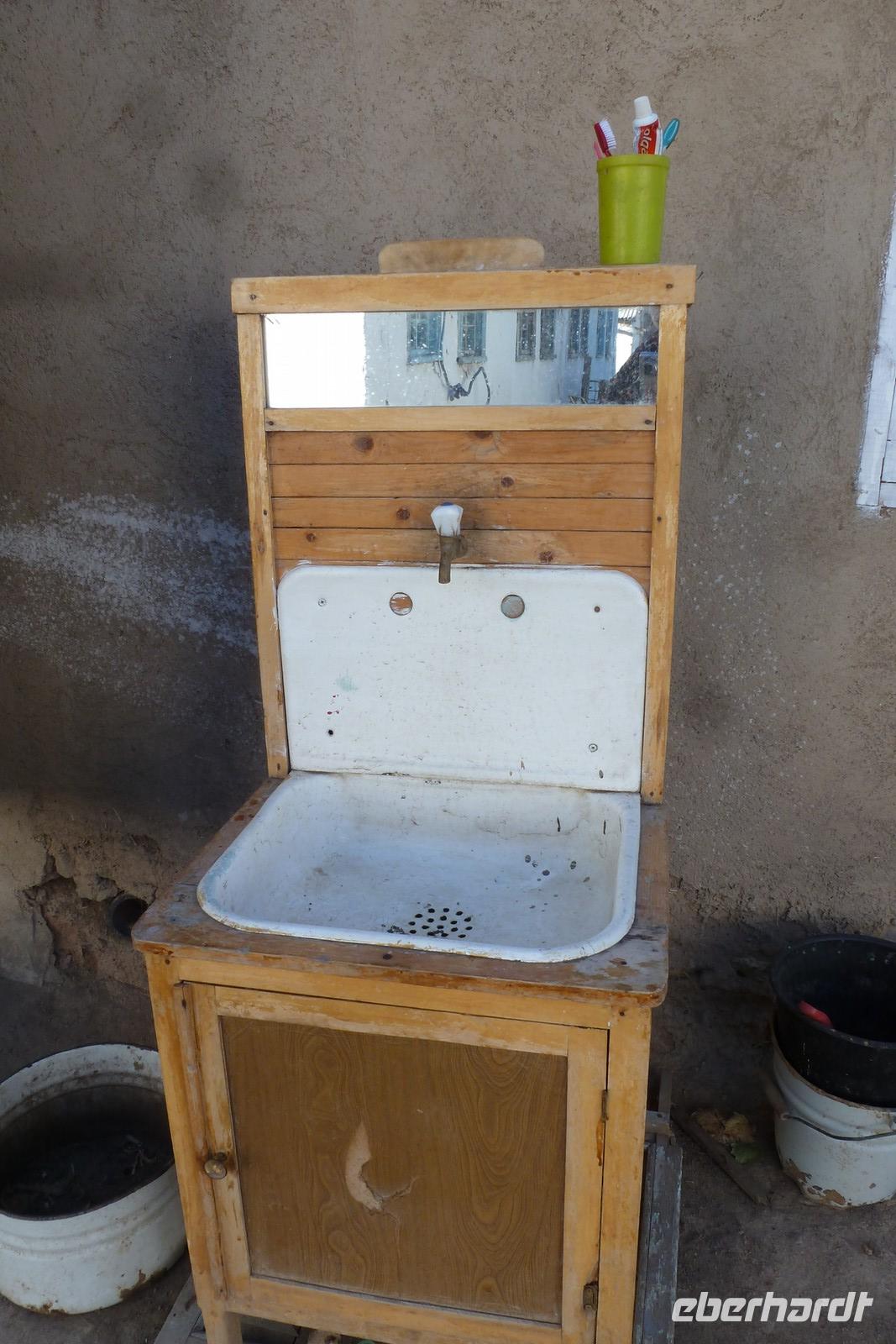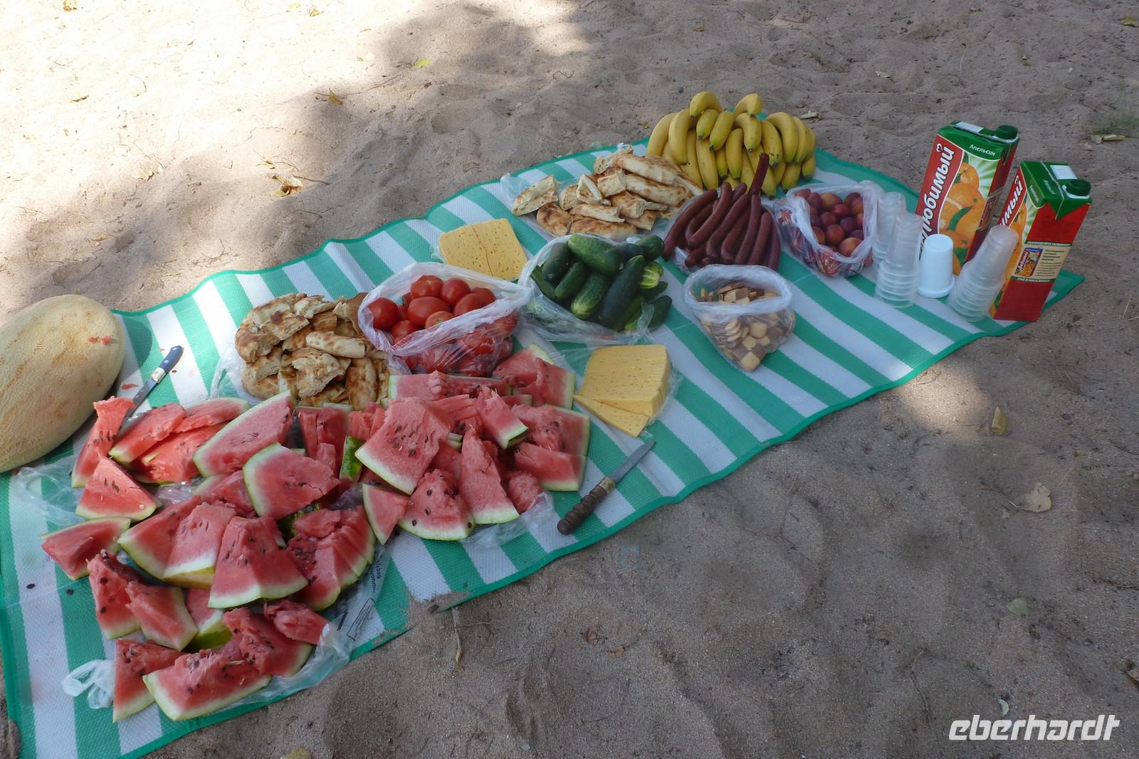Früh hatten wir genügend Zeit um im Issyk-Kul See zu schwimmen - es war schon kalt, aber war man einmal drin ging es auch! Der Strand am Hotel Kapriz war wunderschön und so genossen wir den Morgen am See! Nachher fuhren wir zu den Felszeichnungen von Chopon Ata - UNESCO Welterbe mit Zeichnungen aus dem 10. Jahrhundert vor unserer Zeit! Und dann haben wir ein tolles selbstgerichtetes Picknick am Strand genossen, an einer kleinen Bucht mit Melone, Pflaumen, Gurken, Tomaten, frischem Fladenbrot, Knacker und Käse - uns ging es gut! Nach diesem schönen Päuschen fuhren wir immer entlang des Sees bis nach Karakol - ans östlichste Ende des Sees. Dort besuchten wir das Prschewalsky Museum und machten uns auf die Spuren des großen Asienforschers. Wir fuhren weiter zu einer kleinen bunten Moschee und zur russisch orthodoxen Holzkirche der Stadt. Wir kamen uns hier einige Jahrzehnte zurück versetzt vor, denn es sah aus wie in Russland vor vielen vielen Jahren. Wir spazierten nachher die Leninstraße entlang, auf der die Kühe am Straßenrand fraßen. Schließlich fuhren wir in unser überaus schönes und liebevoll eingerichtetes Gästehaus Green Yard - die wunderschönen Zimmer, die tollen modernen Bäder, der Obstgarten, der lecker Tee und Kaffee - wir fühlten uns hier im Osten Kirgisistans total wohl. Am Abend waren wir bei einer uguischen Familie zum Abendessen eingeladen und es gab leckere Teigtaschen. Später machten wir es uns noch am Lagerfeuer im Hof unseres Gästehauses gemütlich.