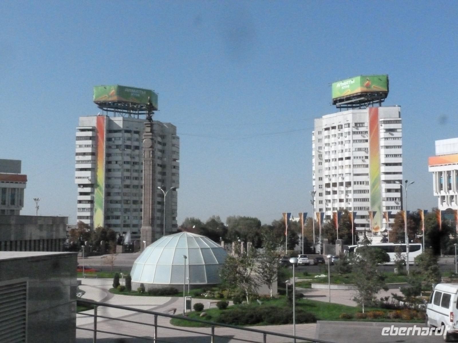 Ein besonderes Erlebnis stand uns bevor: Der Grenzübertritt nach Kasachstan. Wir fuhren mit unserem Bus an die Grenze nach Kordai. Dort verließen wir unseren Bus und liefen zu Fuß mit unseren Koffern zum Grenzübergang und es ging total schnell! Unsere Pässe wurden abgestempelt und schon waren wir in Kasachstan! Dort erwartete uns ein kasachischer Bus und wir machten uns auf den Weg in die Äpfelstadt Almaty! Steppe, Steppe, Steppe! Es war Wahnsinn, eine endlose Weite. Unterwegs machten wir einen Stopp in einer Mittelschule - ganz toll gekleidete Schüler und Schülerinnen! Und schließlich erreichten wir Almaty. Nach einem stärkenden Mittagessen bezogen wir unsere Zimmer und dann erkundeten wir die Stadt der Äpfel. Es hat uns gut gefallen, die Stadt ist sehr modern und grün. Am Abend spazierten wir zu einem Lokal für unser Abschiedessen, genossen Wein und verbrachten so einen schönen letzten gemeinsamen Abend!