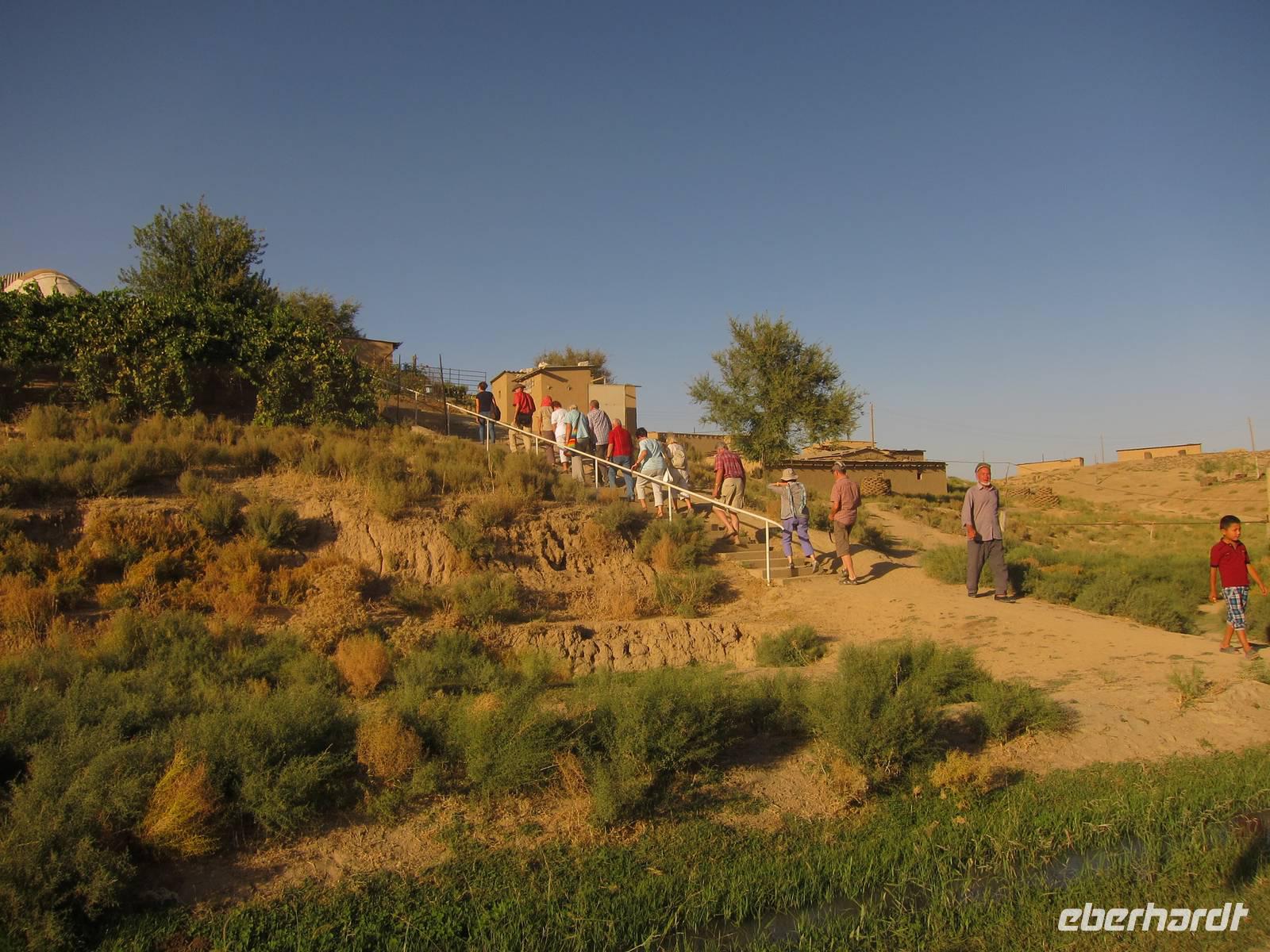 Unser letztes Ziel für diesen Nachmittag war die ehemalige Festung von Chiwa. Hier sahen wir den Brunnen, an dem der Ursprung dieser Wüstenoase liegen soll. Zudem sahen wir, wie hiesige Musikvideos gedreht wurden, da ein kleines Kamerateam mit zwei Sängern und zwei Tänzerinnen die ehemalige Festung als Kulisse nutzen.