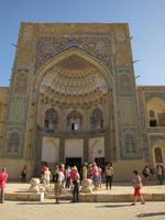 Danach ging es weiter zur Freitagsmoschee, der sogenannten Djuma Moschee und zum Tash Hauli Palast. Hier verfielen die Frauen einen Kaufrausch der Kamelwolltücher, da wurde der ehemalige Palast fast zur Nebensache... Doch nach einigen Innenhöfen und dem Besuch des Harems im Palast ging es weiter durch die Gassen von Chiwa zur Pilgerstätte des bekannten Pahlawan Mahmud. Er war unter anderem Ringer und Poet und wurde durch eine Heldentat, die Rettung eines Jungen, zu einer Art Heiligen.