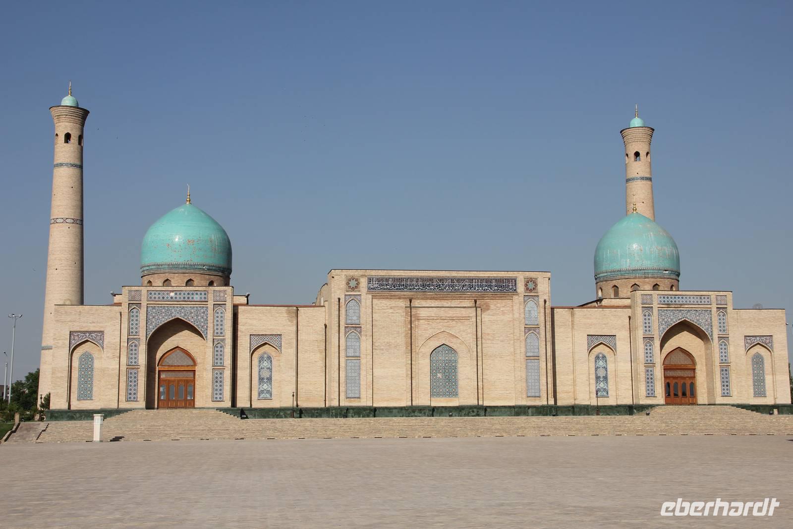 Nach dem Mittagessen ging es nachmittags dann zur Stadtbesichtigung in Taschkent. Neben dem Basar mit frischem Obst, Gemüse, Nüssen, Fleisch und Brot durfte die Besichtigung der Medrese Kukeldasch nicht fehlen. Diese Medrese wird noch heute aktiv als Koranschule genutzt. Auch der Hast Imam Platz, einer der bedeutendsten Plätze von Taschkent, wurde besucht. Neben der aktiven Hast Imam Moschee, war hier vor allem die Koranbibliothek mit dem ausgestellten Koran von Osman interessant. Danach ging es weiter zu einem traditionellen Bäcker der Stadt. Hier wird das Brot in der kleinen Backstube noch von Hand geformt und im kleinen Ofen gebacken. Beim anschließenden Besuch des Nachbarhauses genossen alle noch eine Tasse Tee. Die weitere Stadtbesichtugung führte zum Platz der Unabhängigkeit sowie zur U-Bahn von Taschkent, welche mit ihren thematisch verschieden verzierten U-Bahn-Stationen beeindruckt.